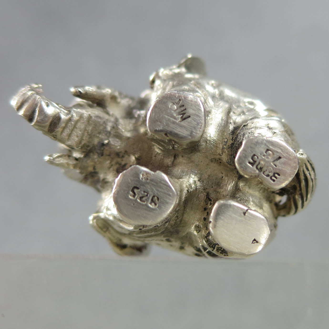 April 02, 2026 - Solid sterling silver, not hollow. Vintage 3D Elephant charm with fine details. Height: 1 1/4 inches. Width: 13/16 inches. Length: 1 inch. Weight: 13.5 grams. Stamped 925 and signed "MAF".