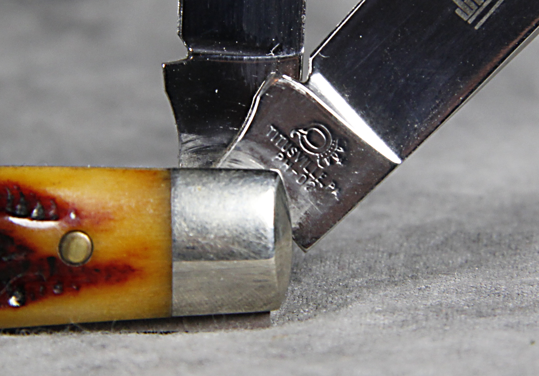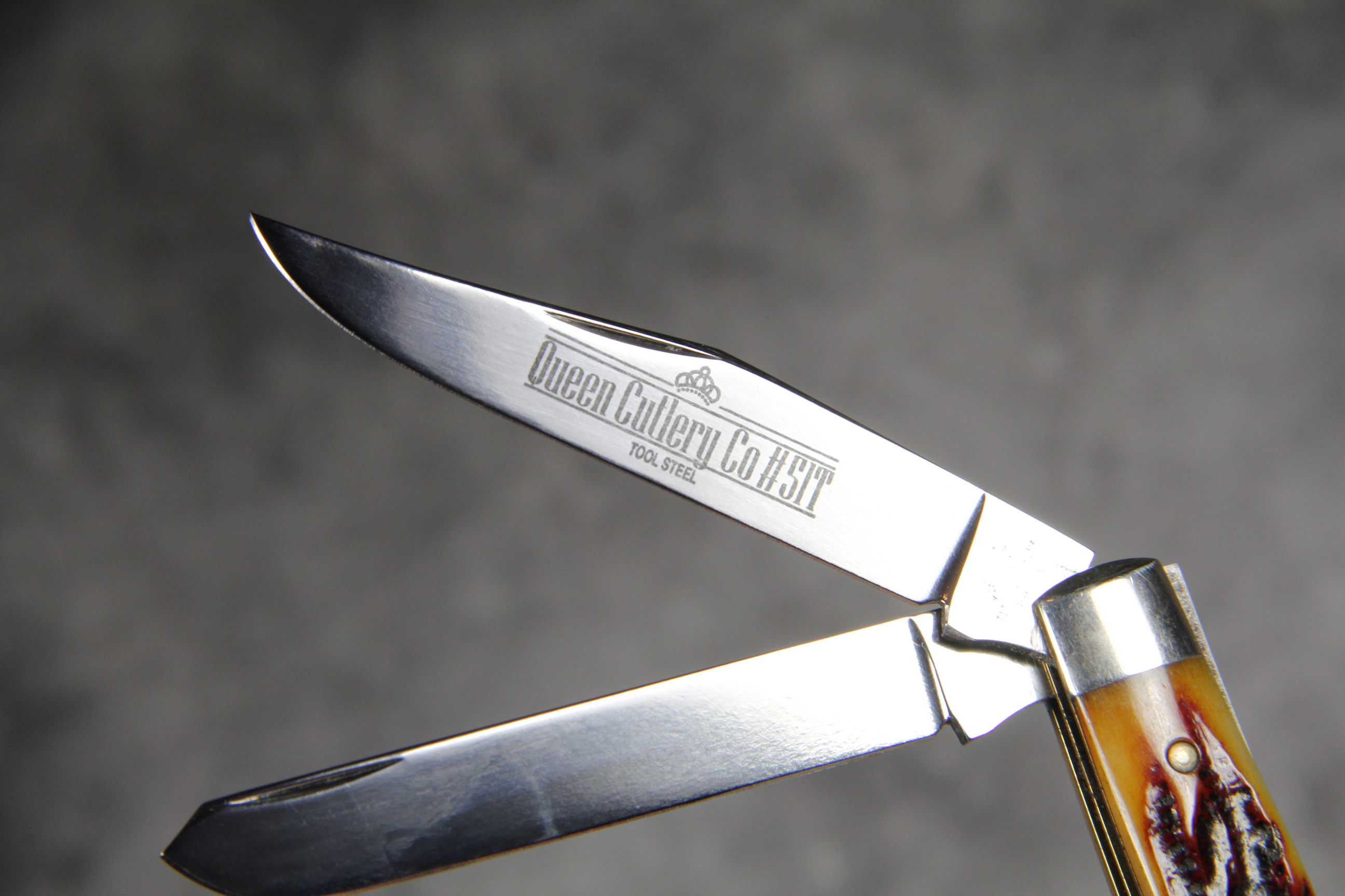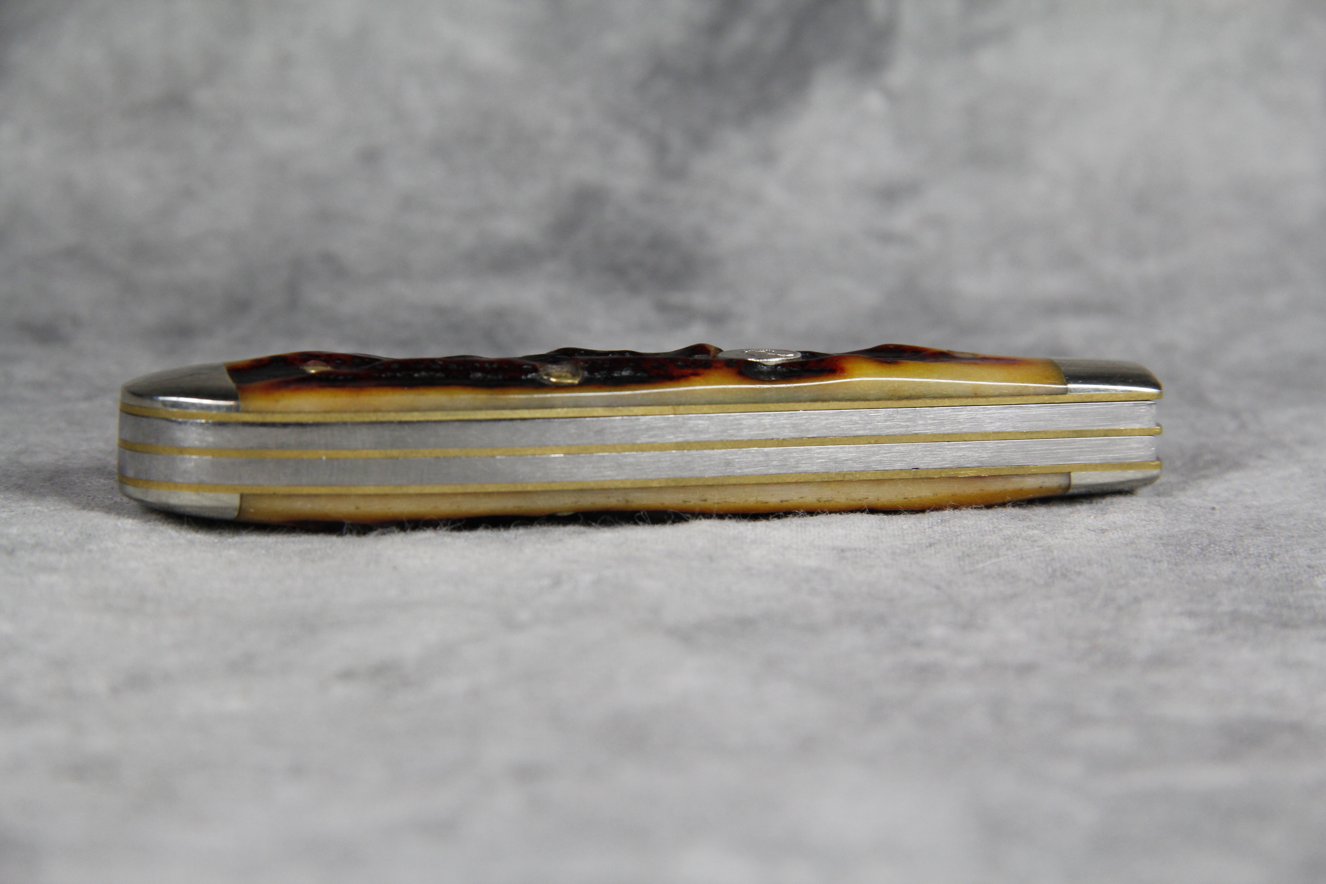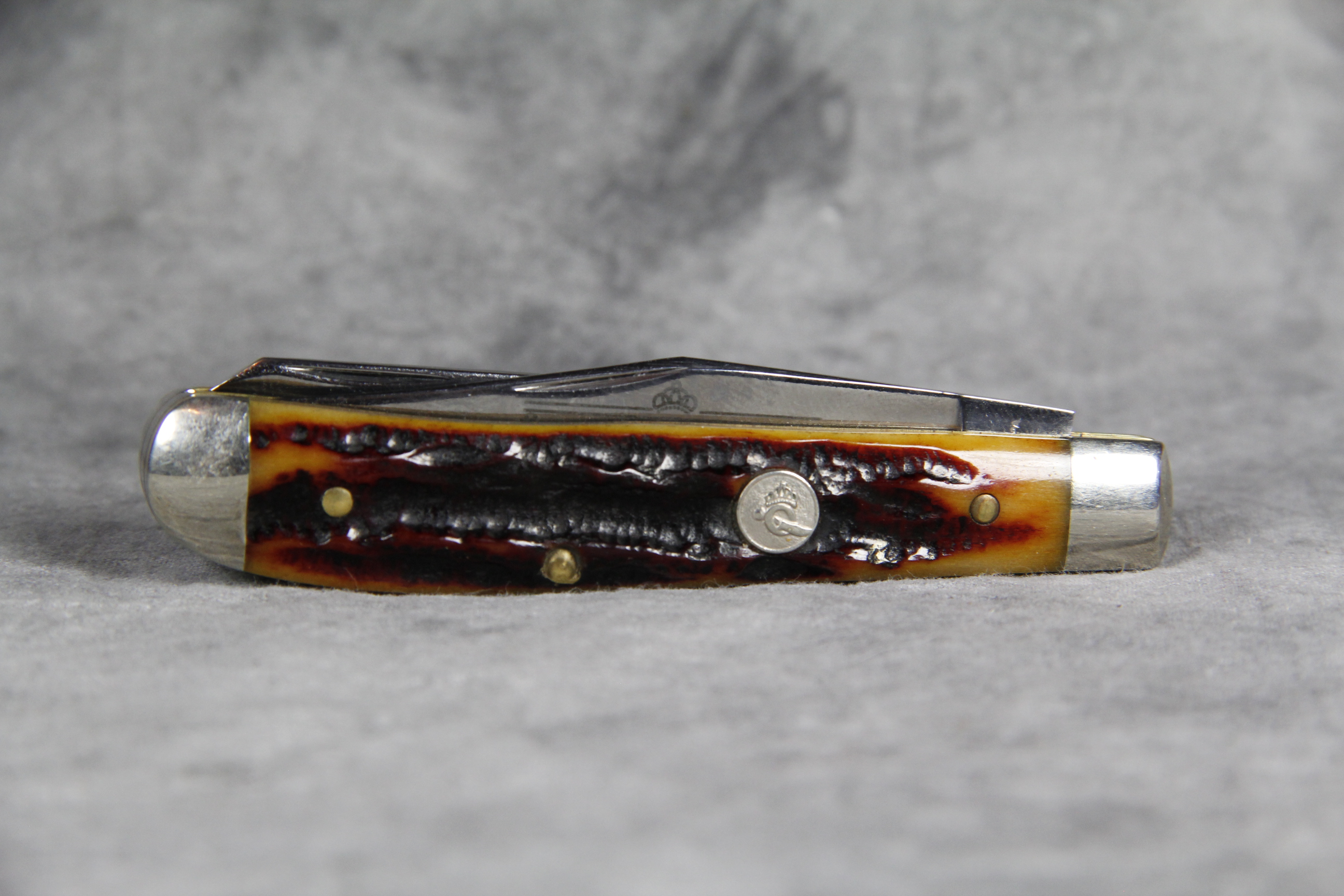 January 08, 2026 - 3-1/2 inches closed. 6-3/8 inches open. Made in USA. 'Queen logo and Titusville, PA and PH-D2' tang stamp. Raised Letter Embossed shield. Honey Bone handle. Nickel Silver bolsters. Brass liner.