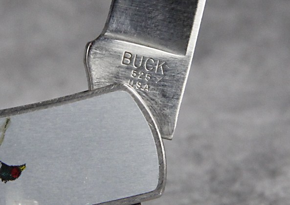 November 03, 2025 - Single Blade Folding Lockback Knife with full-color illustration on front handle. 2-3/4 inches closed. 4-5/8 inches open. Made in USA. 'Buck 525 / USA' tang stamp. Stainless Steel blades. Stainless Steel handle. With original box and paperwork.
