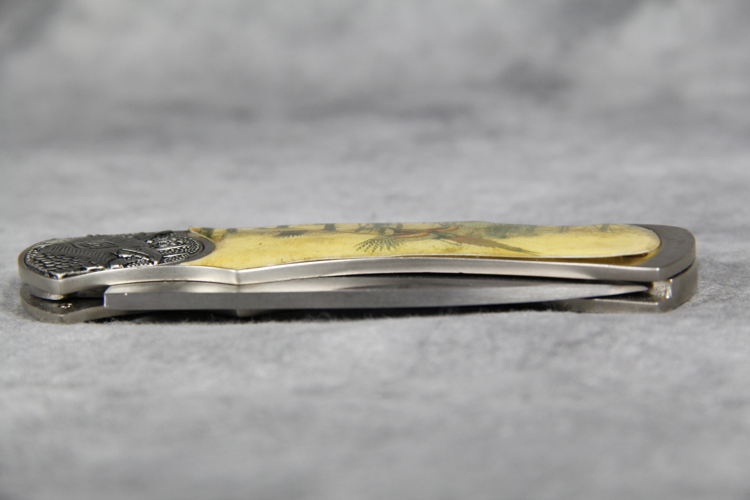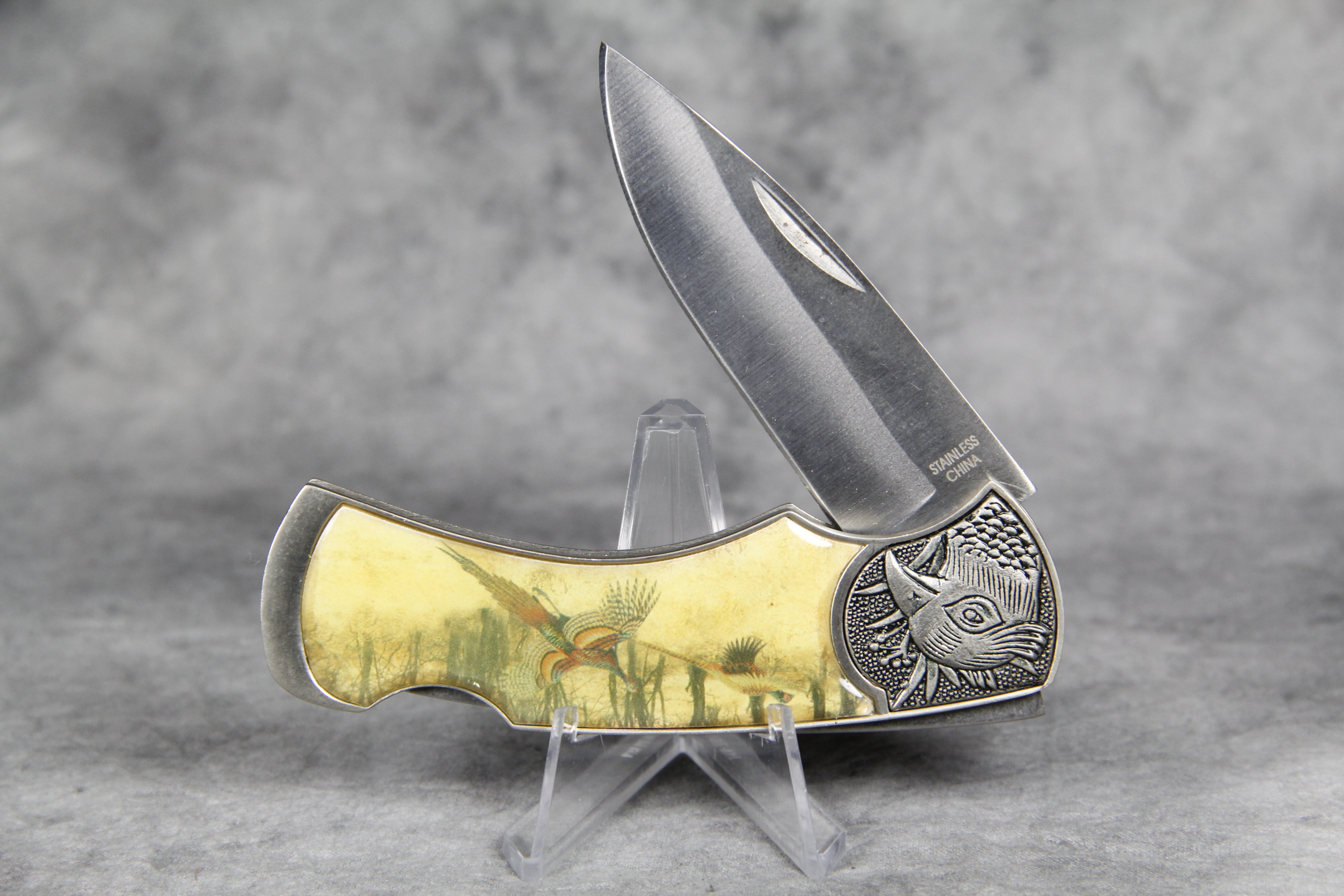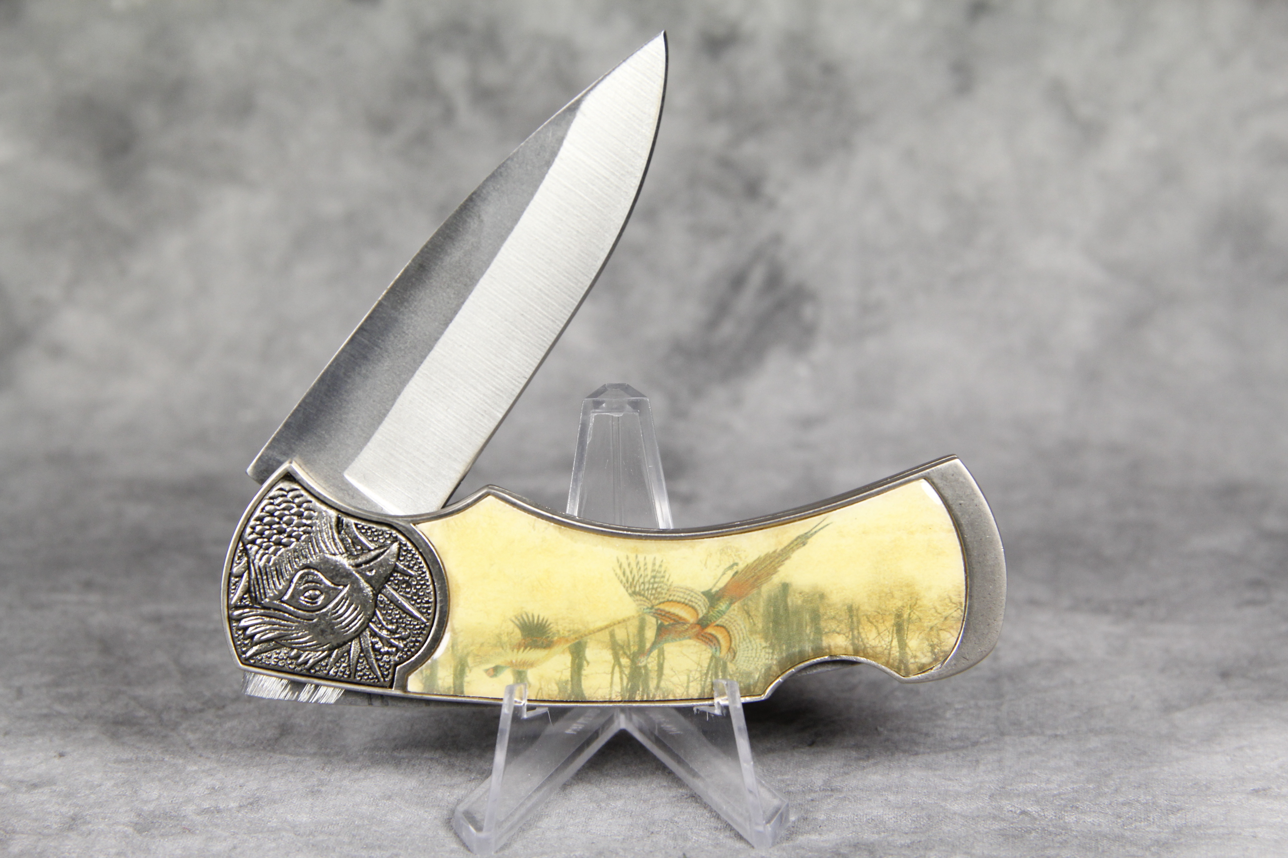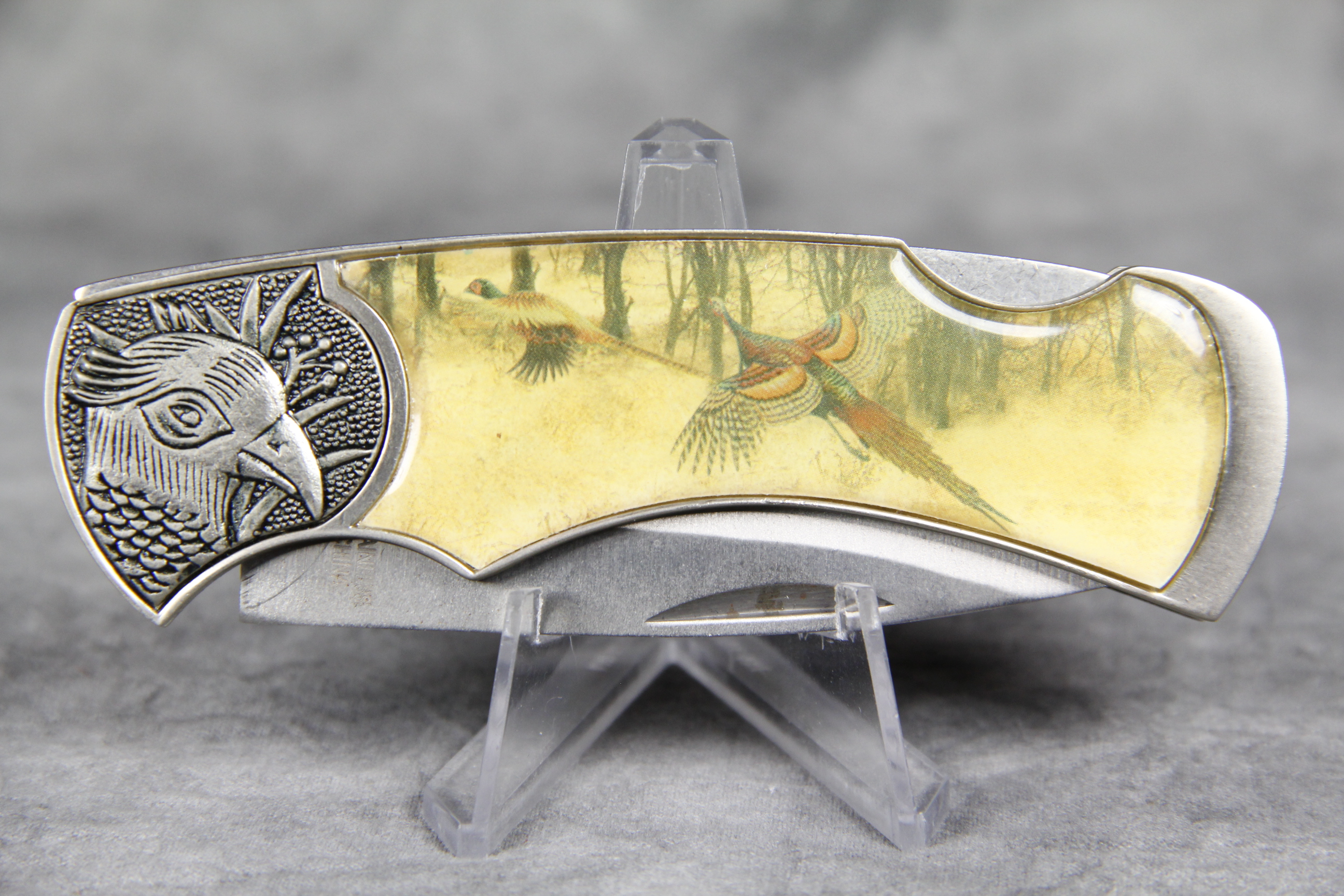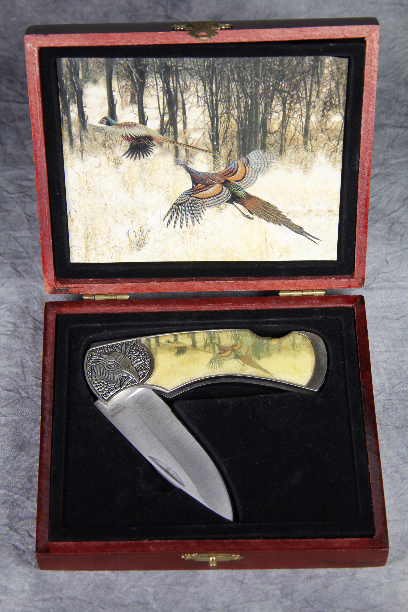 Pheasant Folding Lockback Knife in Wood Keepsake Box