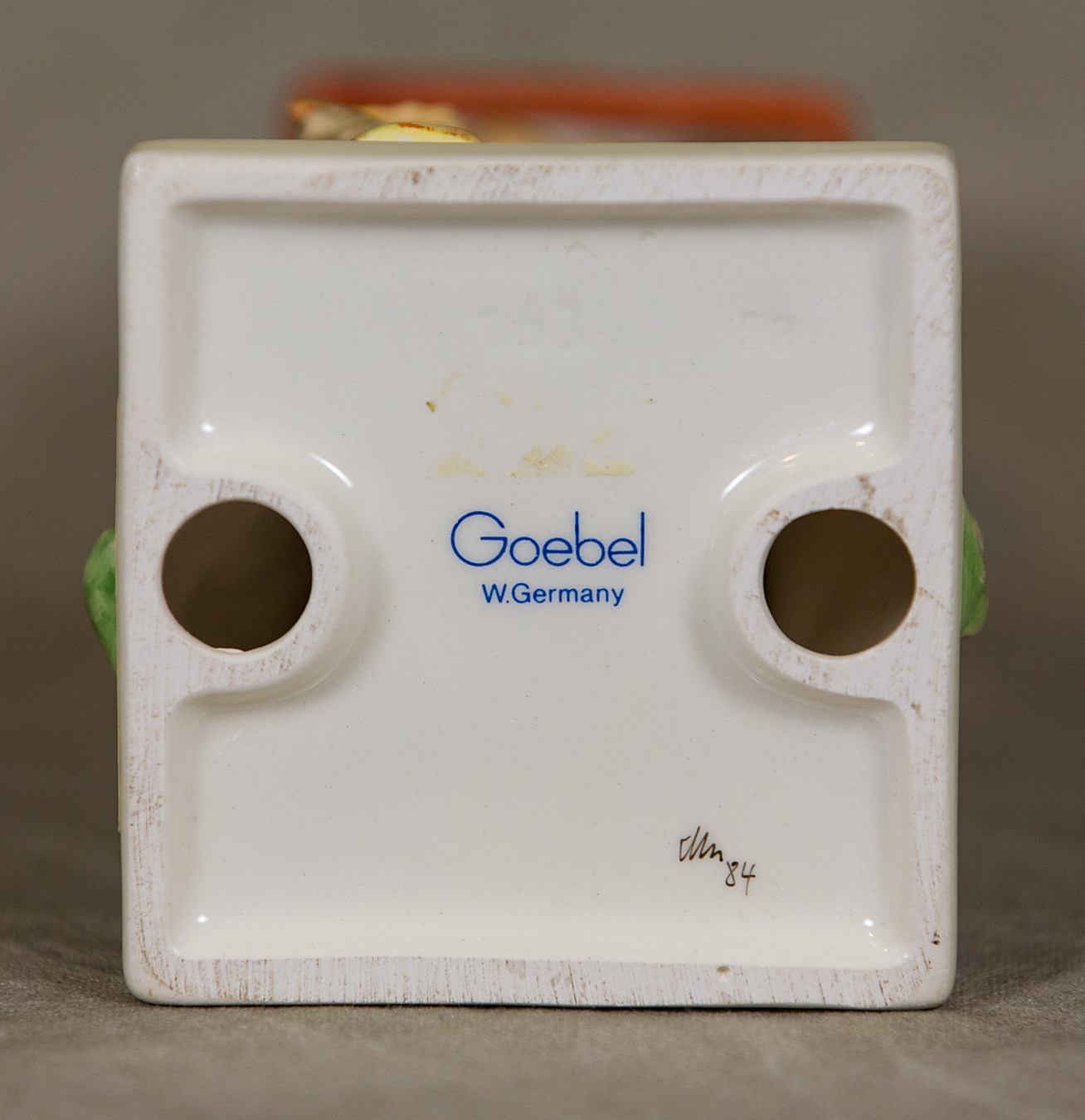 March 13, 2026 - 6-1/2 inches tall. Base is incised 163. Goebel TMK 6 trademark imprinted in blue on bottom of base. Painter hand-initialed and dated in black ink on bottom of base.