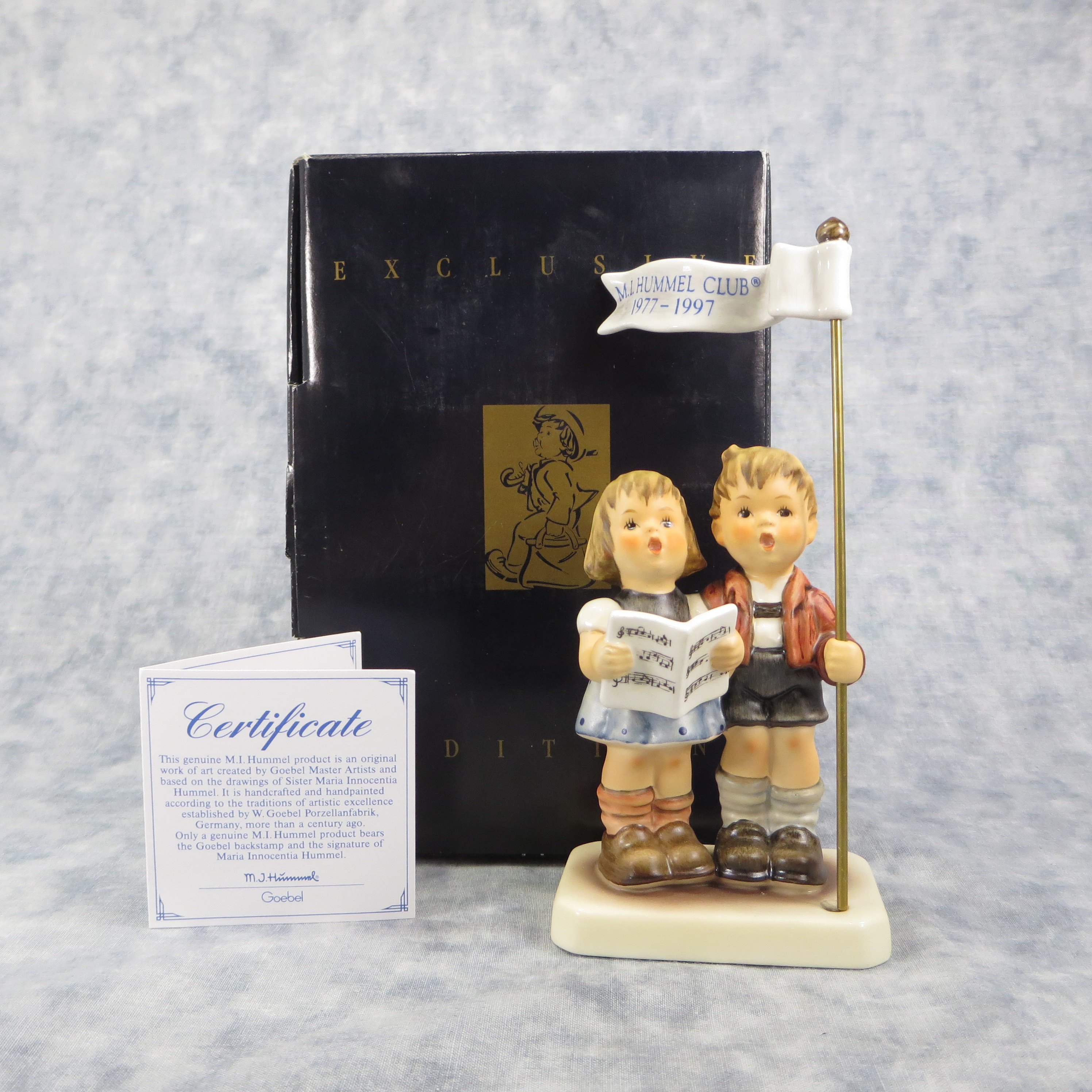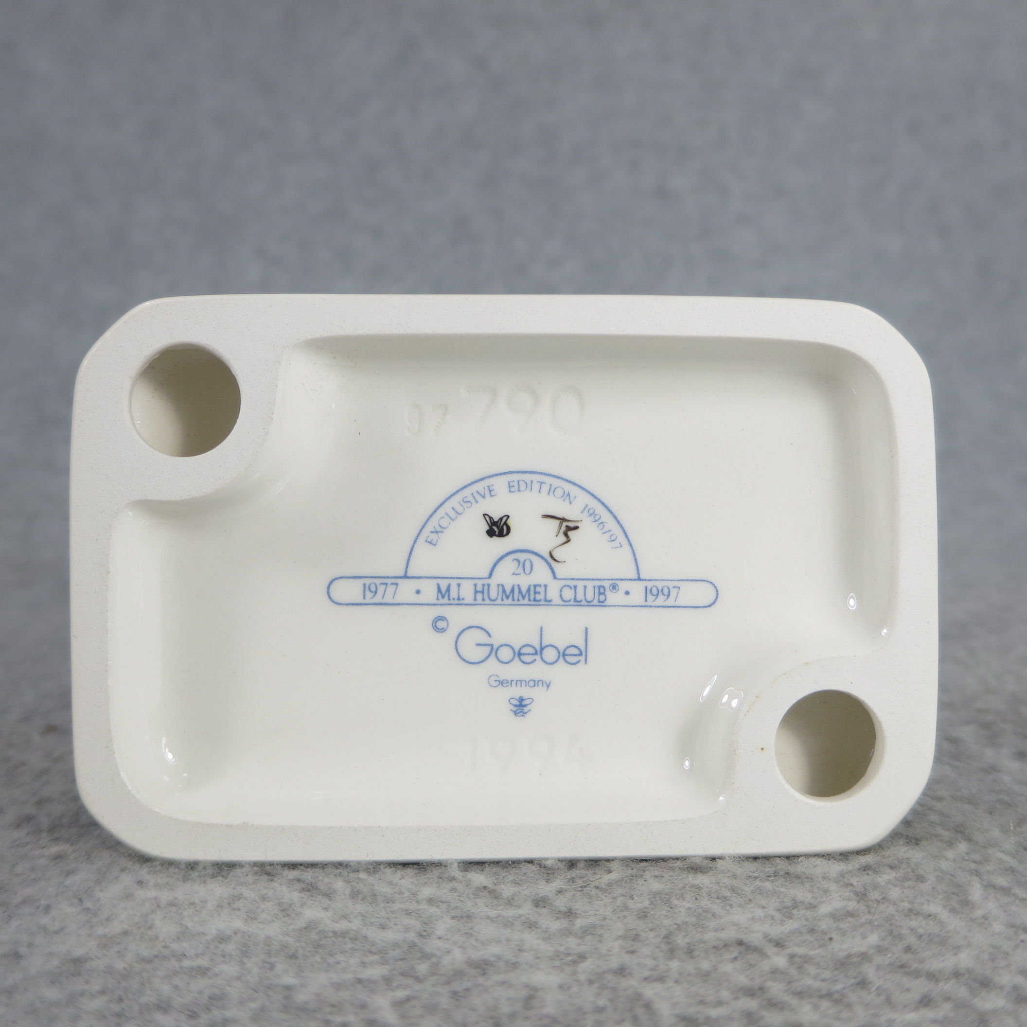 January 16, 2026 - 6-3/4 inches tall. Base is incised 790 and 1994. Goebel TMK 7 trademark and 'EXCLUSIVE EDITION 1996/97 20 M.I. Hummel Club 1977-1997' imprinted in blue on bottom of base. Painter hand-initialed in black ink on bottom of base.
