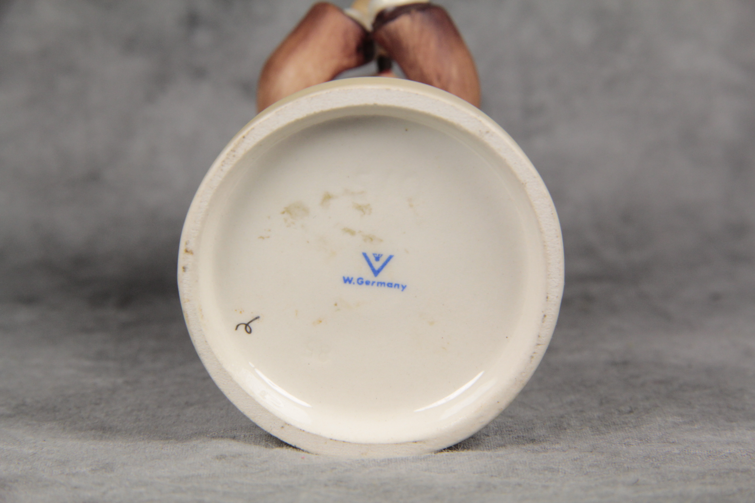 January 16, 2026 - 4-3/4 inches tall. Base is incised 85/0. Goebel TMK 3 trademark imprinted in blue on bottom of base. Painter hand-initialed in black ink on bottom of base.