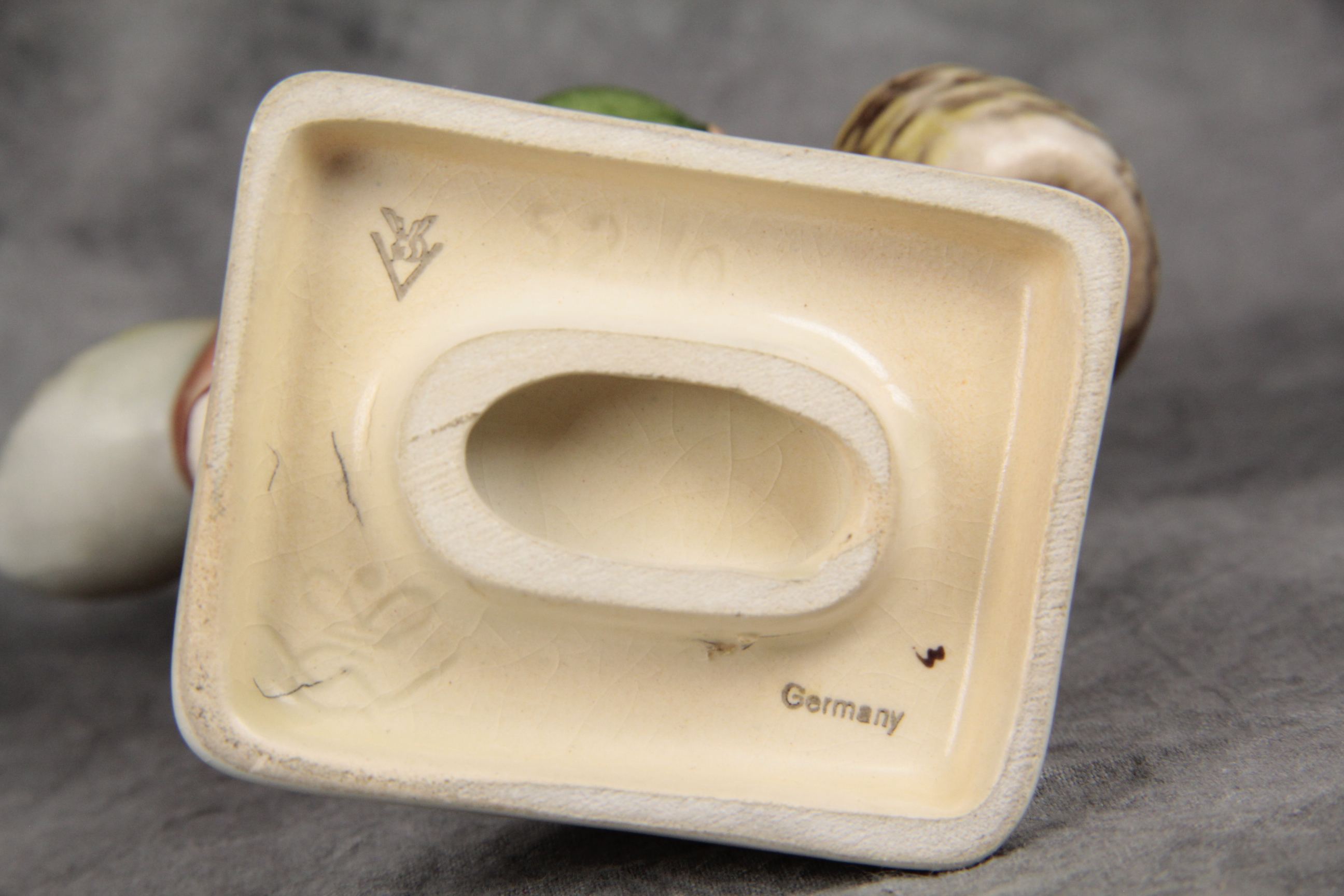 January 16, 2026 - Vintage piece! 5-1/4 inches tall. Base is incised 52/0 and with the Goebel Crown. Black Goebel TMK 2 trademark, 'Germany', and artist hand-initialed in black on bottom of base.