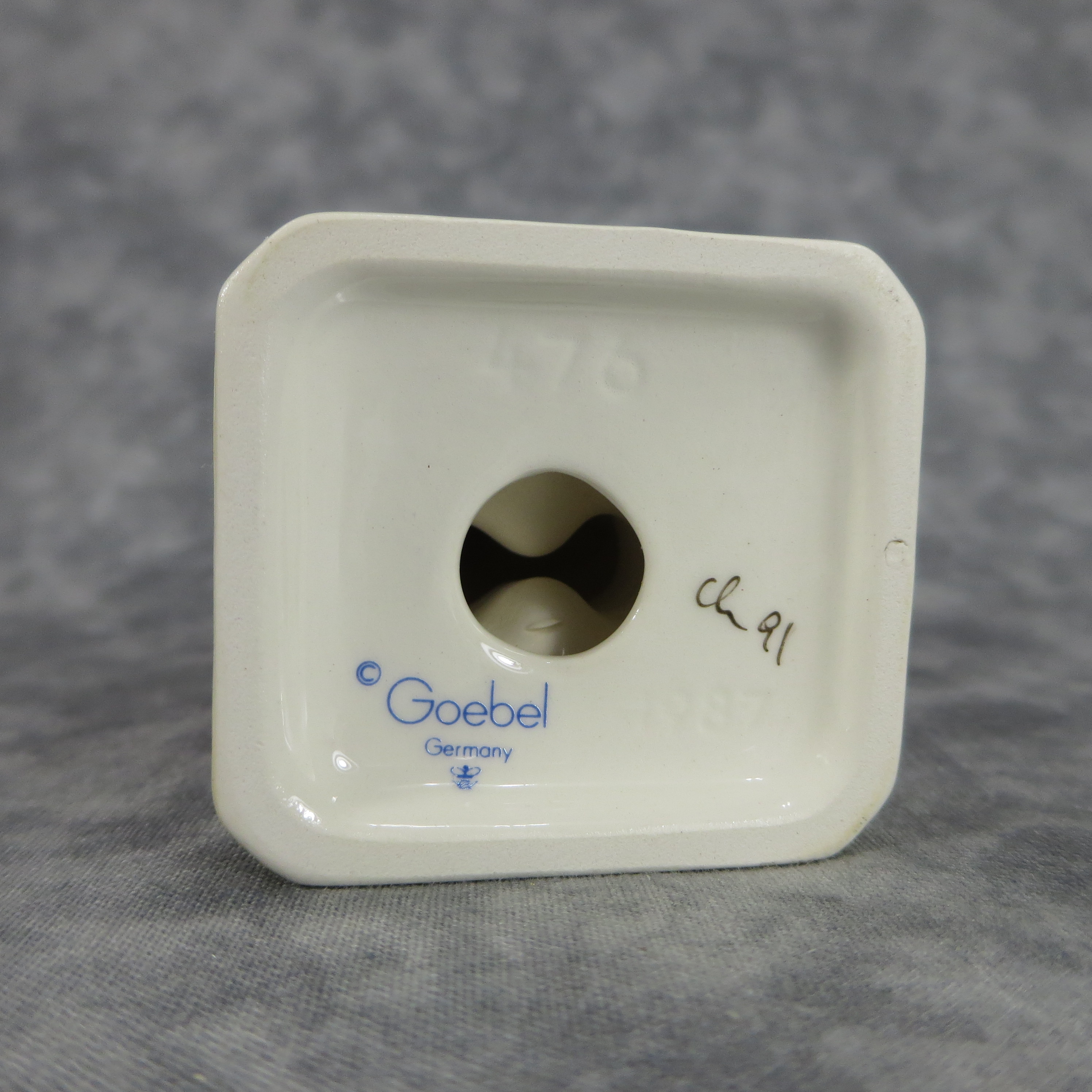 January 18, 2026 - 4-1/4 inches tall. Base is incised 476 and 1987. Goebel TMK 7 trademark imprinted in blue on bottom of base. Painter hand-initialed and dated in black ink on bottom of base.