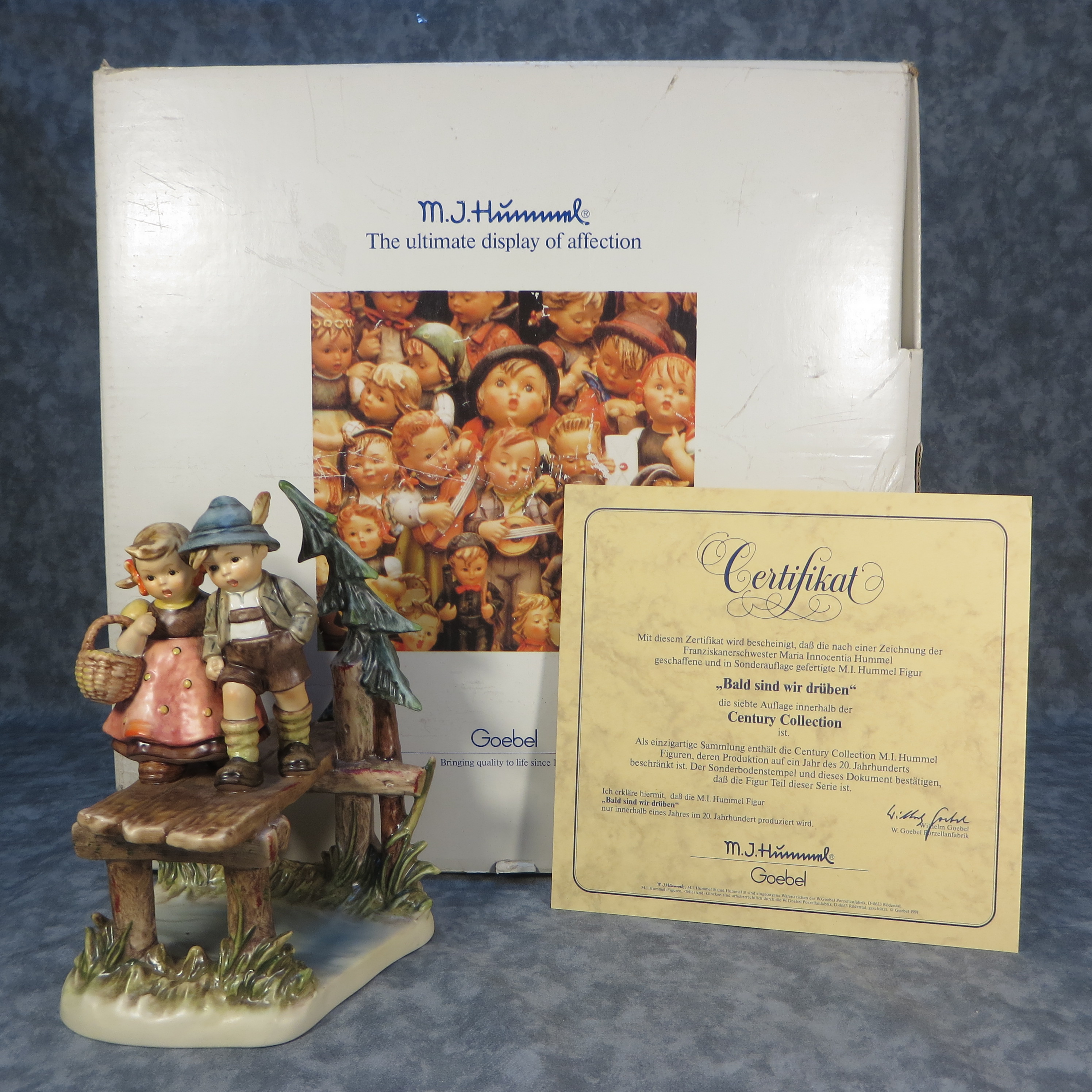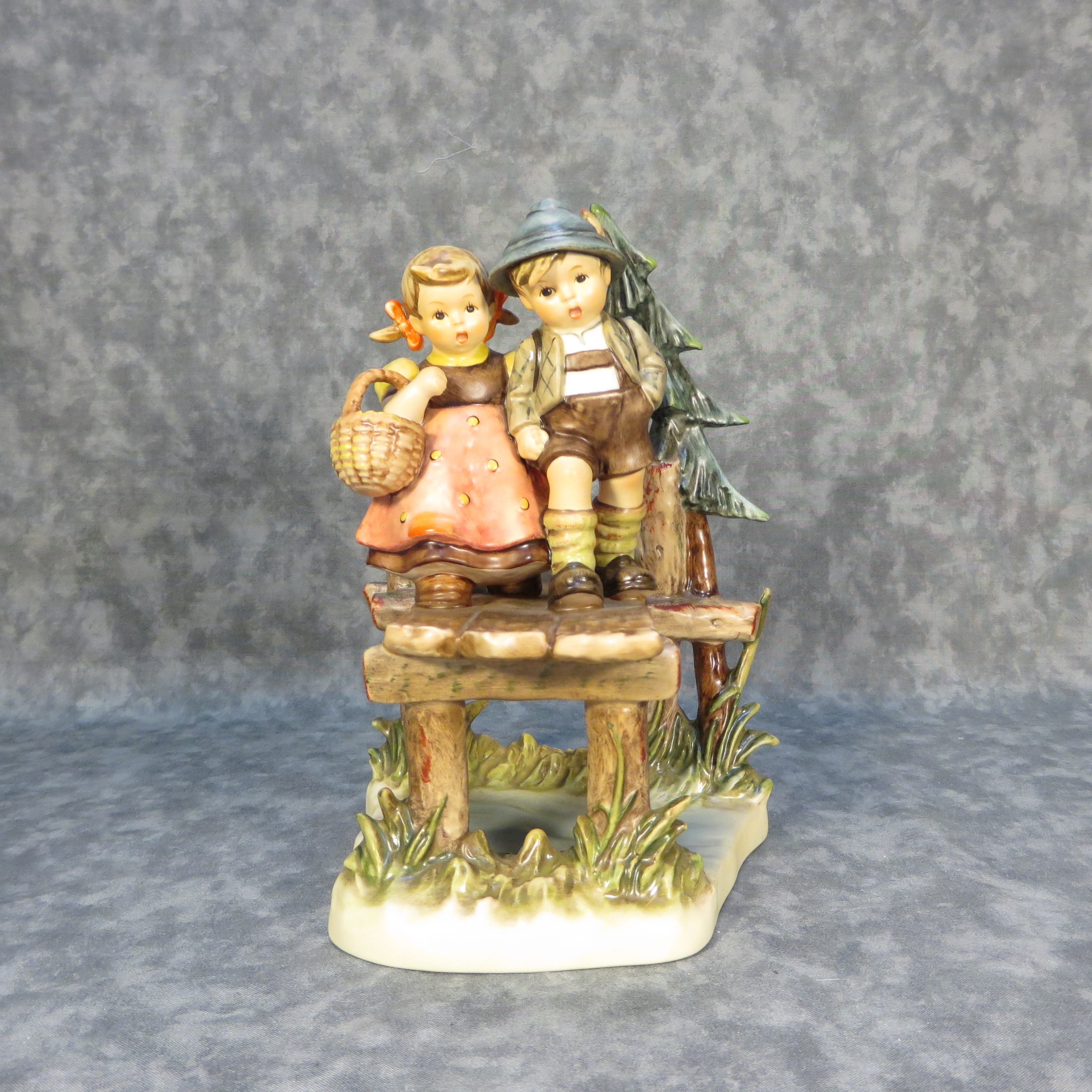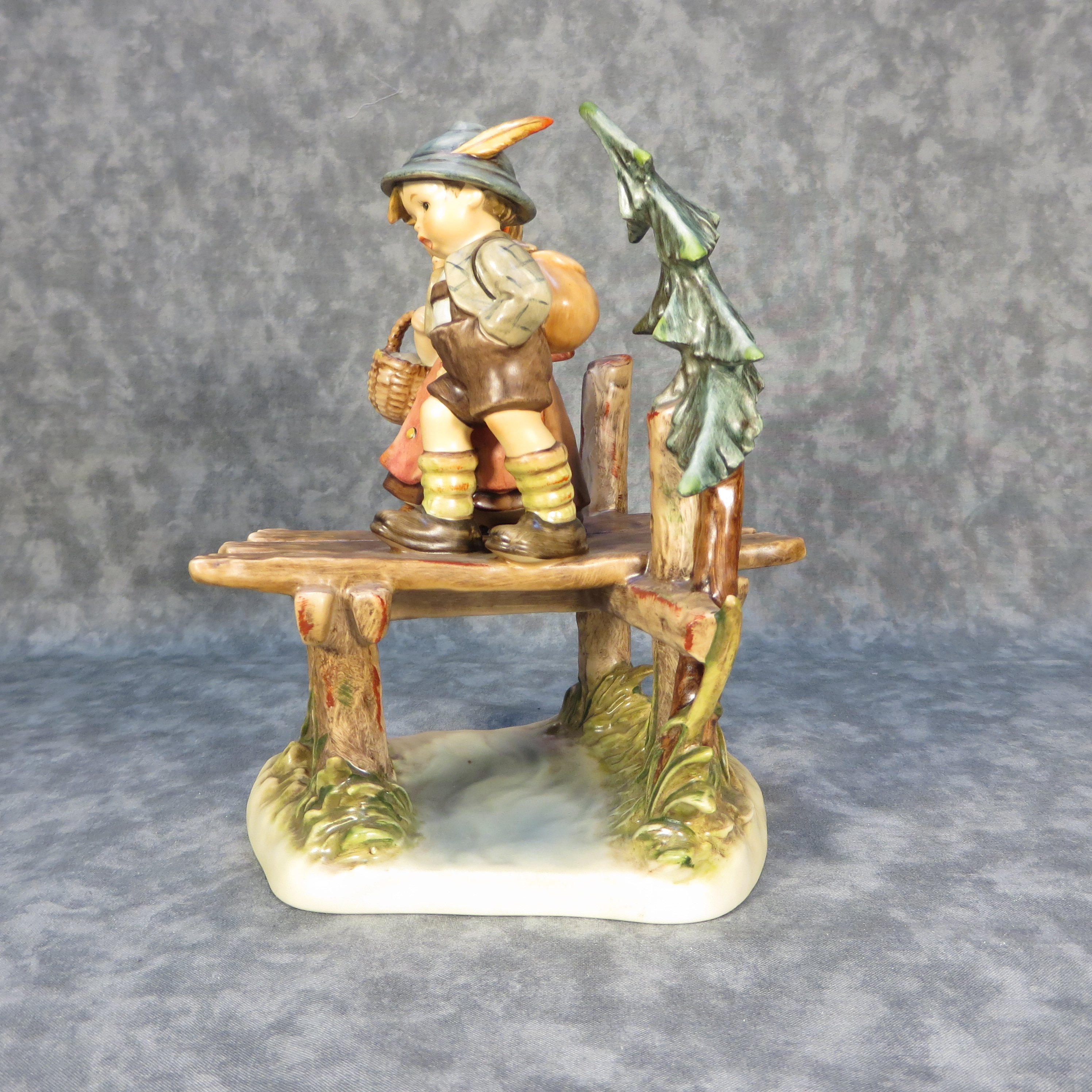 January 18, 2026 - 8 inches tall x 6 inches wide x 5-1/2 inches deep. Base is incised 472 and 1987. Goebel TMK 7 trademark and '1992 CENTURY COLLECTION / On Our Way' imprinted in blue on bottom of base. Painter hand-initialed in black ink on bottom of base.