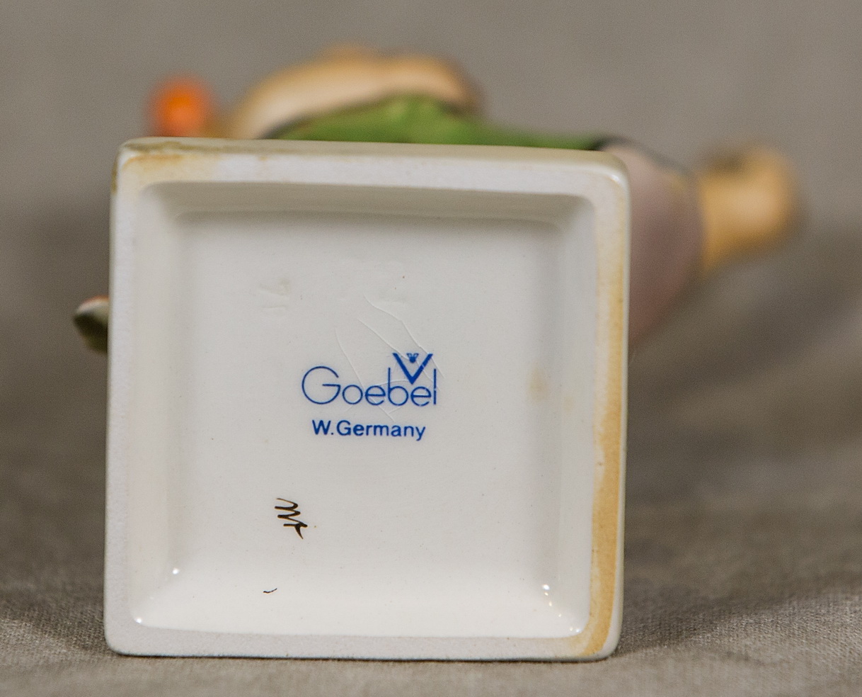 January 16, 2026 - 5-1/4 inches tall. Base is incised 72. Goebel TMK 5 trademark imprinted in blue on bottom of base. Painter hand-initialed in black ink on bottom of base.