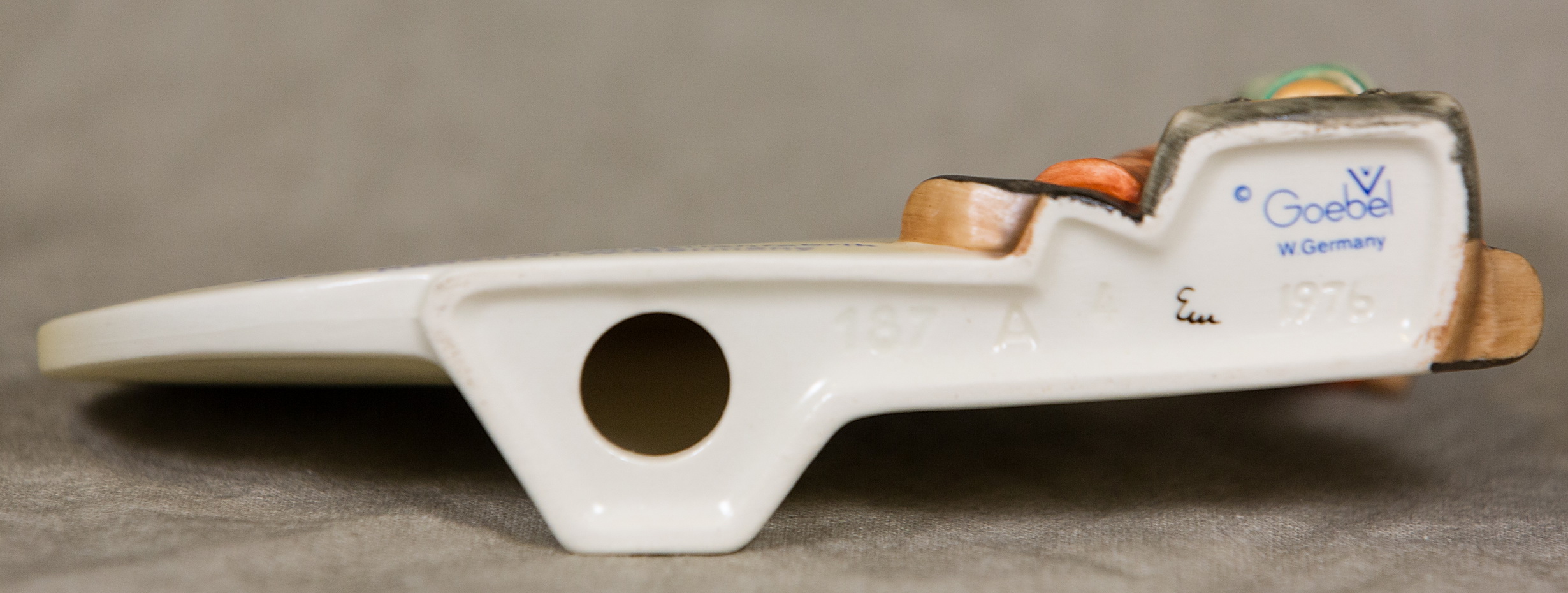 January 16, 2026 - 3-1/2 X 5-3/4 inches tall. Base is incised 187/A and 1976. Goebel TMK 5 trademark imprinted in blue on bottom of base. Painter hand-initialed in black ink on bottom of base.