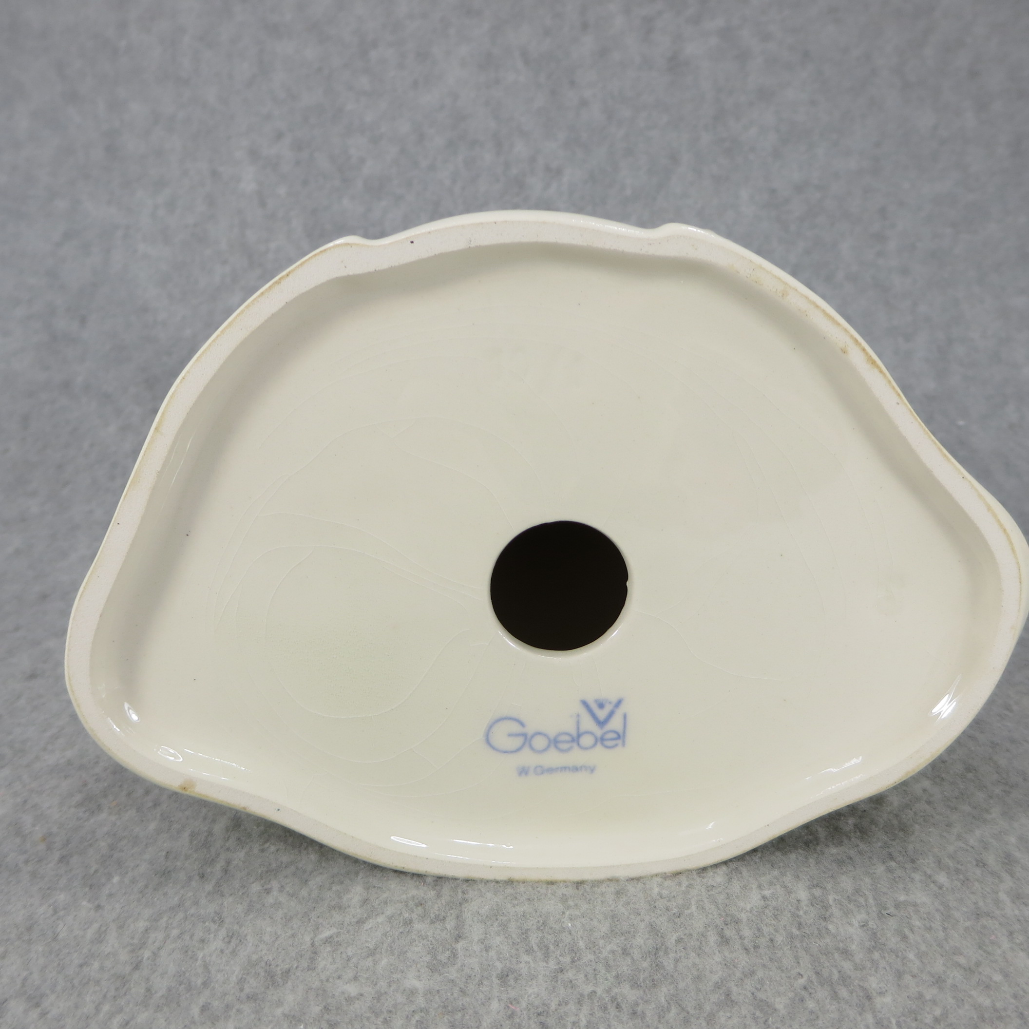 January 16, 2026 - 8 inches tall by 5 1/2 inches wide at base. Base is incised 10/1. Goebel TMK 5 trademark imprinted in blue on bottom of base.