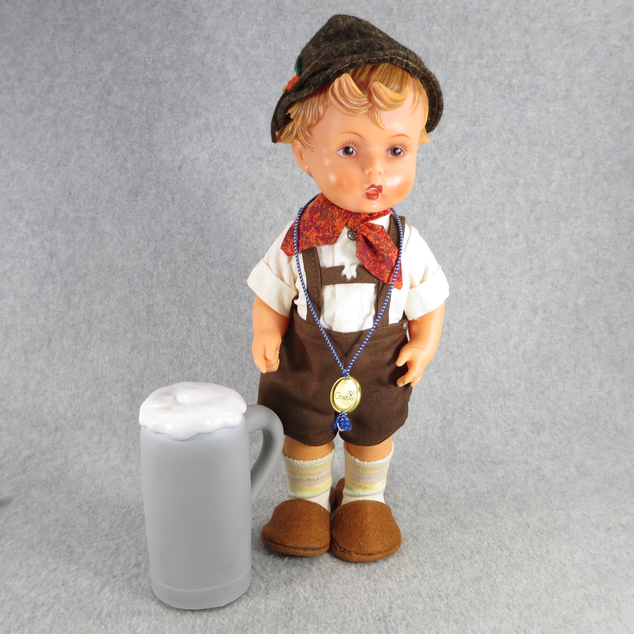 January 18, 2026 - 11.5 inches tall. Back of neck is incised with Maria Hummel's Signature and the Goebel TMK 5 trademark. Hand painted with hard body and soft head/limbs. Doll is complete with hat, ale, radish, 2 beets, scarf, 3-piece clothing, socks and shoe accessories.