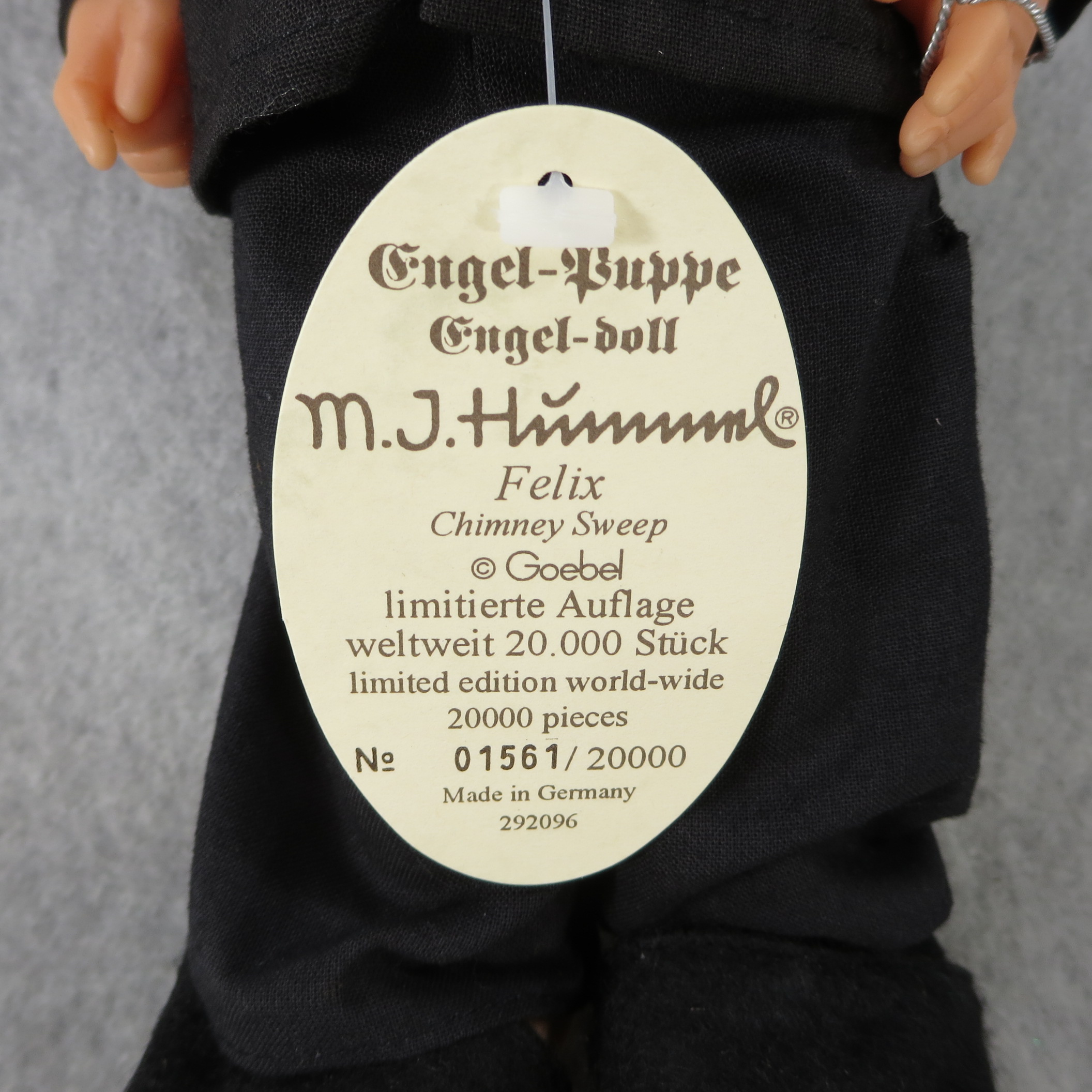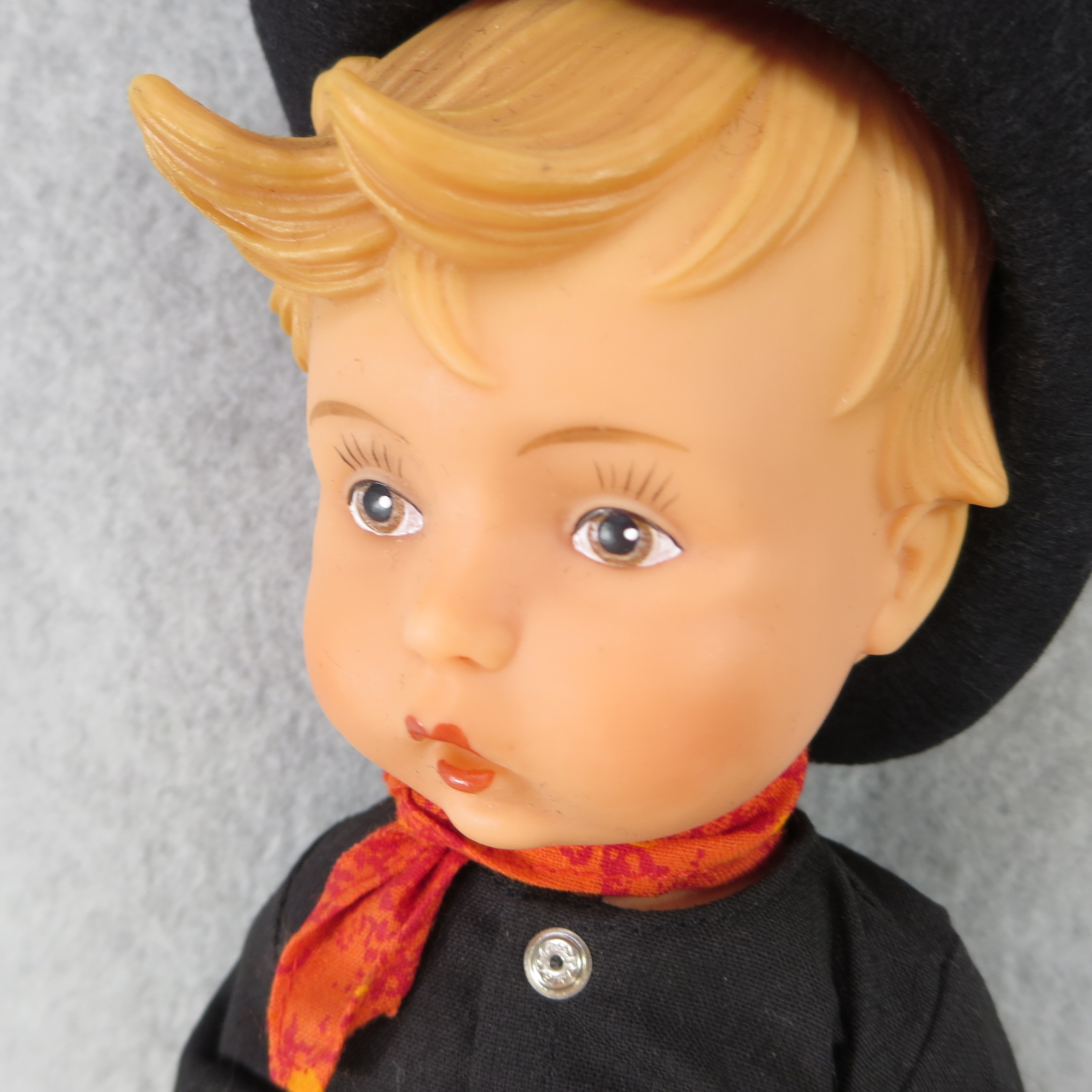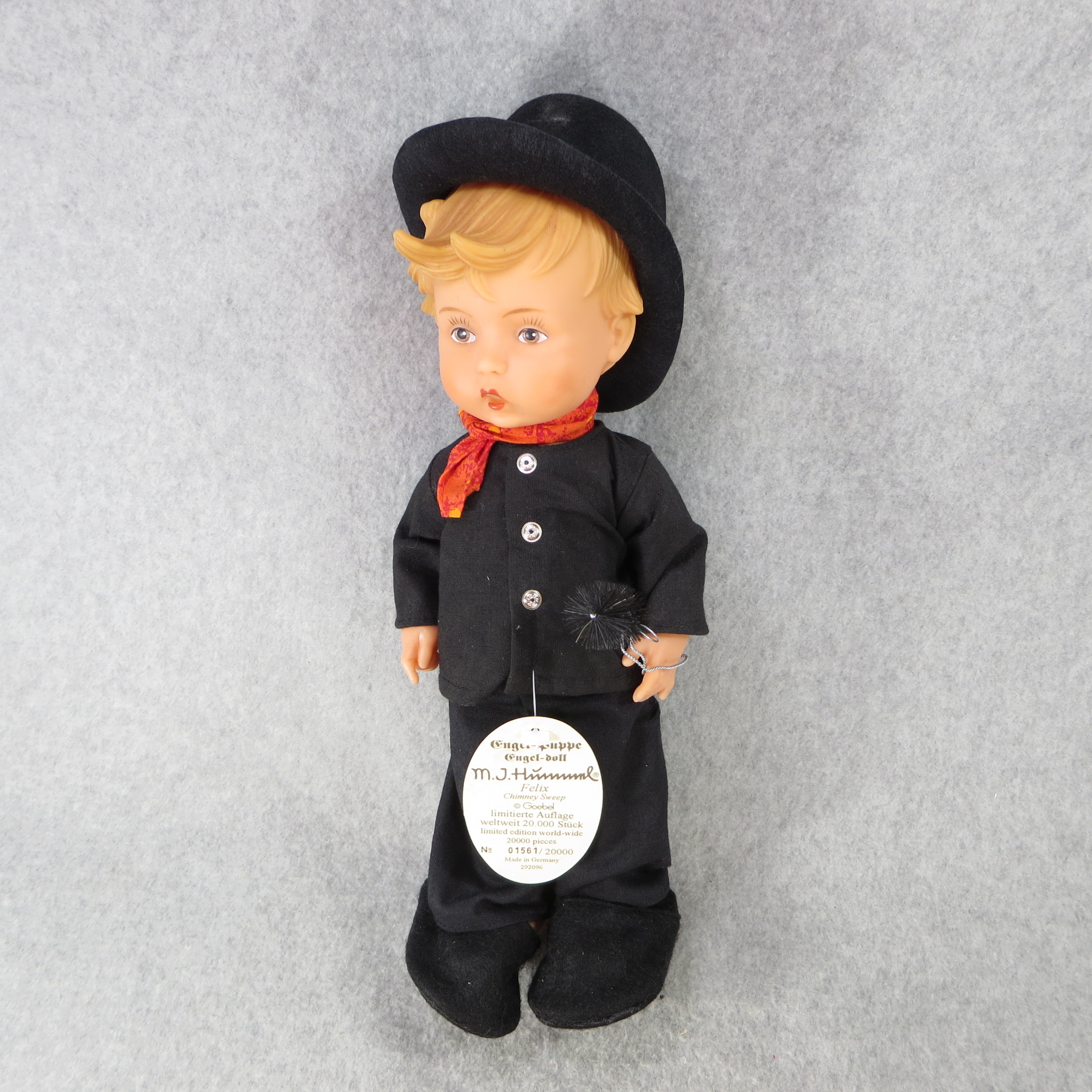 January 16, 2026 - 11.5 inches tall. Back of neck is incised with Maria Hummel's Signature and the Goebel TMK 5 trademark. Hand painted with hard body and soft head/limbs. Attached hanging tag reads 'limited edition world-wide 20000 pieces No. xxxxx/20000'. Doll is complete with hat, bristle brush, scarf, 2-piece clothing, socks and shoe accessories.