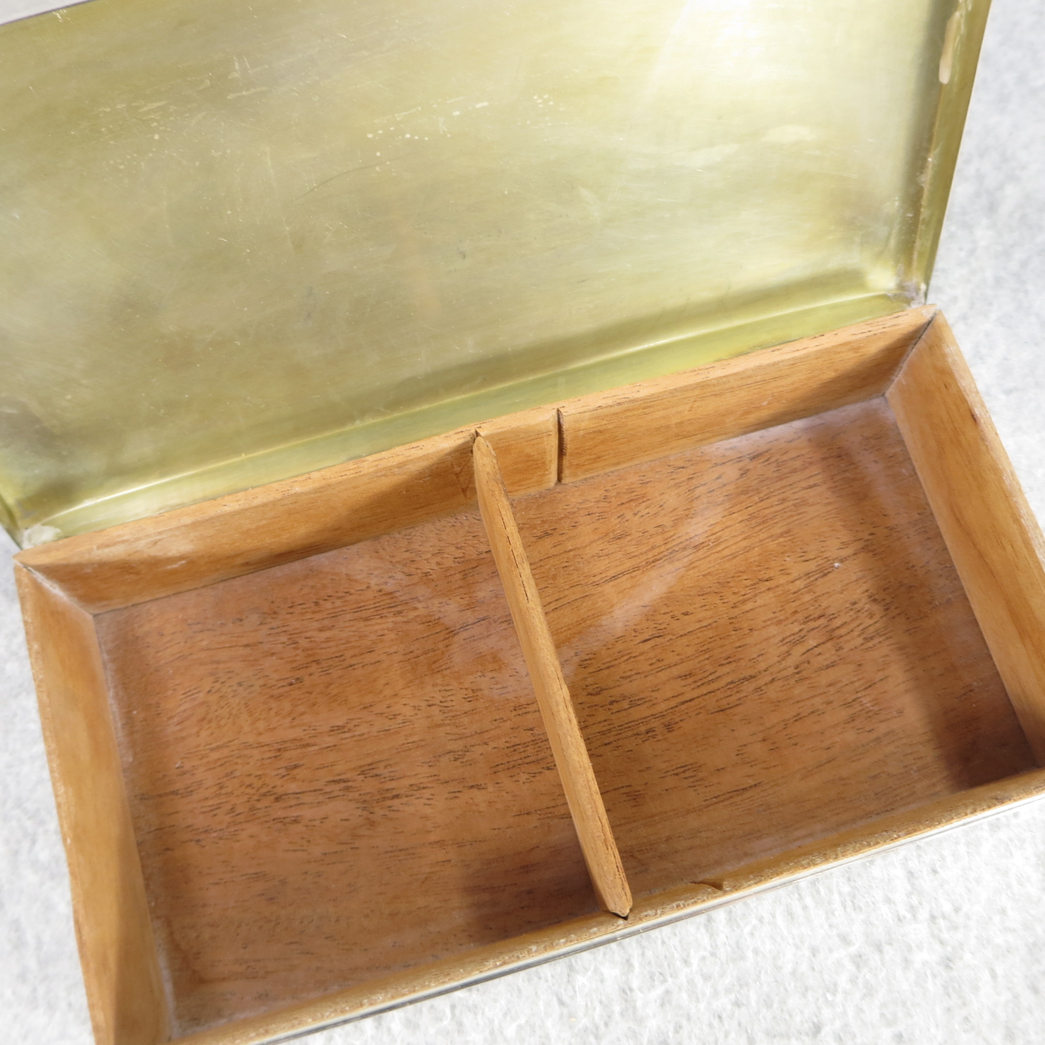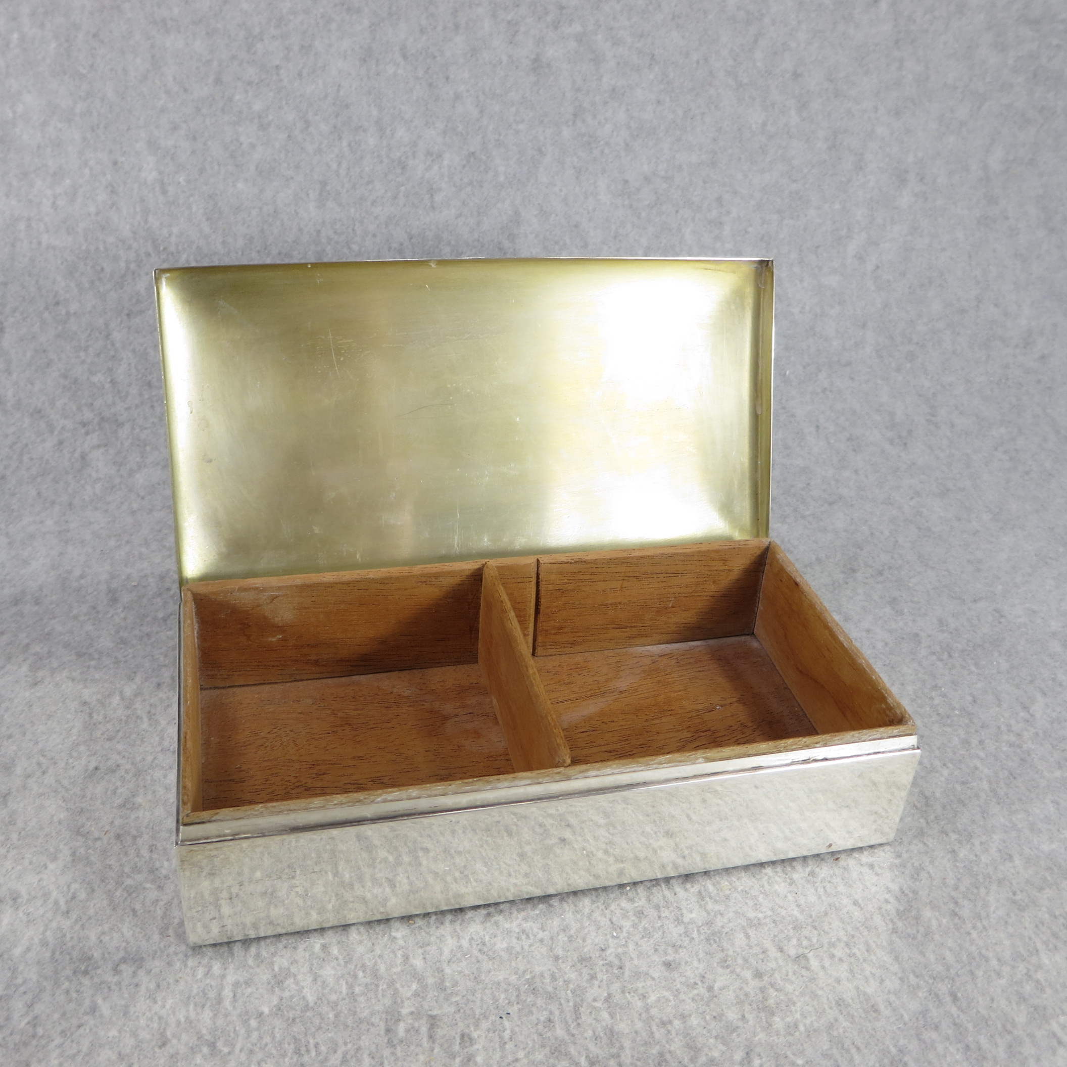 You have: Sterling Silver 6-1/4" x 3-1/4" Gold Vermeil Wood Lined Cigarette Box with Hinged Lid (Smith & Smith, 1950's)