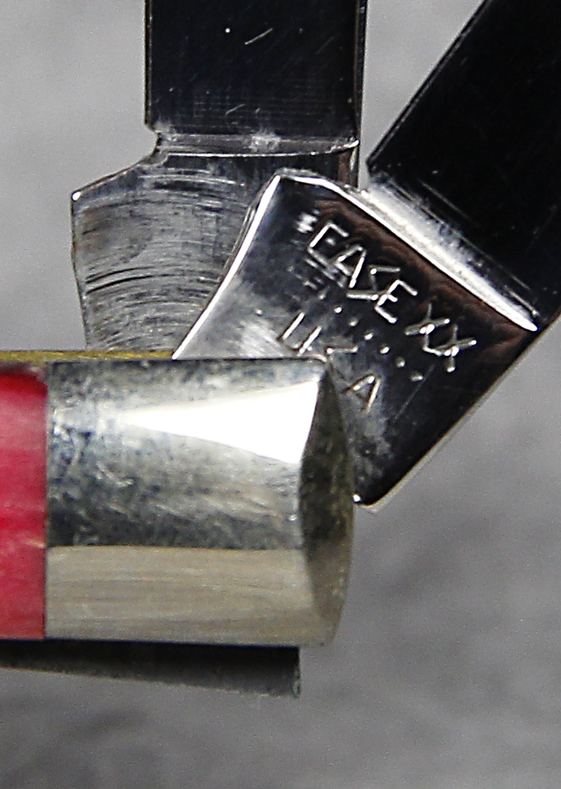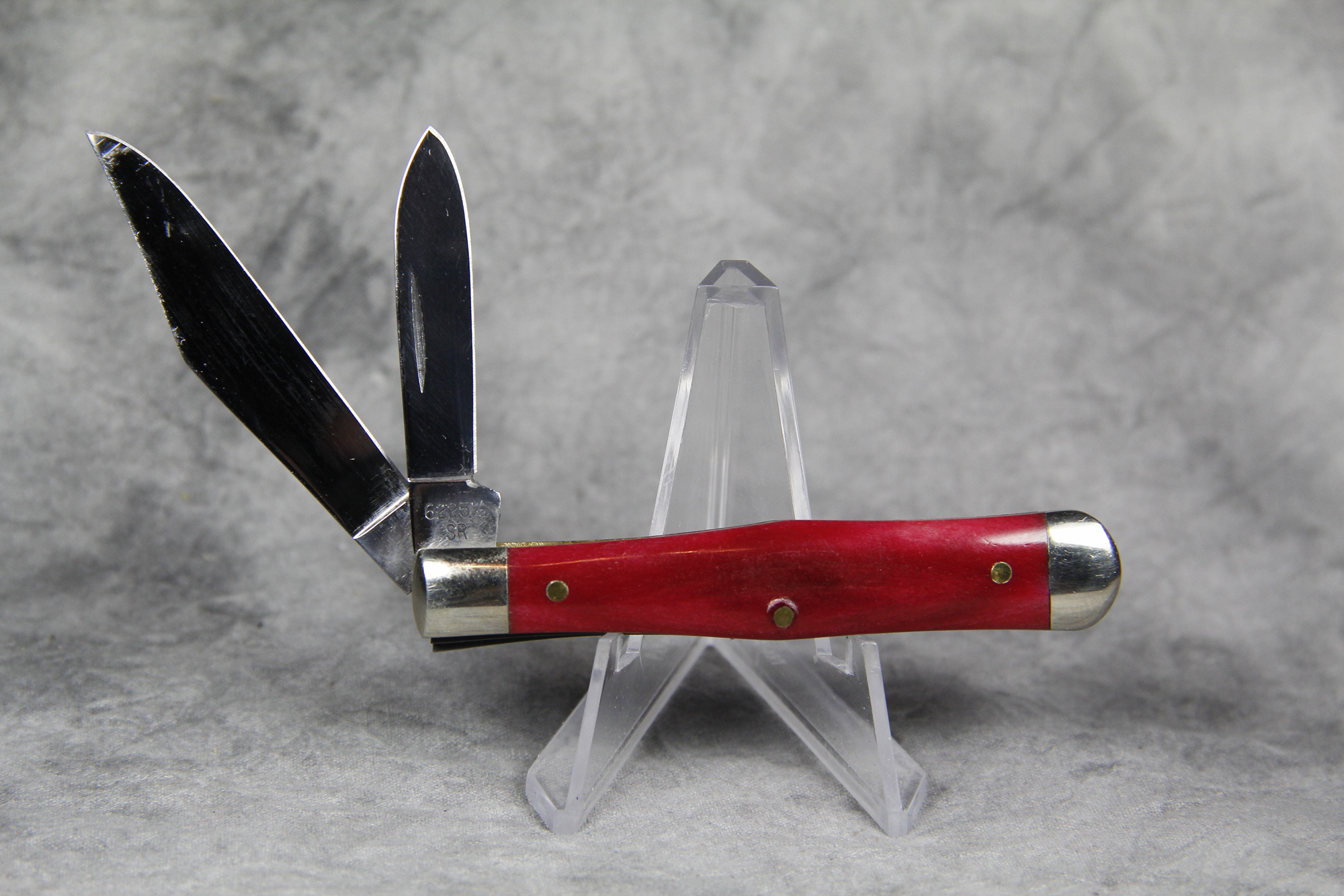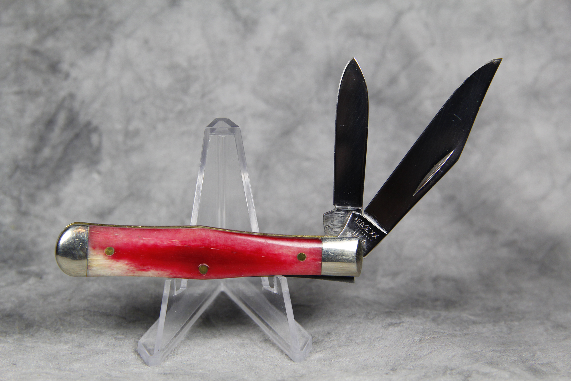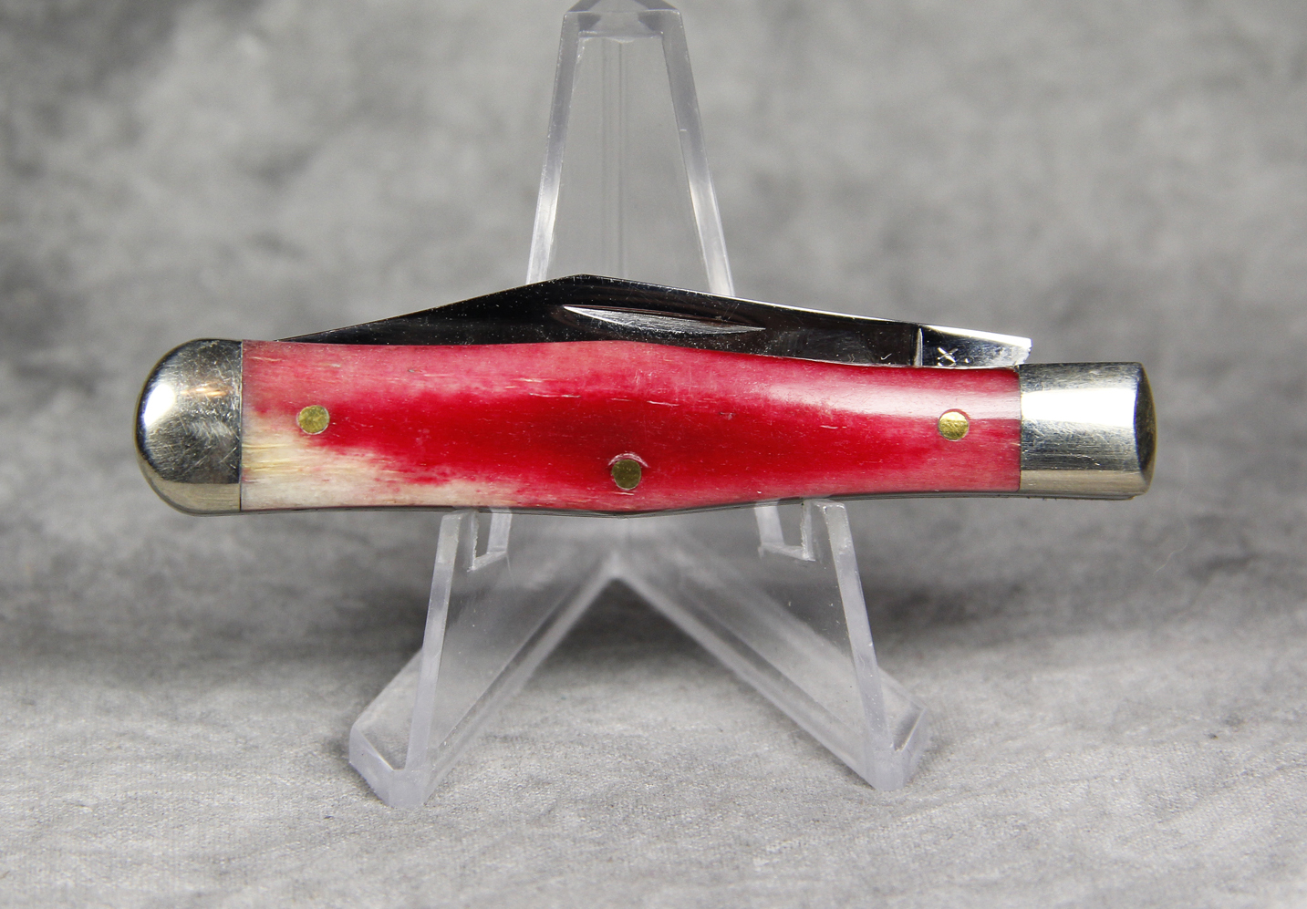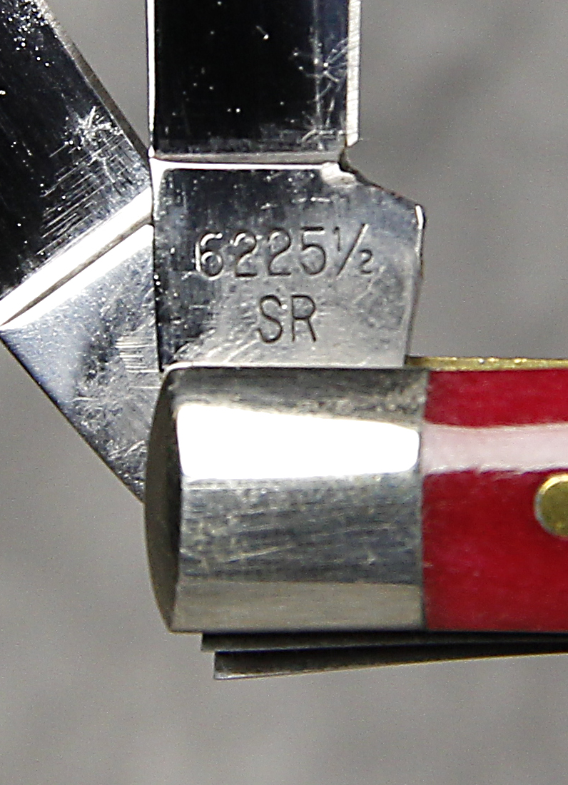 December 22, 2025 - 3 inches closed. 5-1/4 inches open. Made in USA. "CASE XX ********* USA" (9 dot with lightning bolt S) and "6225 1/2 SR" tang stamps. Stainless Steel blades. Smooth Red Appaloosa Bone handle. Nickel Silver bolsters. Brass liner.
