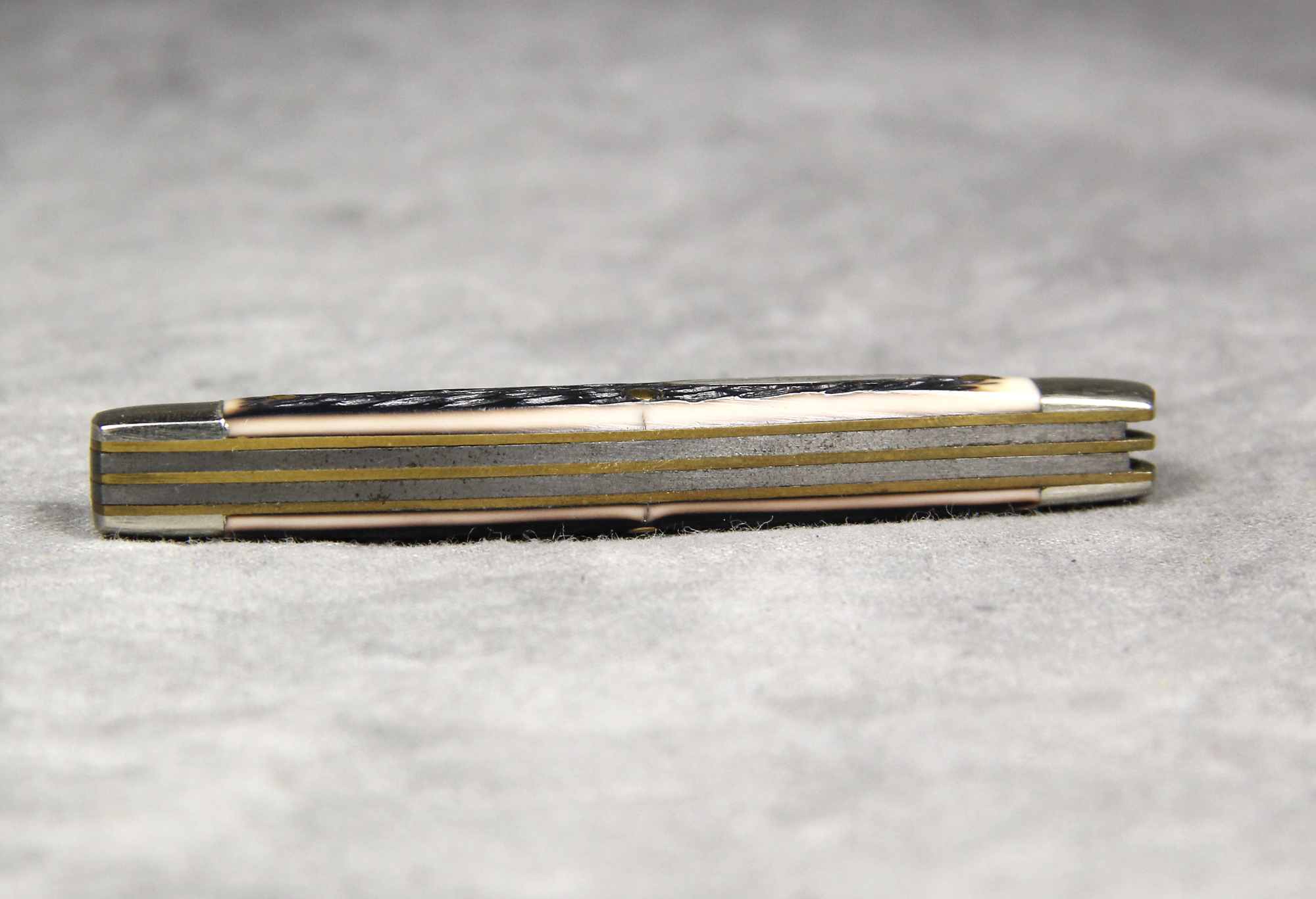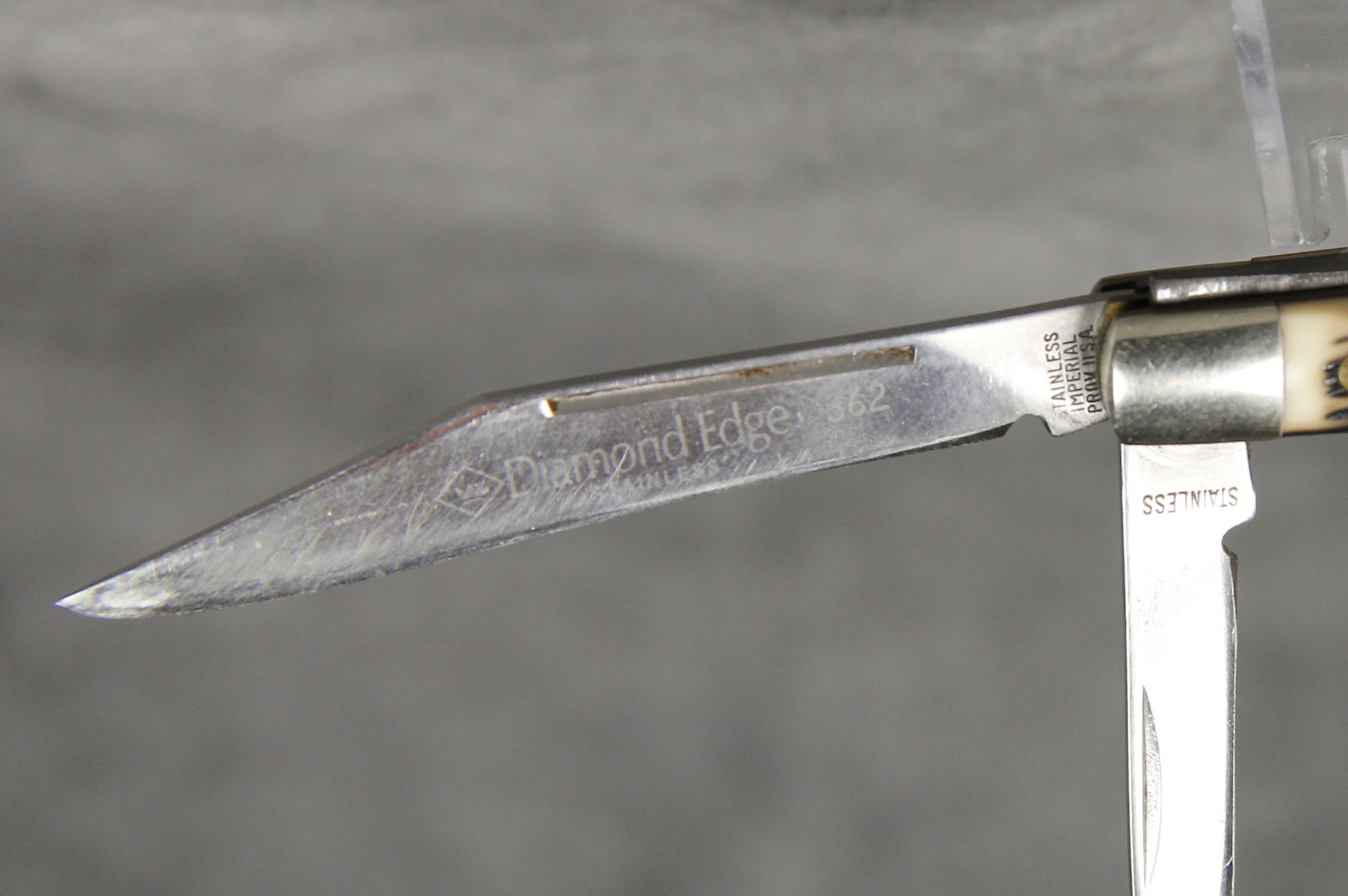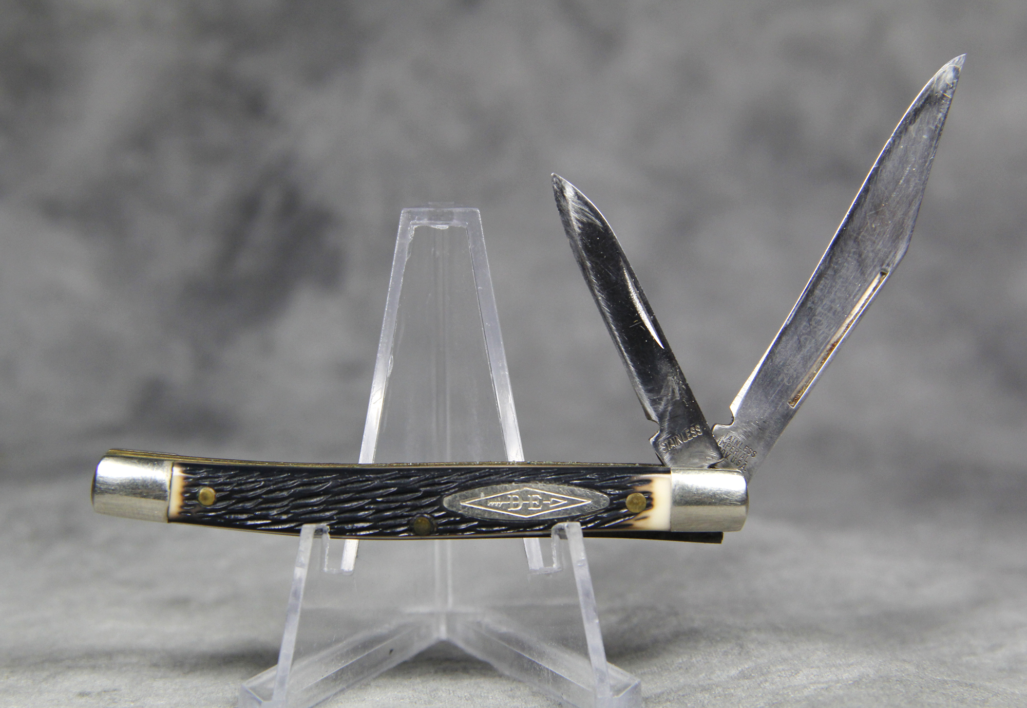 November 06, 2025 - 2-3/4 inches closed. 4-7/8 inches open. "STAINLESS IMPERIAL PROV. U.S.A." and "STAINLESS" tang stamps. Oval with "D E" Arrow logo inside diamond shield. Stainless Steel blades. Delrin handle. Nickel Silver bolsters. Brass liner.