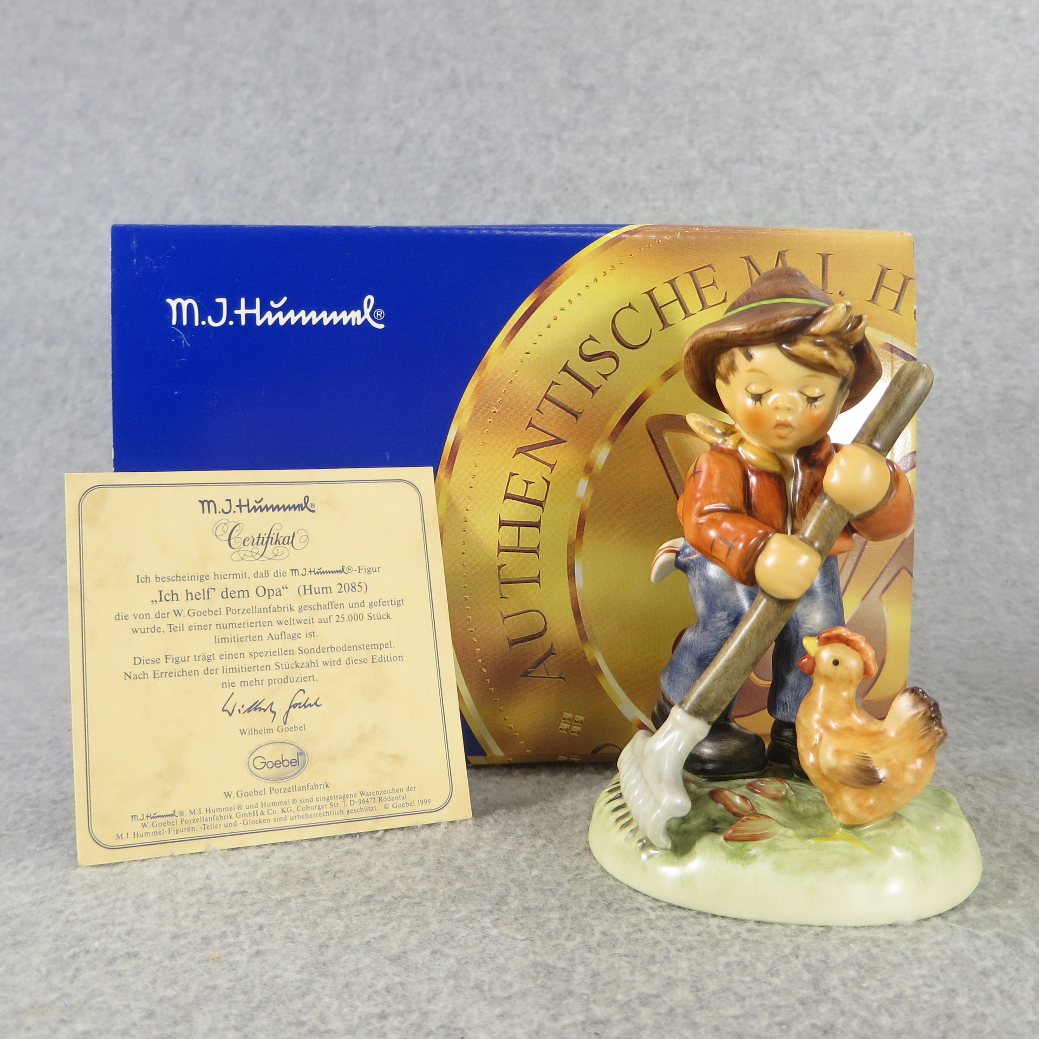 March 13, 2026 - 4-3/4 inches tall. Base is incised 2085 and 1999 . Goebel TMK 8 trademark and 'Limited Edition No. xxxxx of 25.000' imprinted in blue on bottom of base. Artist hand initialed and dated in black ink.