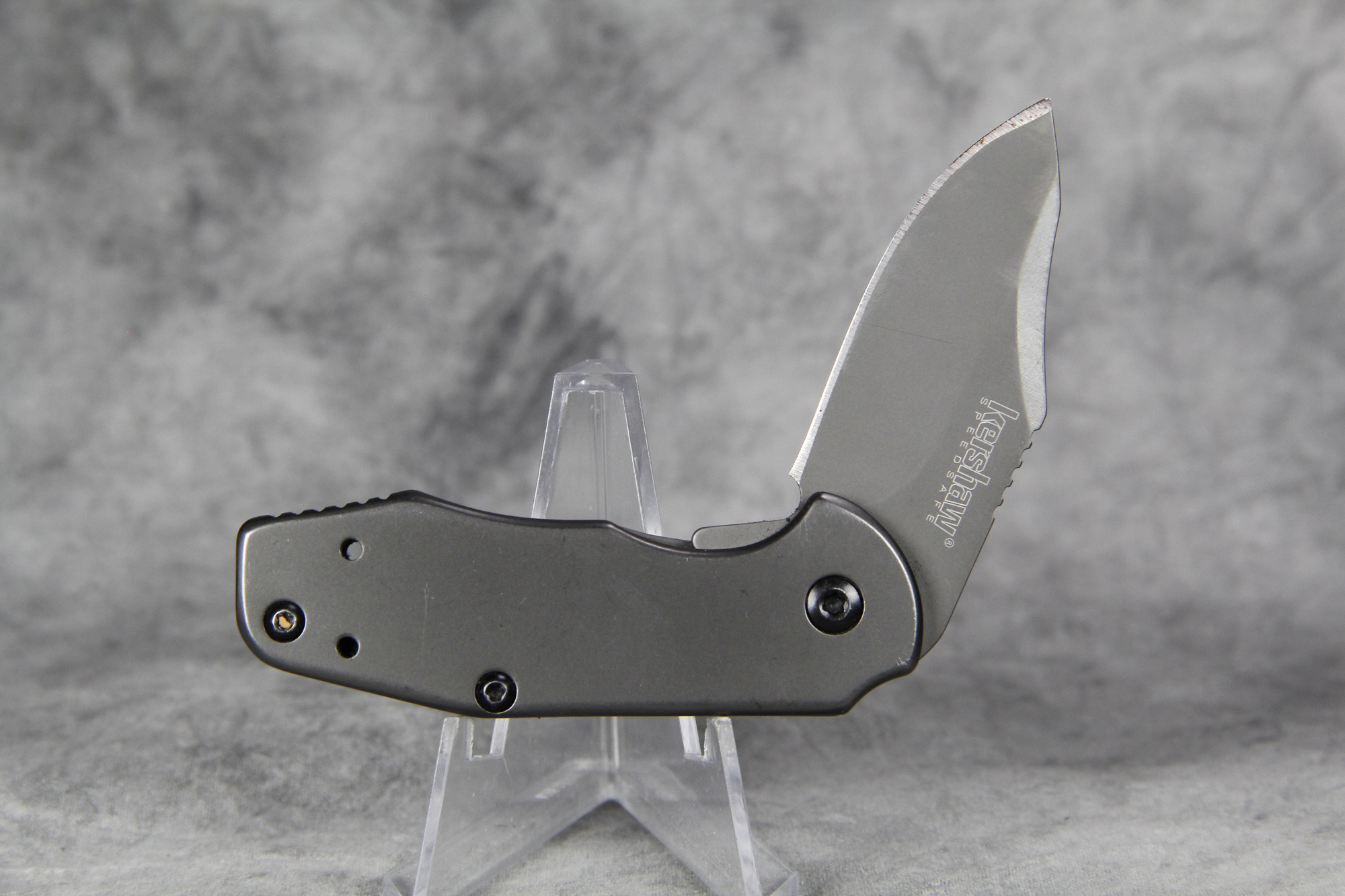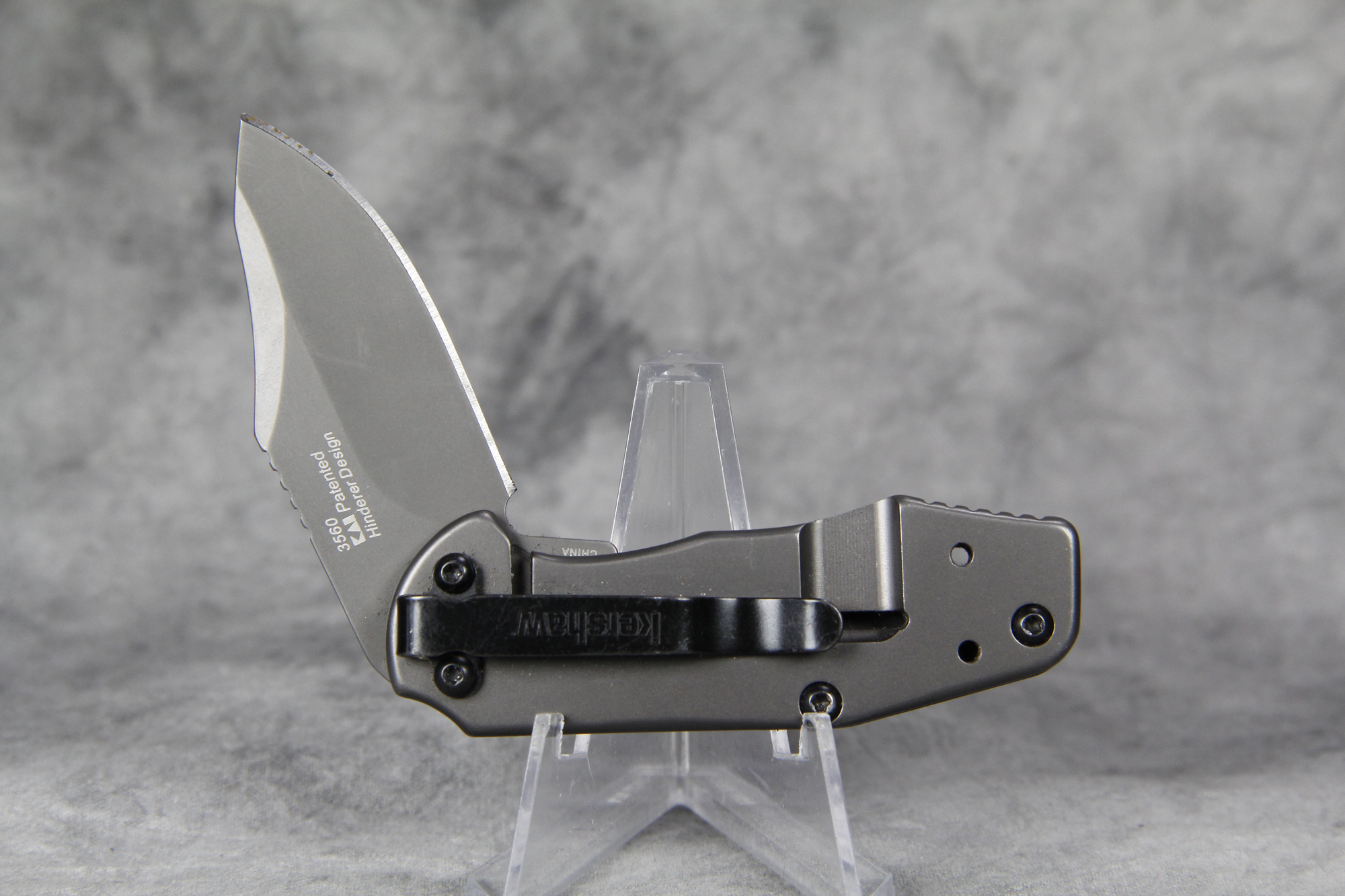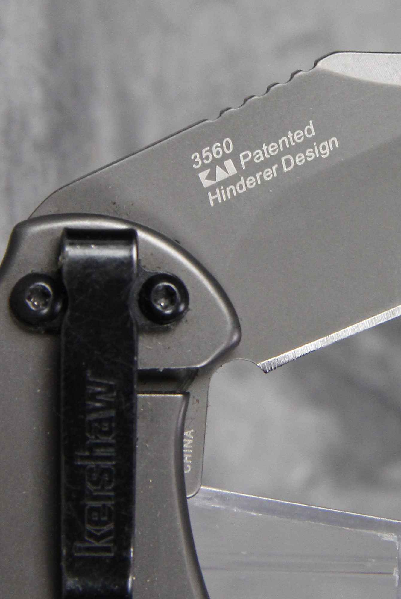 November 06, 2025 - Classic Rick Hinderer design, but built in pure 8Cr13MoV stainless steel with matte grey titanium carbo-nitride coating on both blade and handle. Opens quickly with SpeedSafe assisted opening. Built-in Flipper and thumbstud. 2-3/4 inches closed. 4-3/4 inches open. "CHINA" tang stamp. Tip up or tip down pocket clip etched "kershaw". Blade etched "kershaw SPEEDSAFE" and "3560 KAI Patented Hinderer Design".