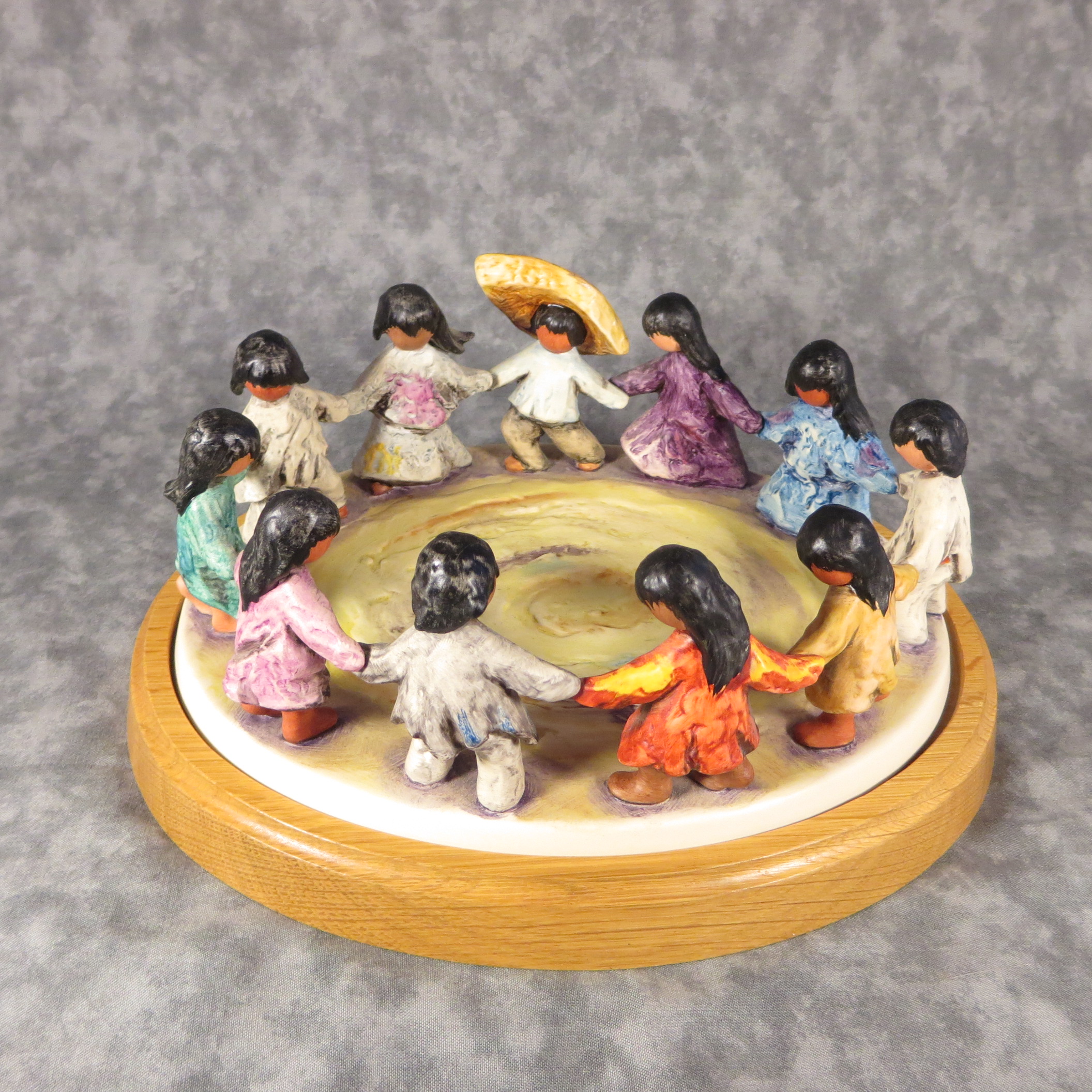 Los Niños (the children) is an example of renowned work by DeGrazia®. Created in 1960, this simplistic but evocative and colorful art expresses how uninhibited and eager Los Niños are in joining hands, exemplifying the unity desired in the world.