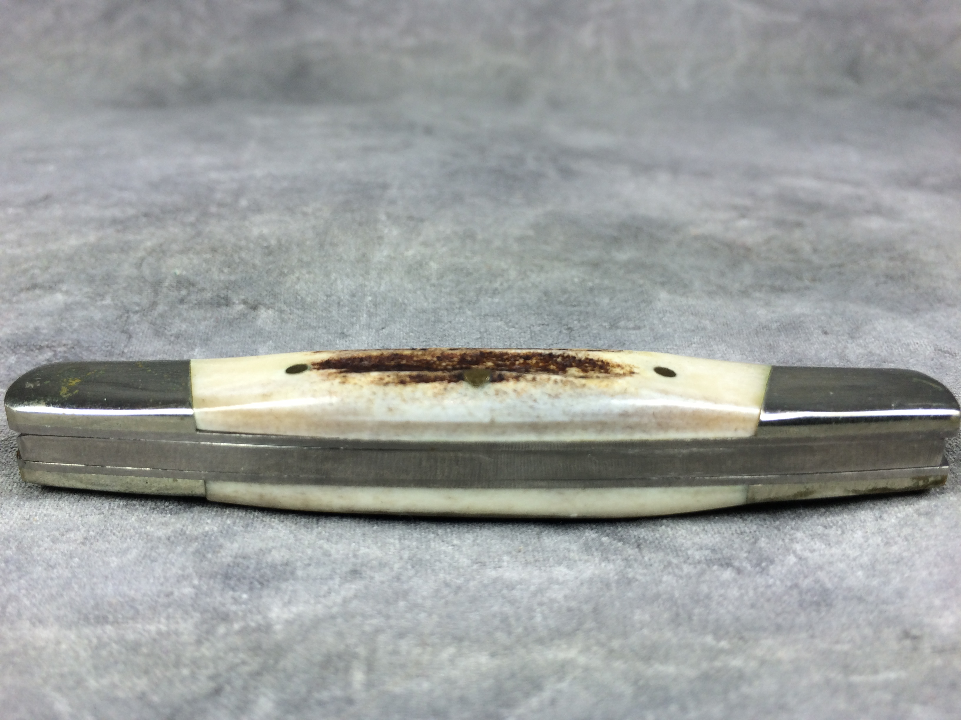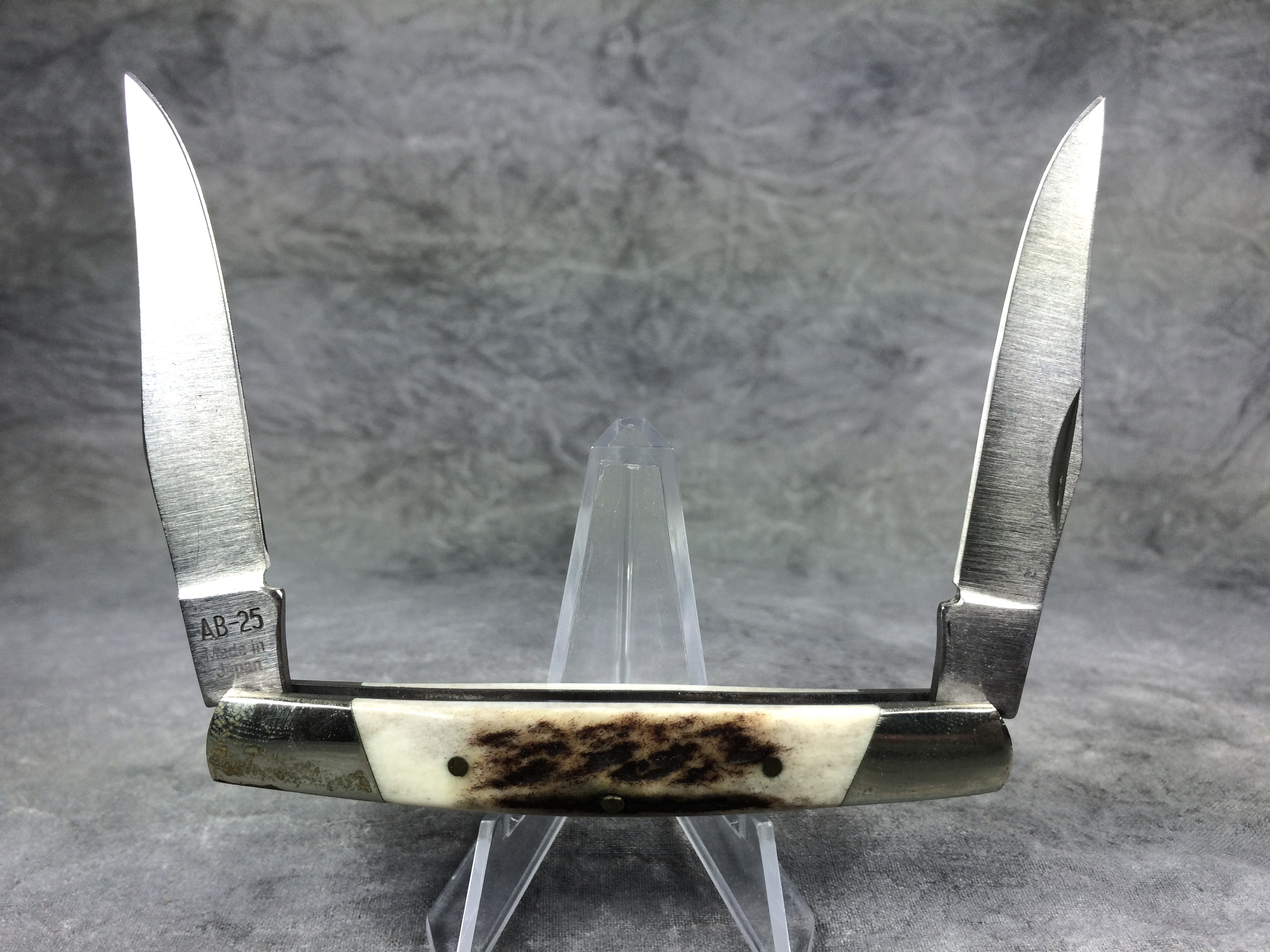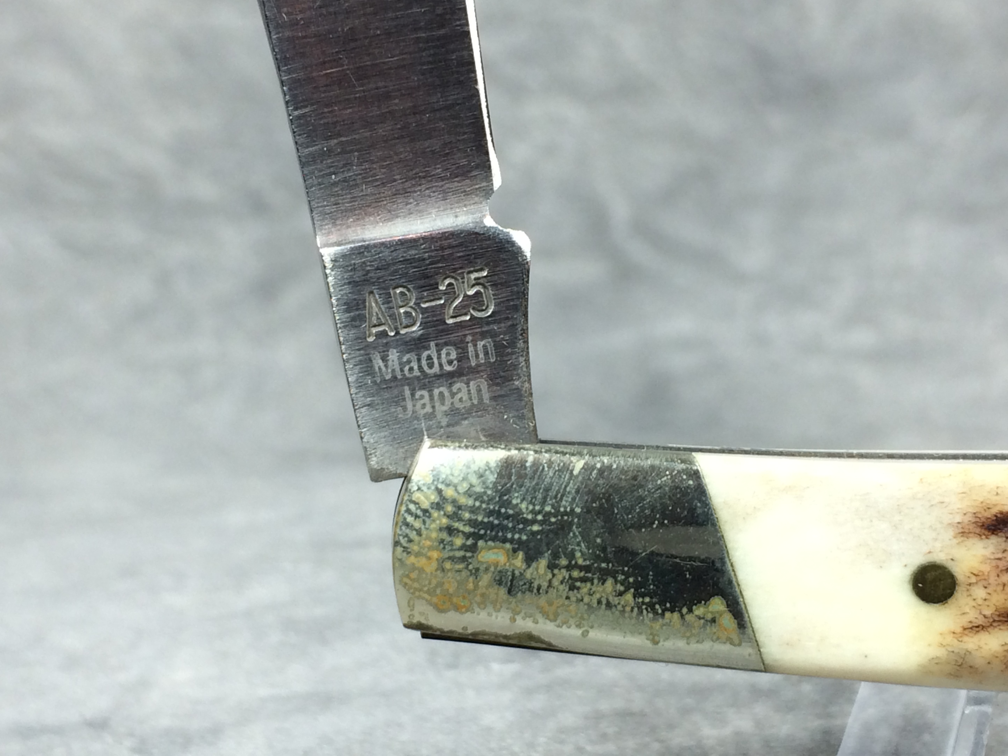 November 03, 2025 - 3-1/4 inches closed. 5-5/8 inches open. Made in Japan. "AMERICAN BLADE (R) CHATT. TN." and "AB-25 Made in Japan" tang stamp. Stag handle. Nickel Silver bolsters.