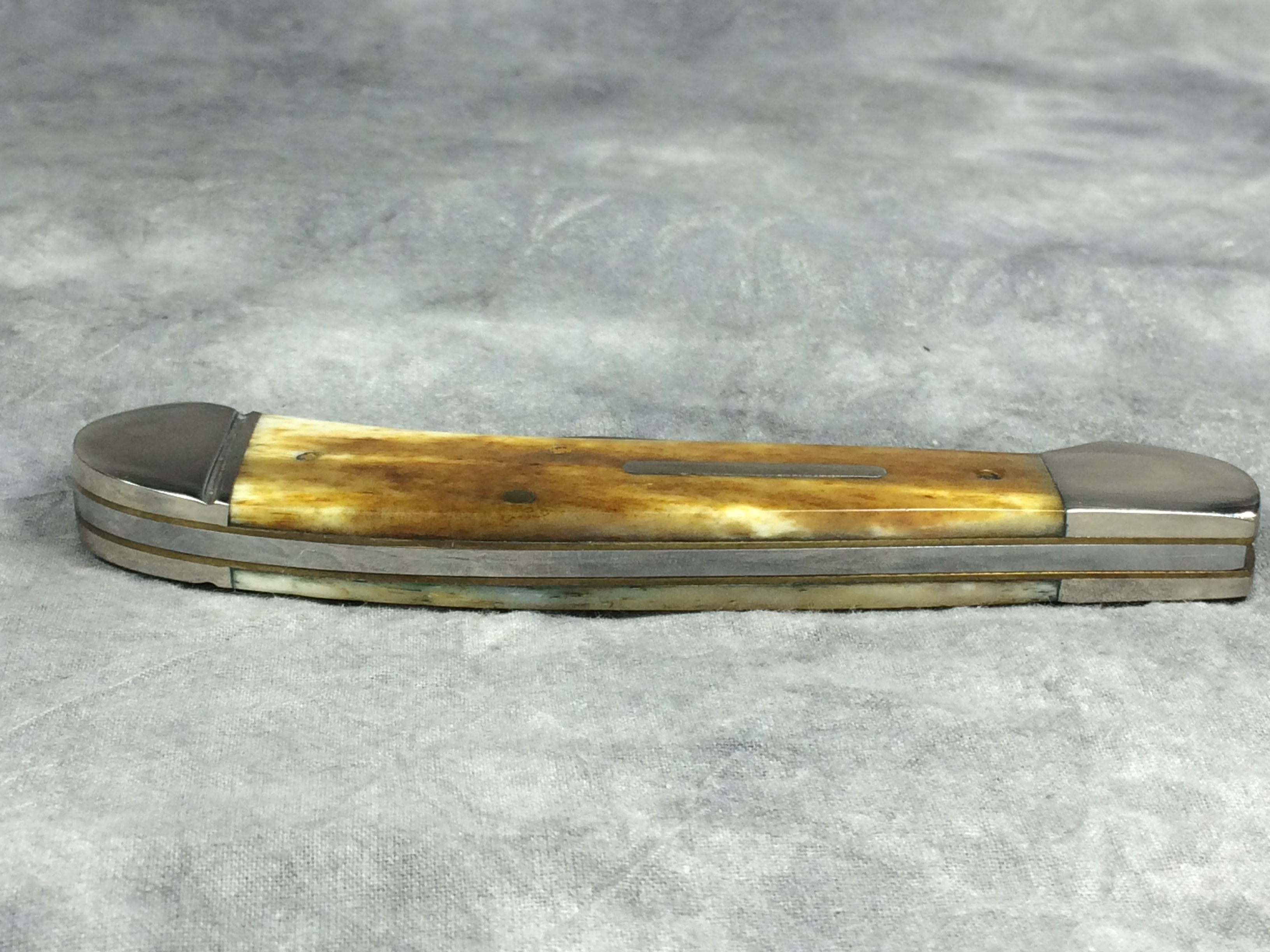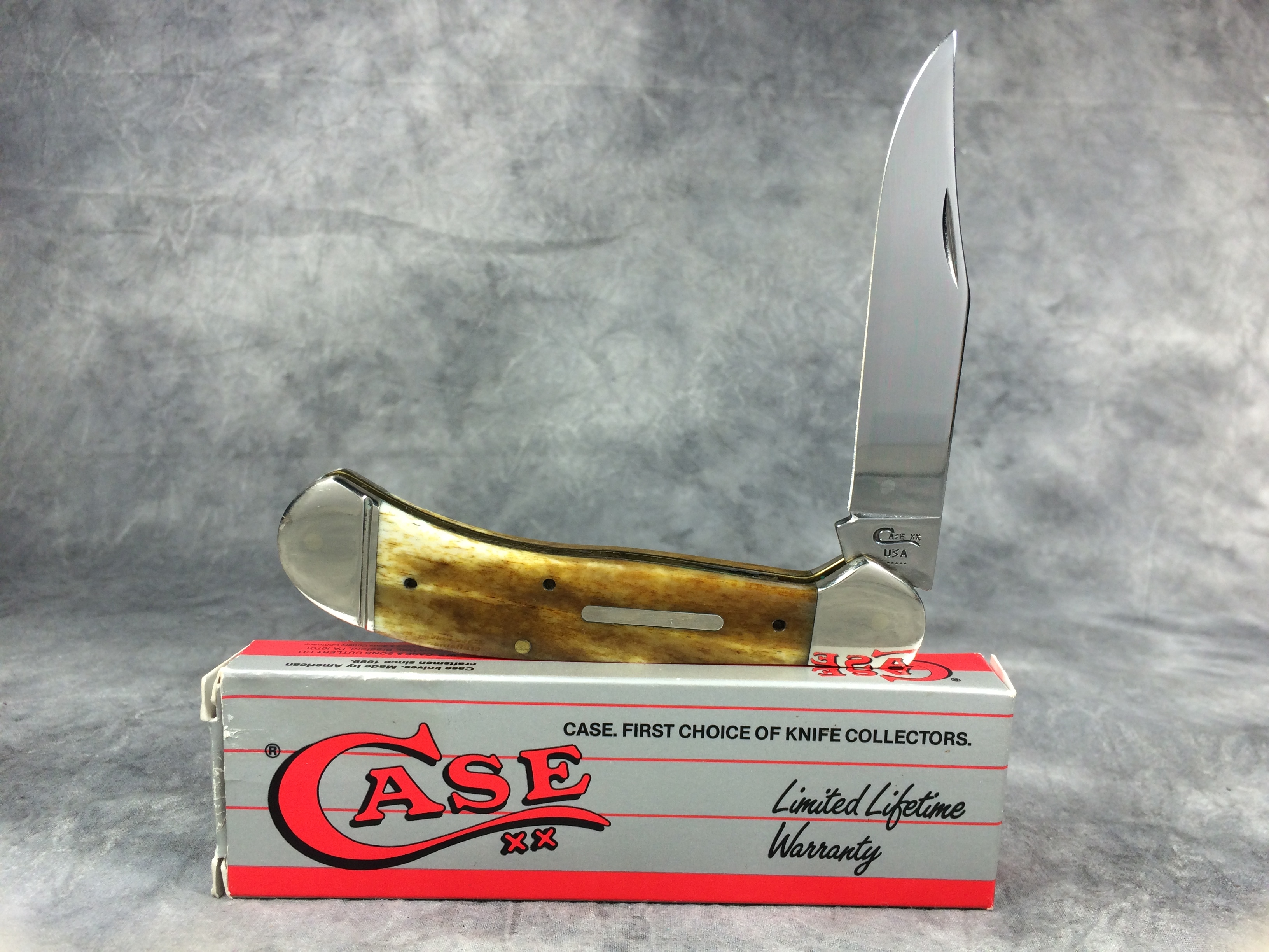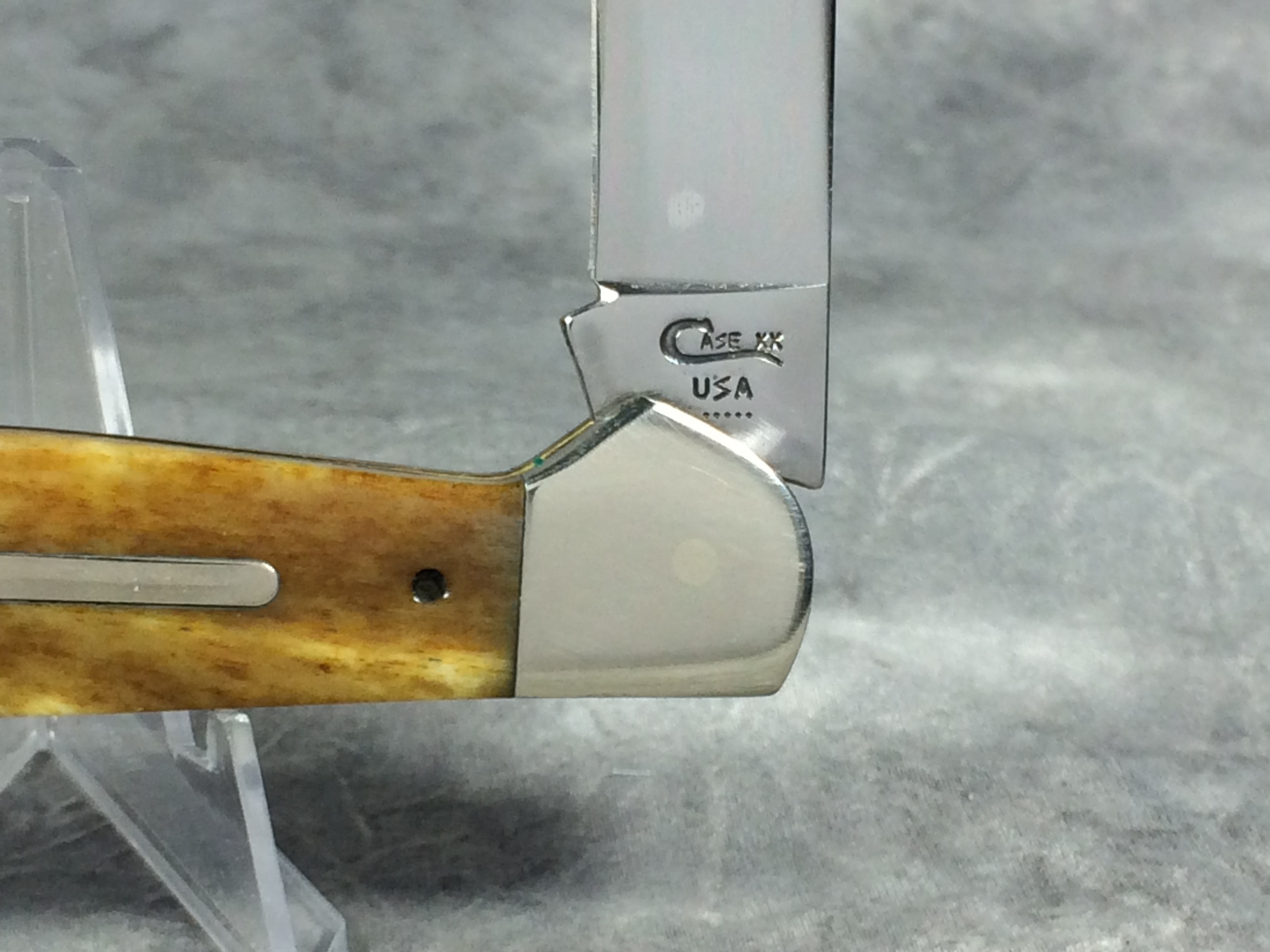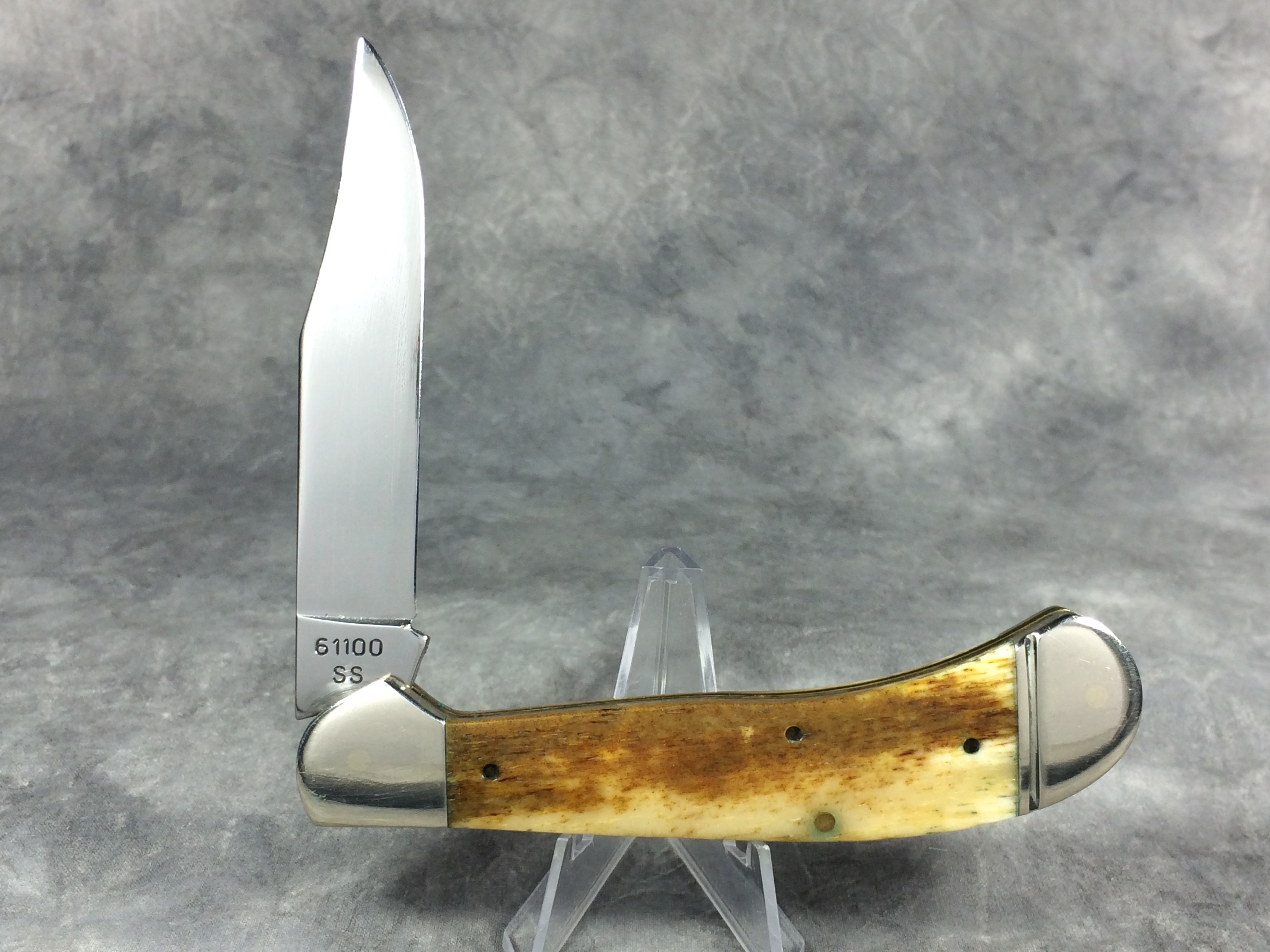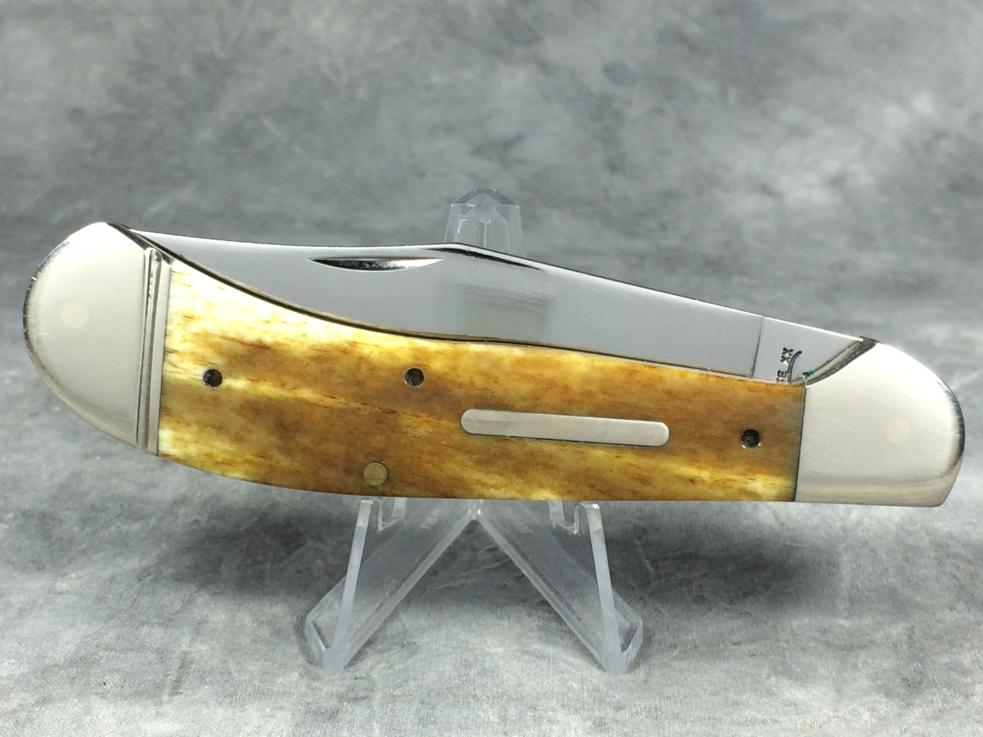 March 09, 2026 - 4-5/8 inches closed. 8-1/4 inches open. Made in USA. "Case XX USA ***** " (Long C script; 5 dot with lightning bolt S) and "61100 SS" tang stamps. Plain bar shield. Stainless Steel blades. Smooth Antique Bone handle. Nickel Silver bolsters. Brass liner.