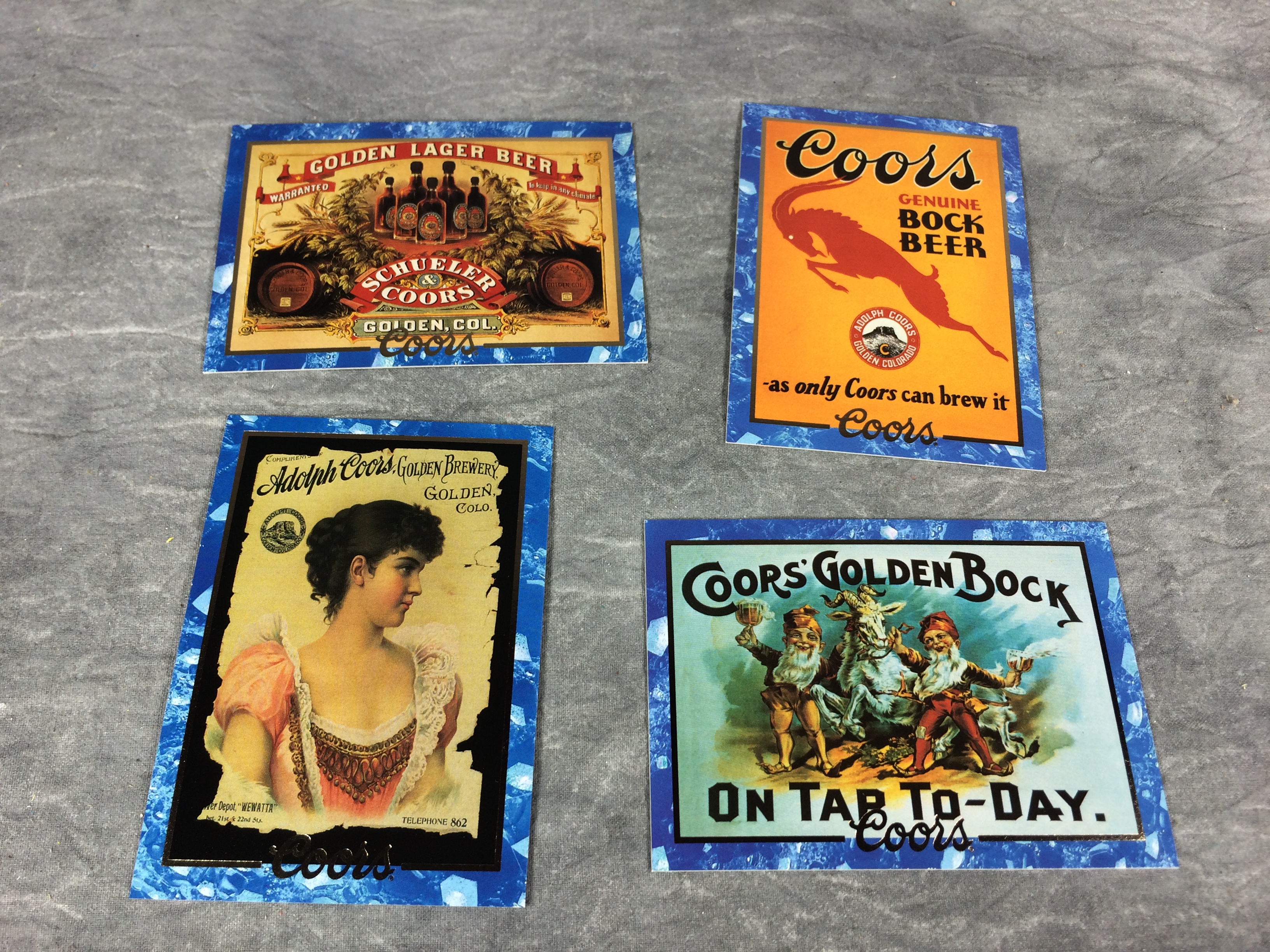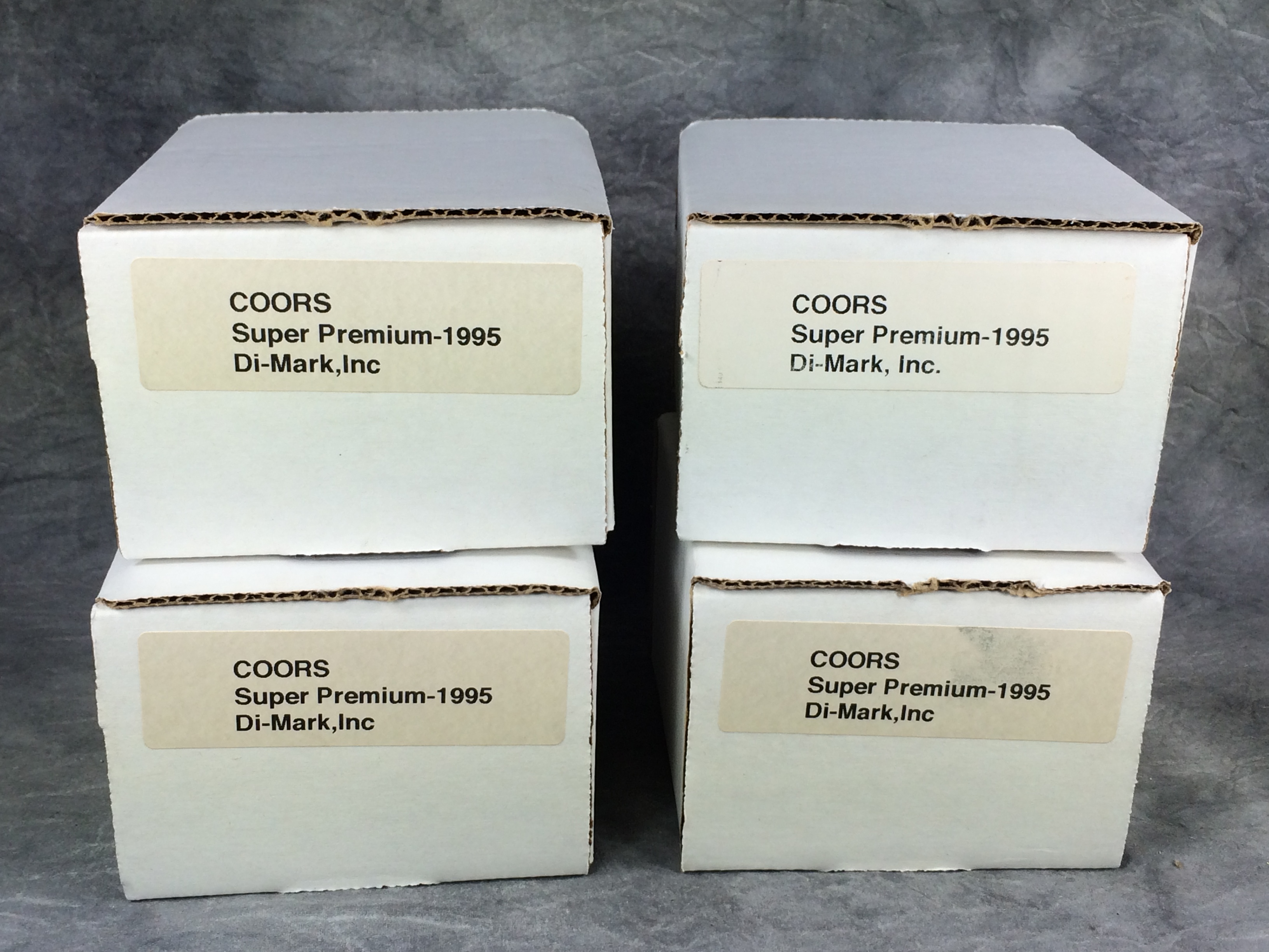 January 11, 2026 - 4 Complete Base Sets of 1995 COORS collector trading cards in individual boxes. Each set contains 100 cards. Boxes measure 4-1/2" x 4 x 3-3/4". (c) 1995 Coors Brewing Company and Di-Mark Group, Inc.