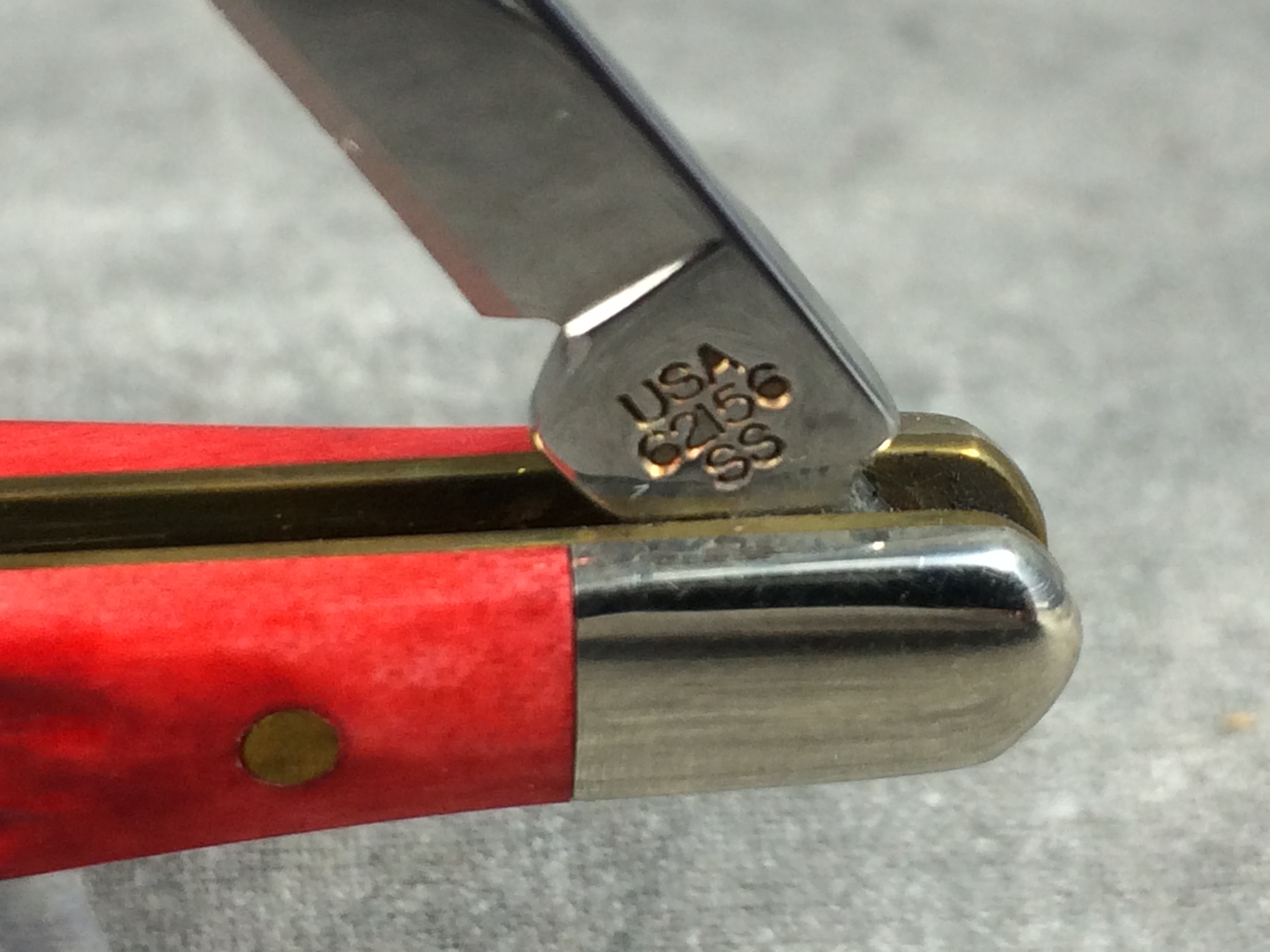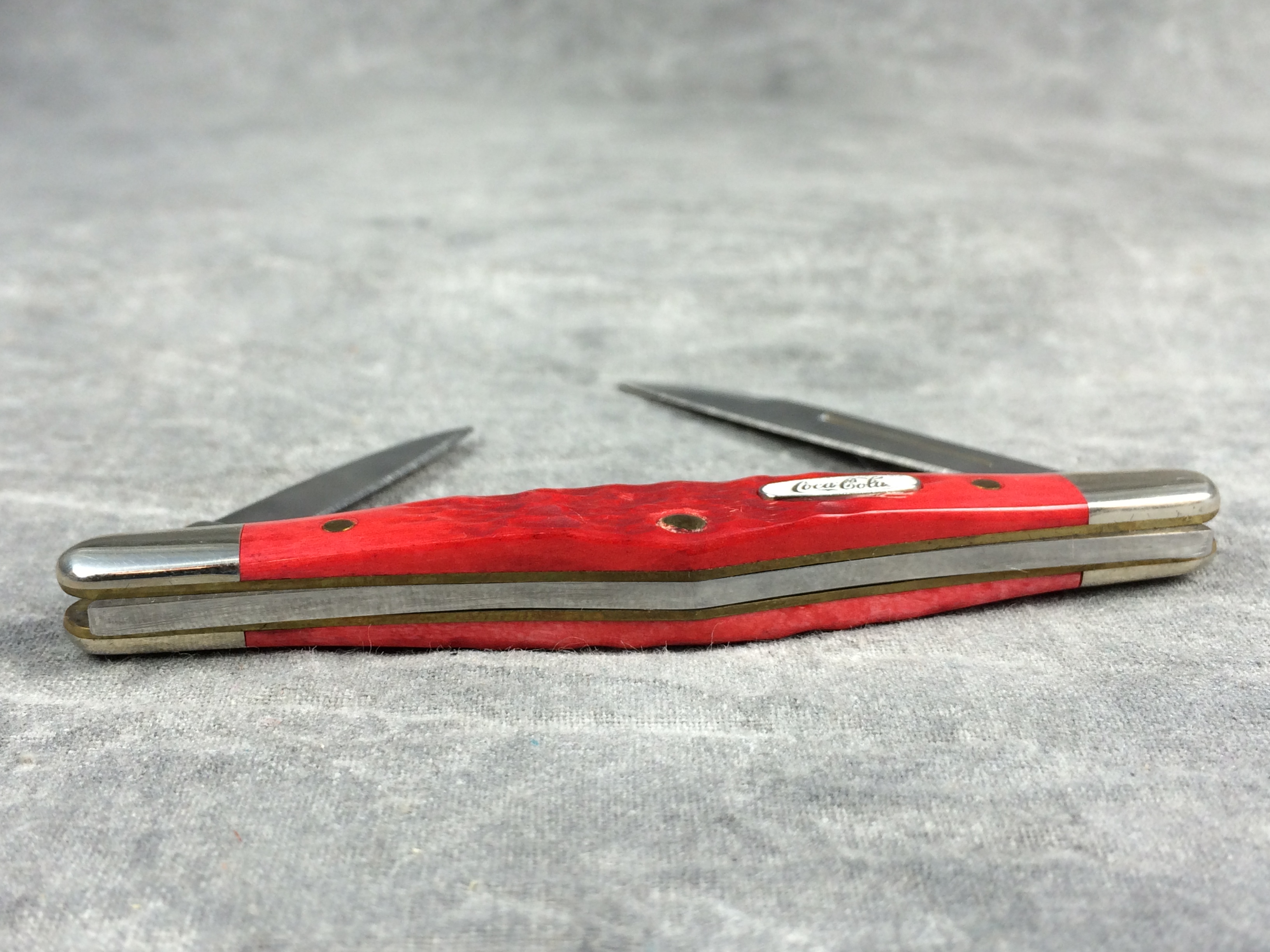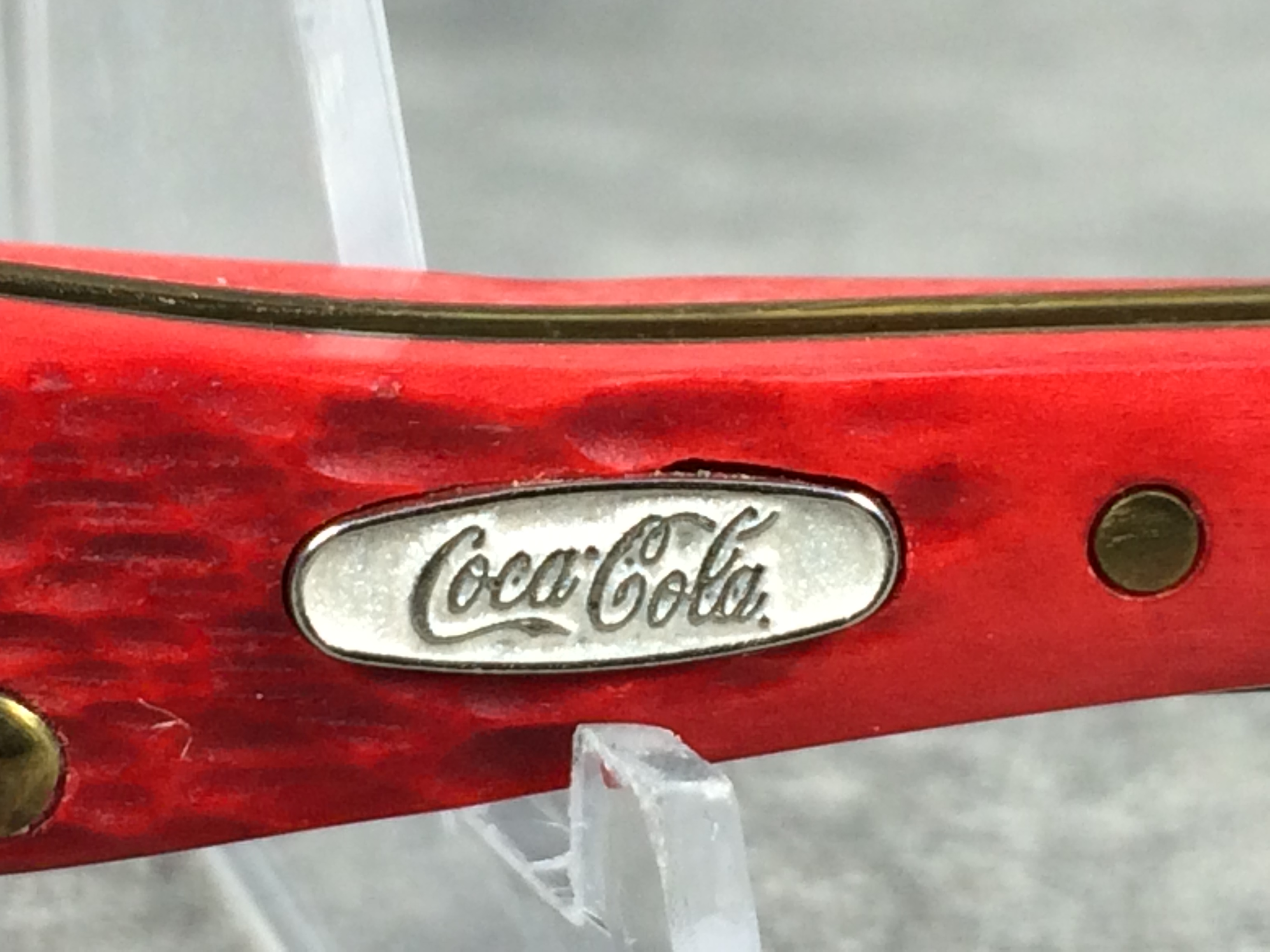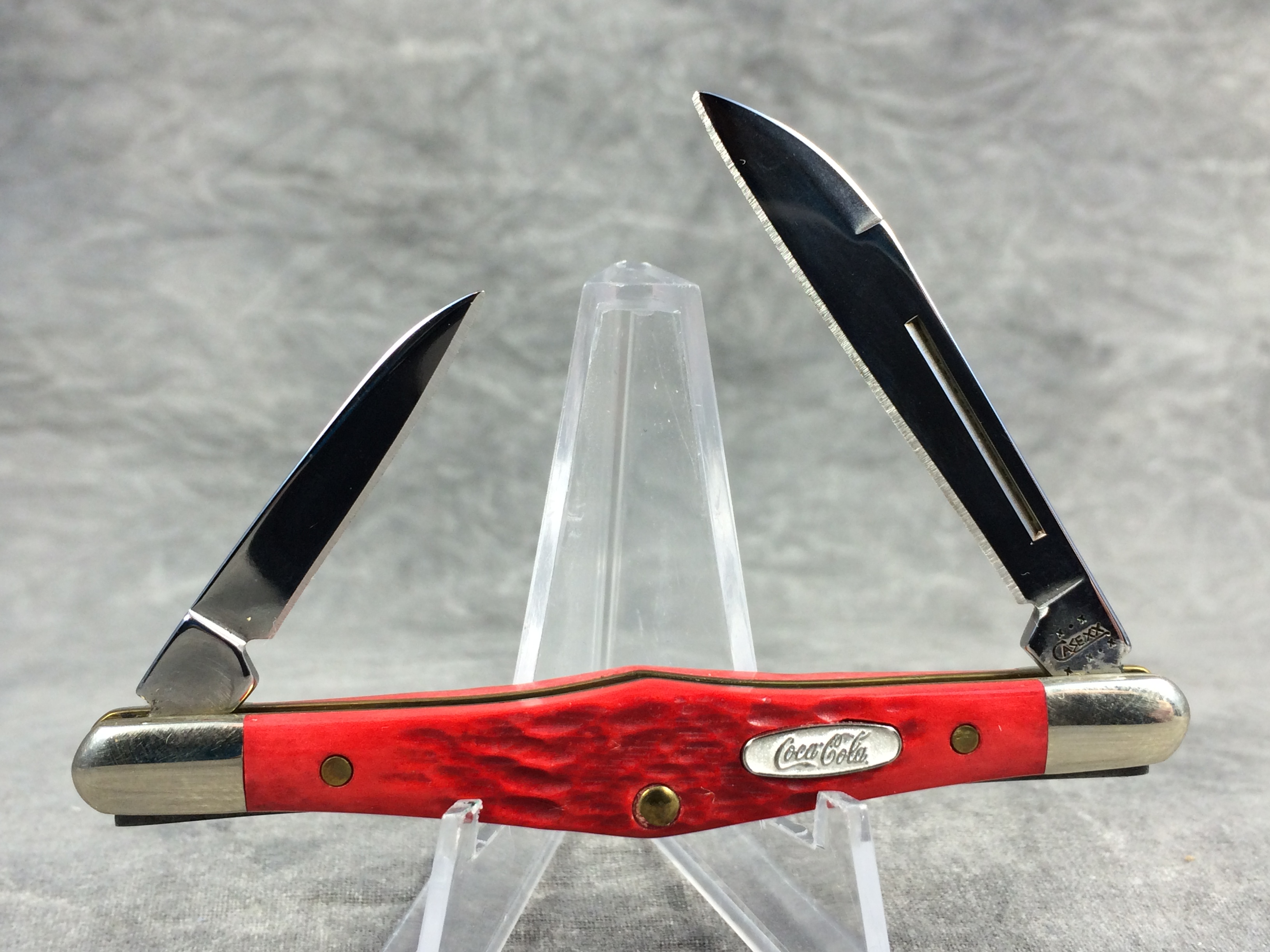 March 06, 2026 - 3-1/4 inches closed. 5-1/8 inches open. Made in USA. " x*x Case XX x x*x " (with lightning bolt S) and "USA 62156 SS" tang stamps. Oval Coca-Cola shield. Stainless Steel blades. Jiggled red bone handle. Nickel Silver bolsters. Brass liner.