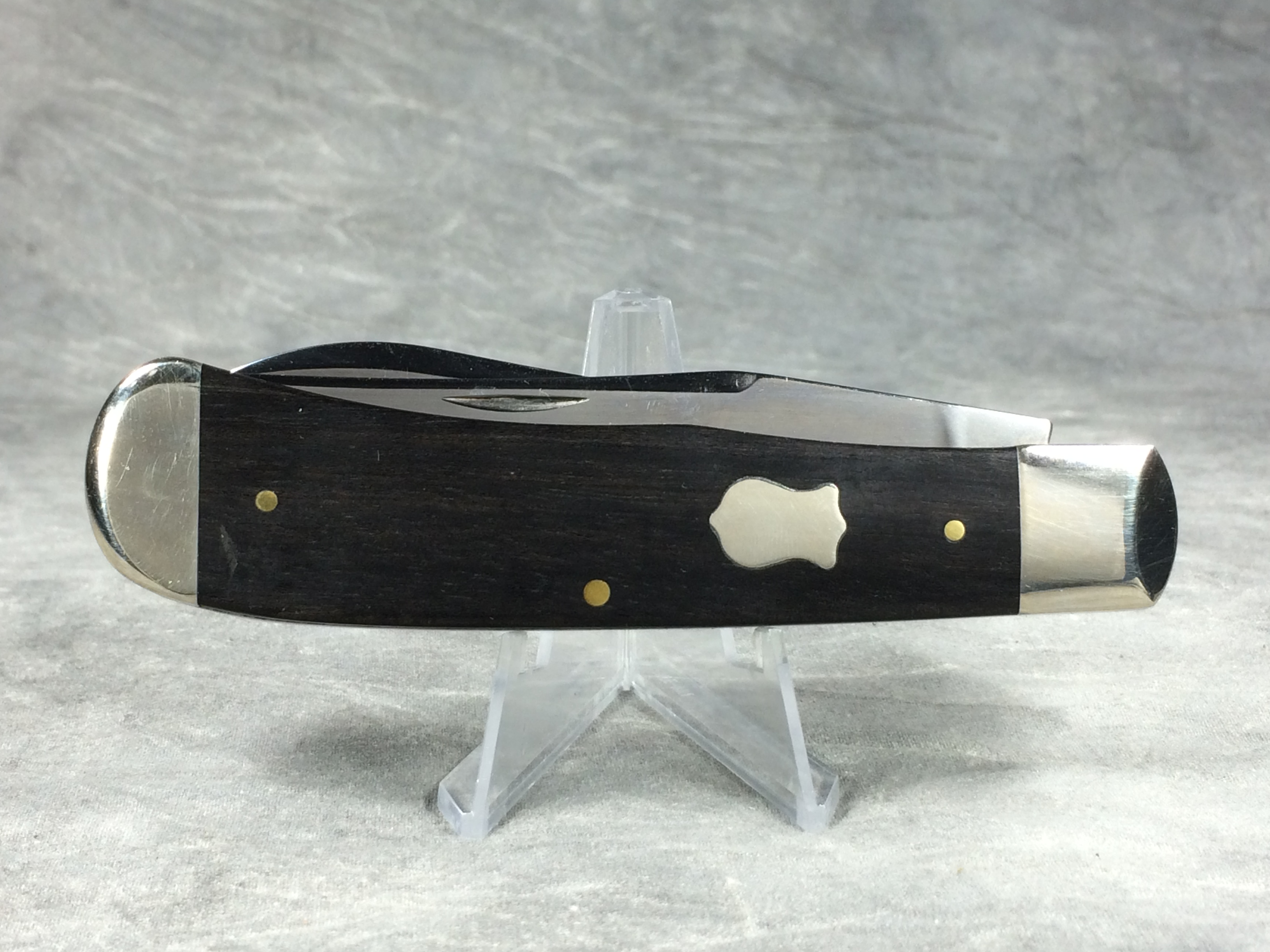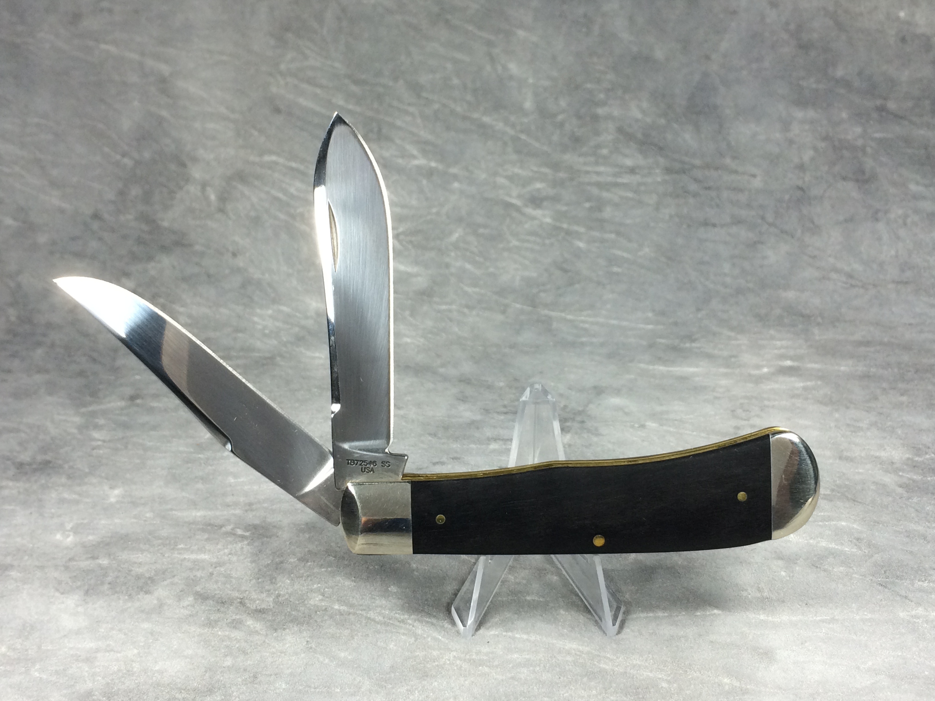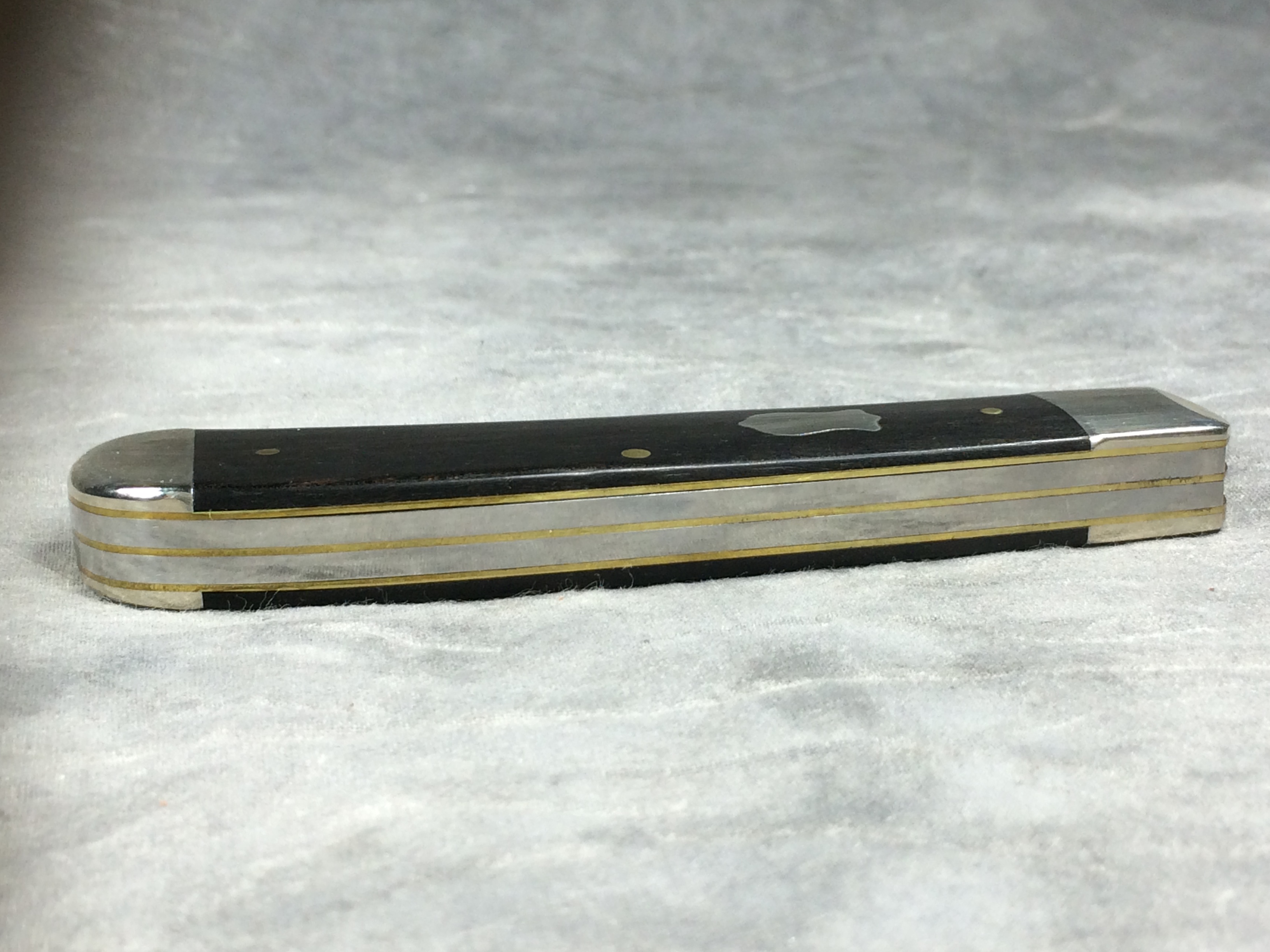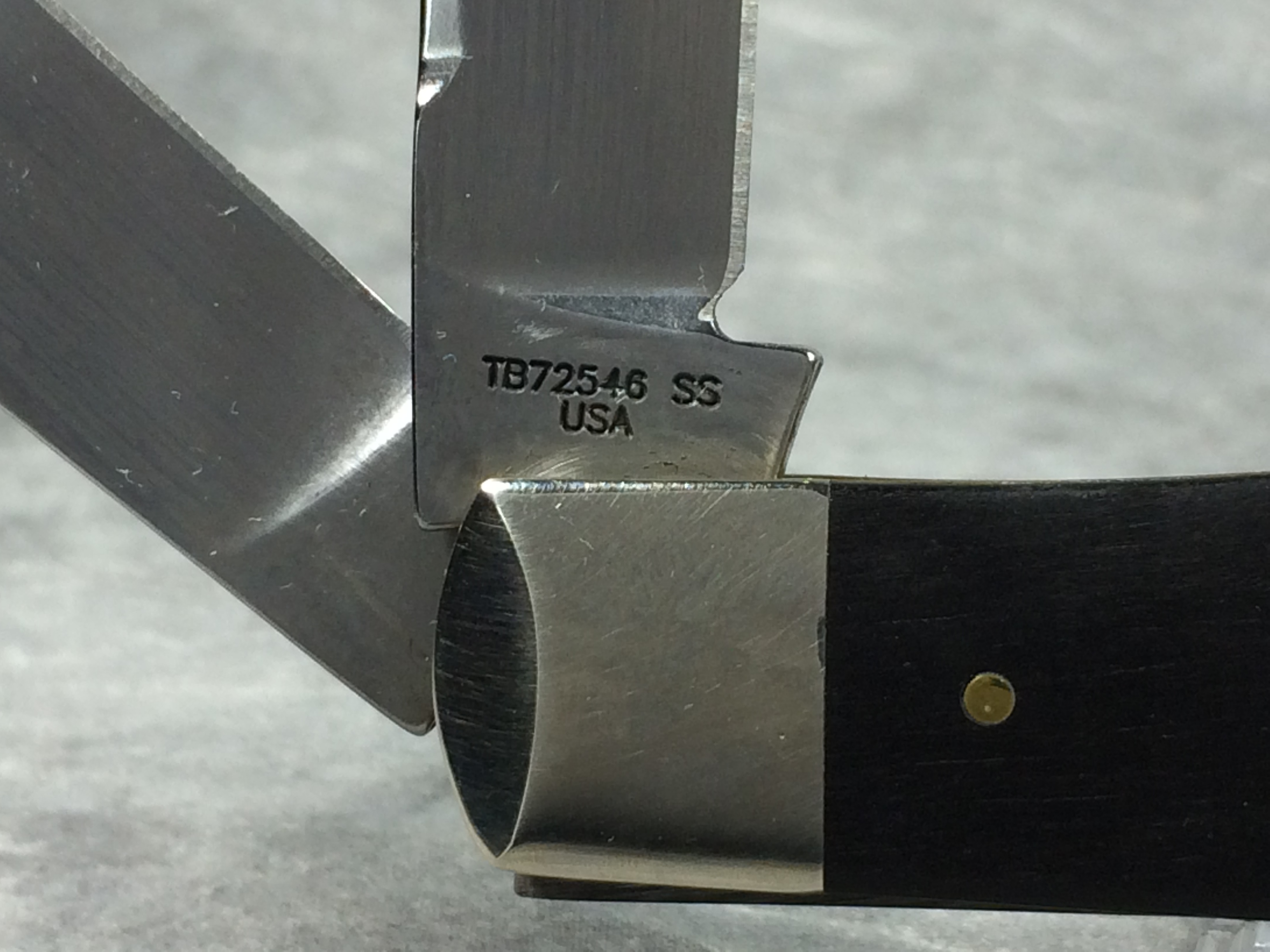 November 06, 2025 - Designed by Tony Bose. 4-5/8 inches closed. 8-1/8 inches open. Made in USA. "  x x x  CASE XX   x*x*  " (with lightning bolt S) and "TB72546 SS USA" tang stamps. Plain badge shield. Stainless steel blade. Ebony wood Panama handle. Nickel Silver bolsters. Brass liner.