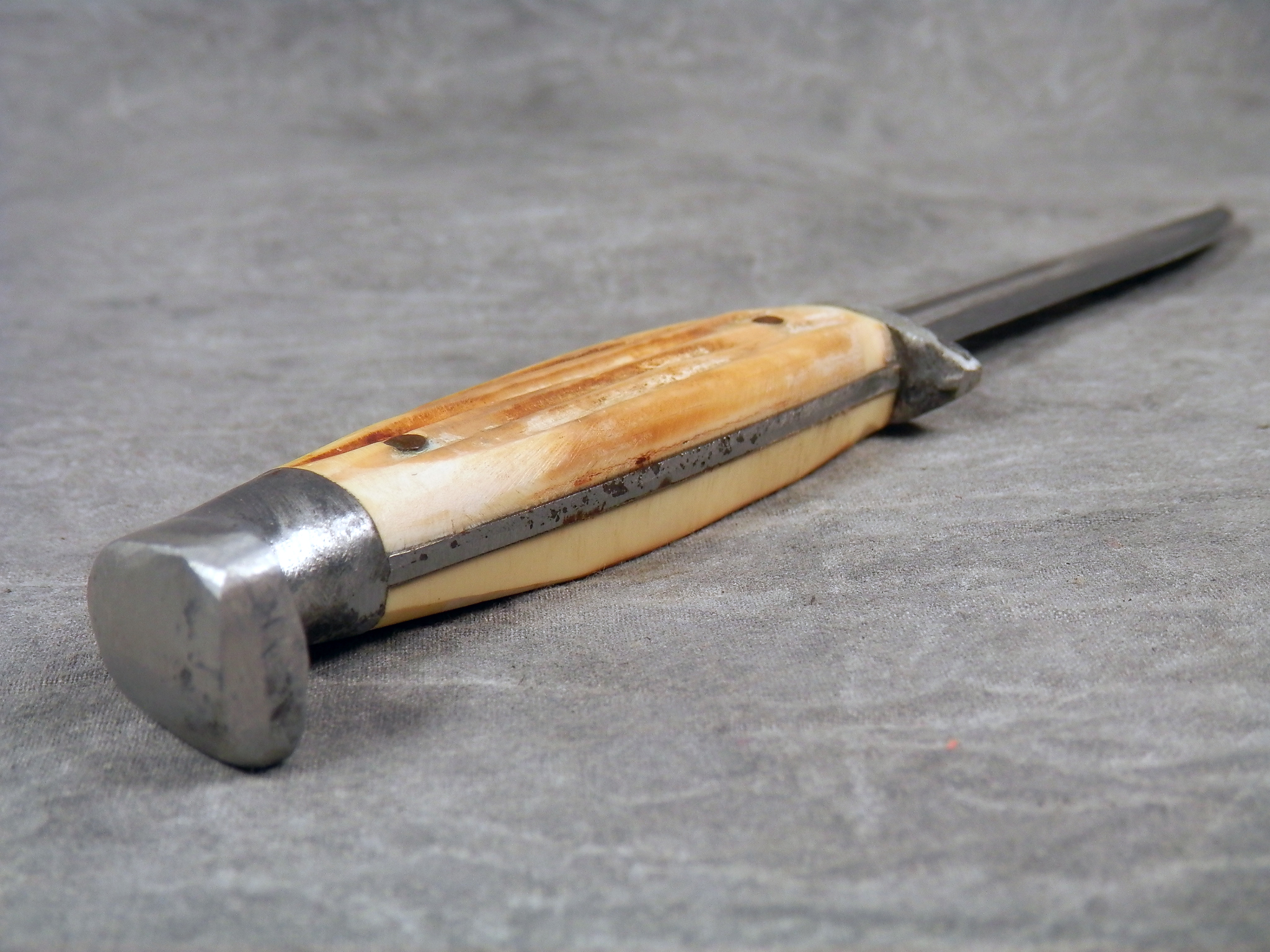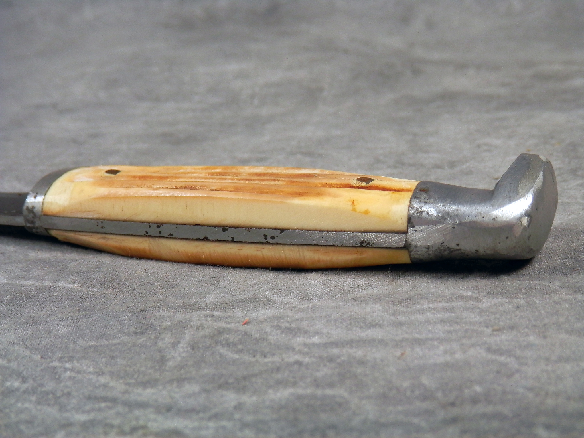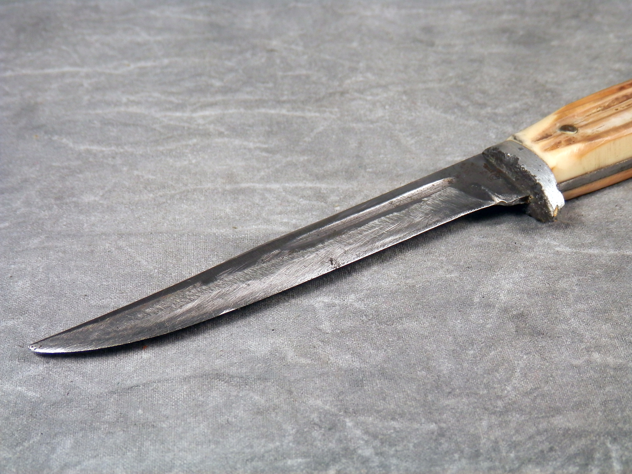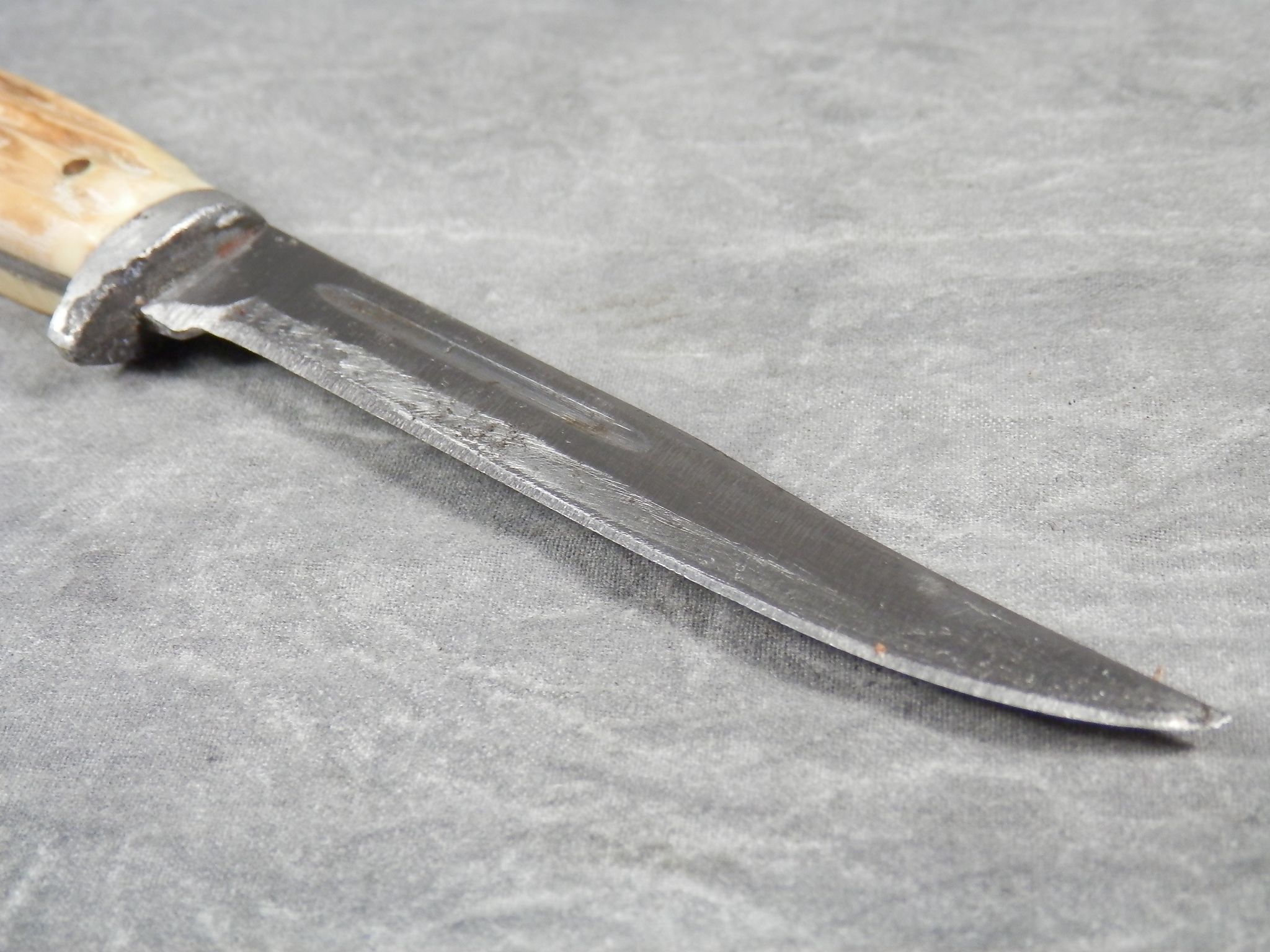 December 22, 2025 - Fixed Blade Hunting Knife. 7-3/4 inches closed Crown over Q Queen Logo and "STEEL" tang stamp. With leather sheath.