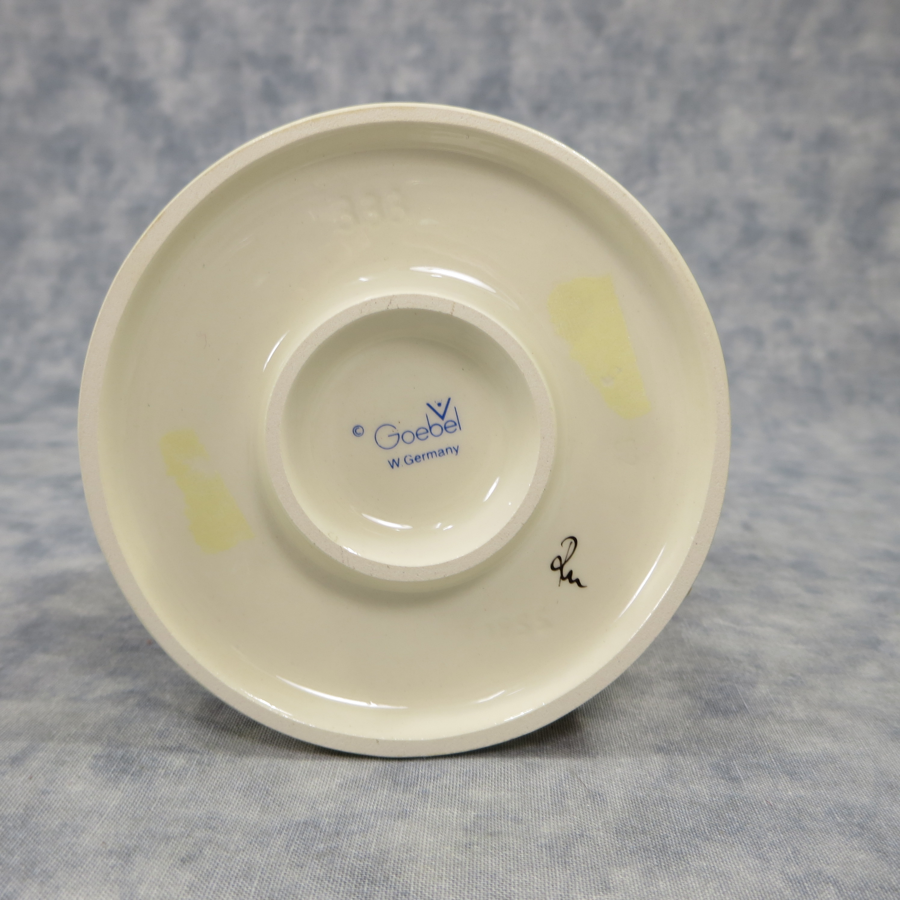 April 19, 2026 - 5-1/4 inches tall. Base is incised 333 and 1955. Goebel TMK 5 trademark imprinted in blue on bottom of base. Painter hand-initialed in black ink on bottom of base.