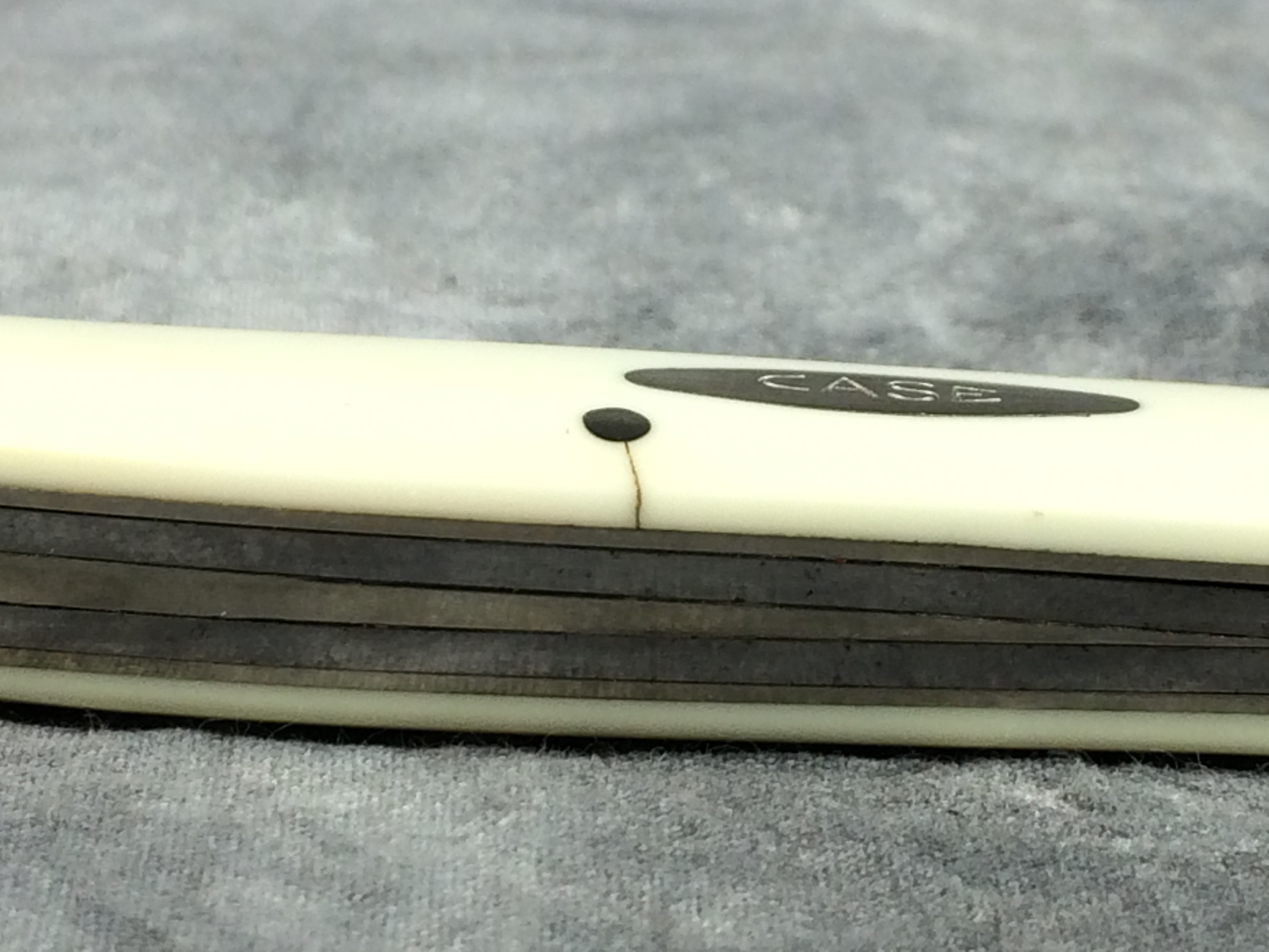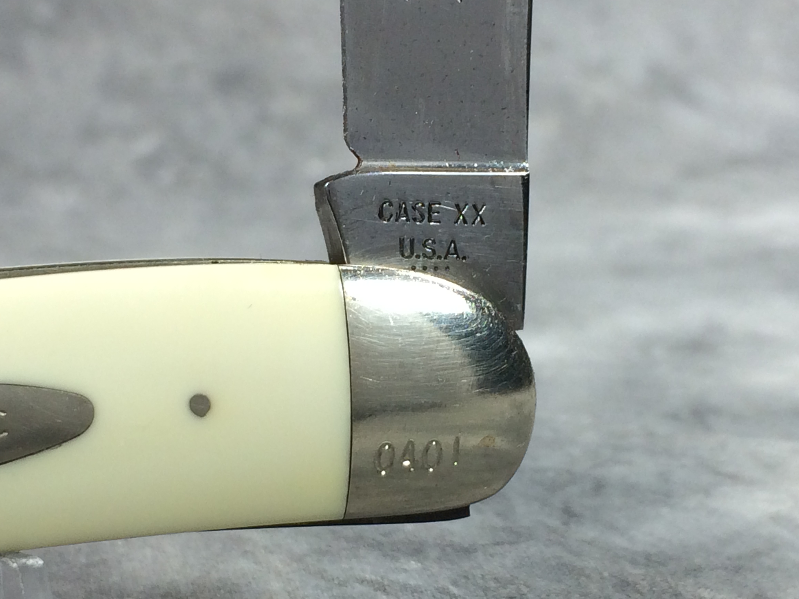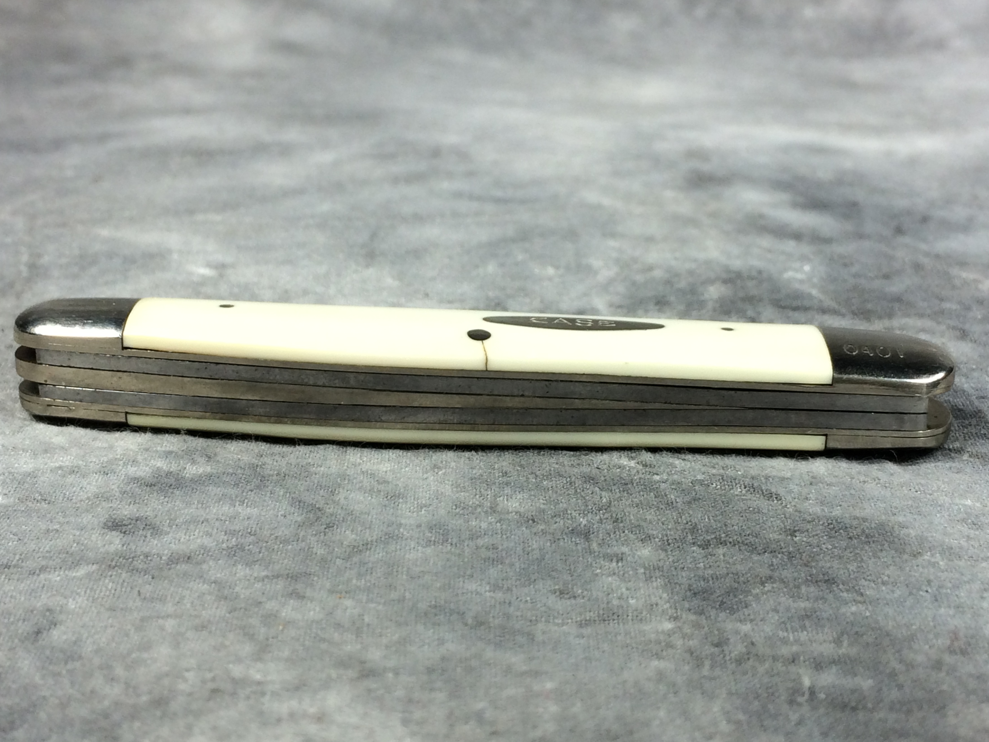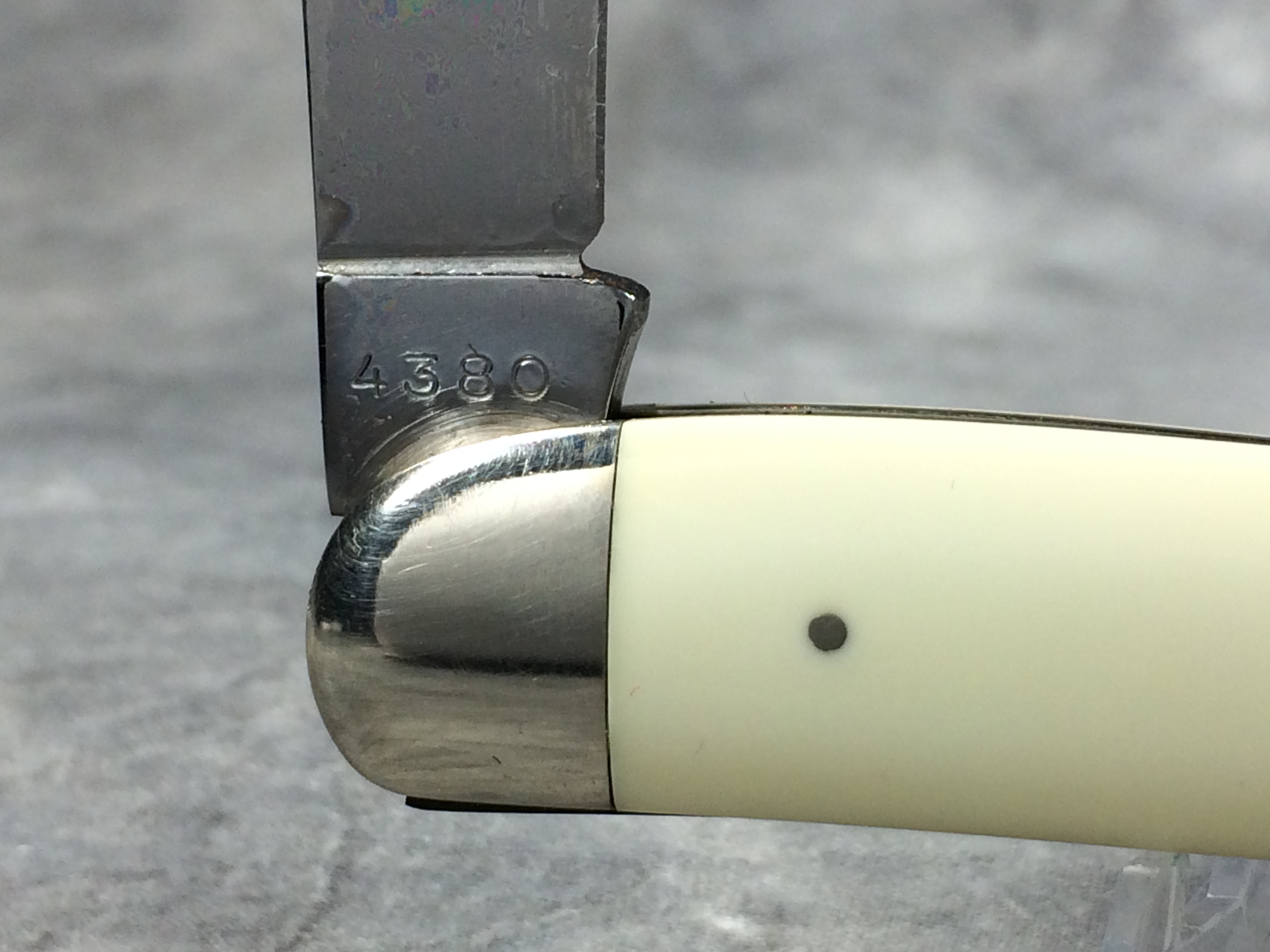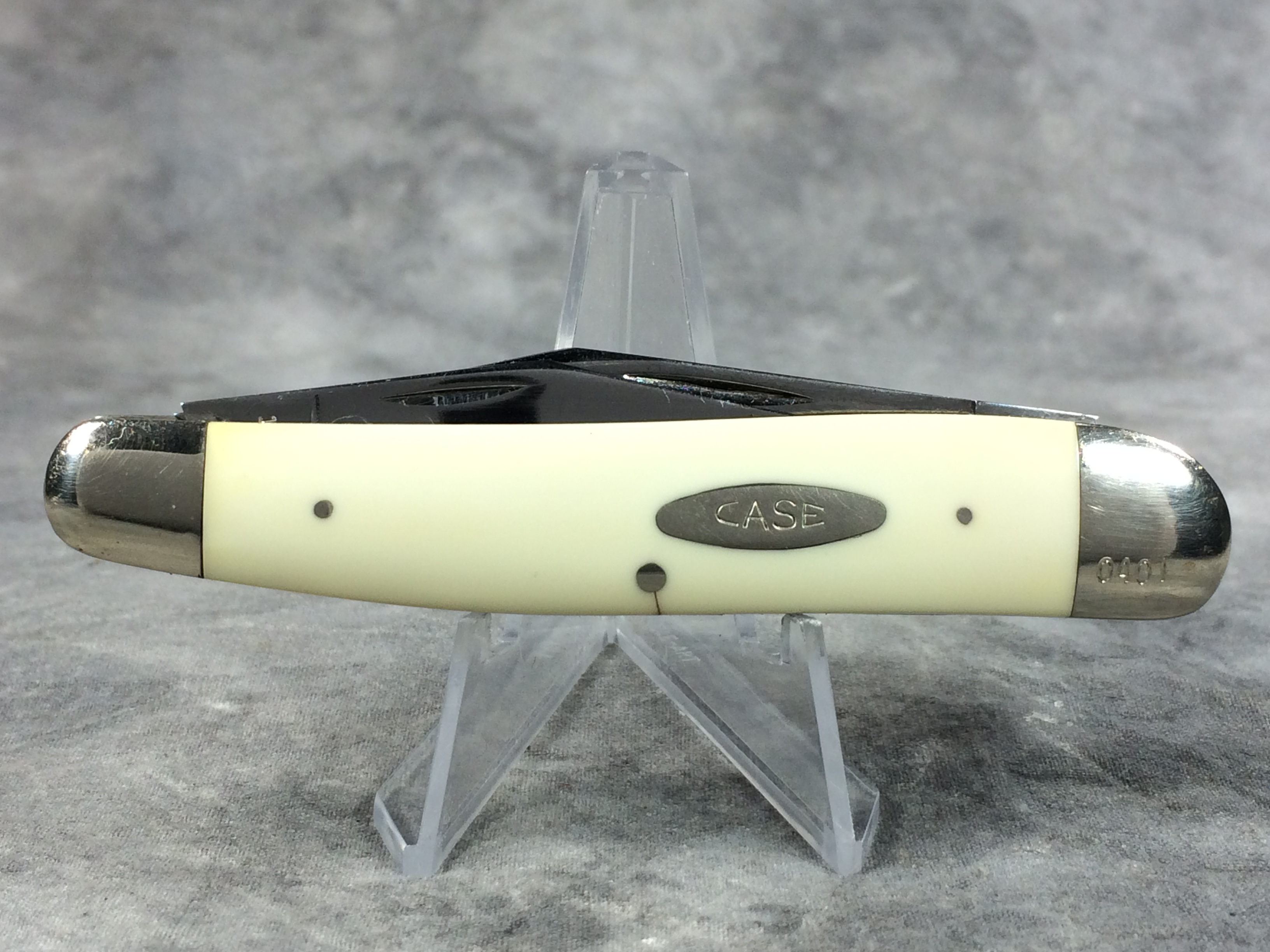 November 03, 2025 - Limited Edition. 3-3/4 inches closed. 6-5/8 inches open. Made in USA. "CASE XX USA **** " (4 dot) and "4380" tang stamps. Single oval open C "CASE" shield. Chrome vanadium blades. Master blade etched "NATIONAL KNIFE COLLECTORS - 1976" and with the image of an eagle holding a banner that reads "ONE OF 3000". Smooth white composition handle. Nickel Silver bolsters and liner. Front right bolster etched with serial .