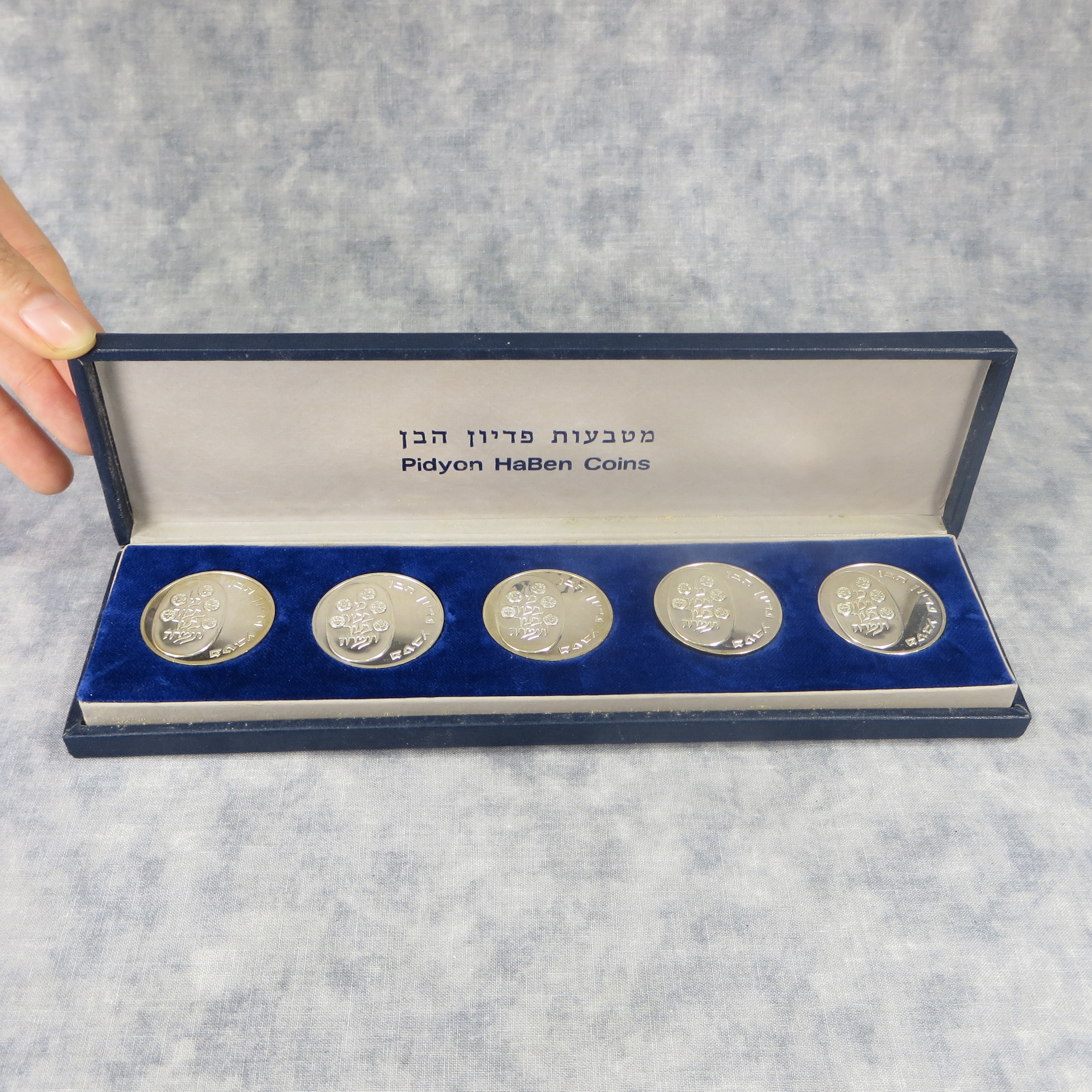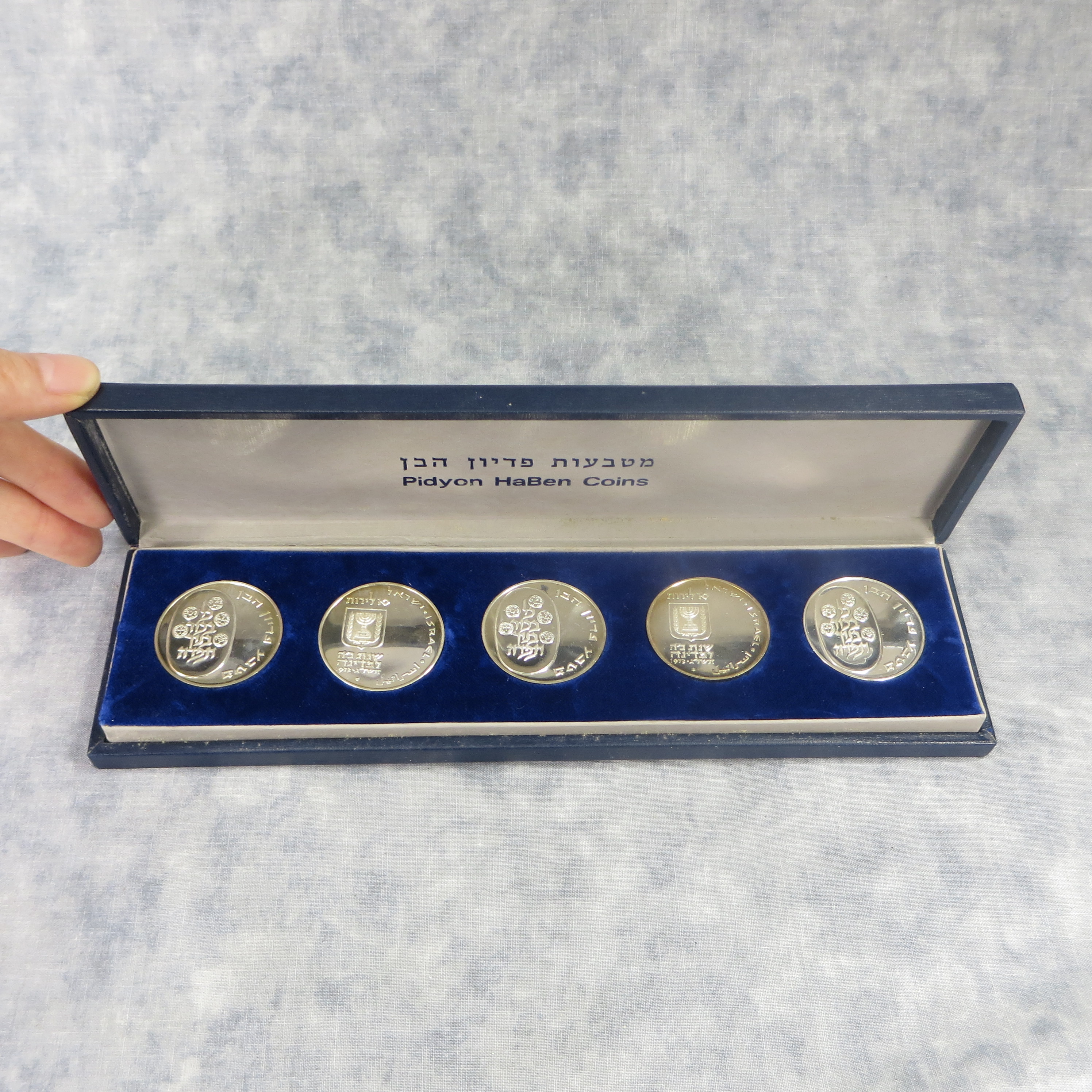 You have: ISRAEL Pidyon HaBen 5 Coins .900 Silver Proof Set (Jerusalem Government Bank,1973)