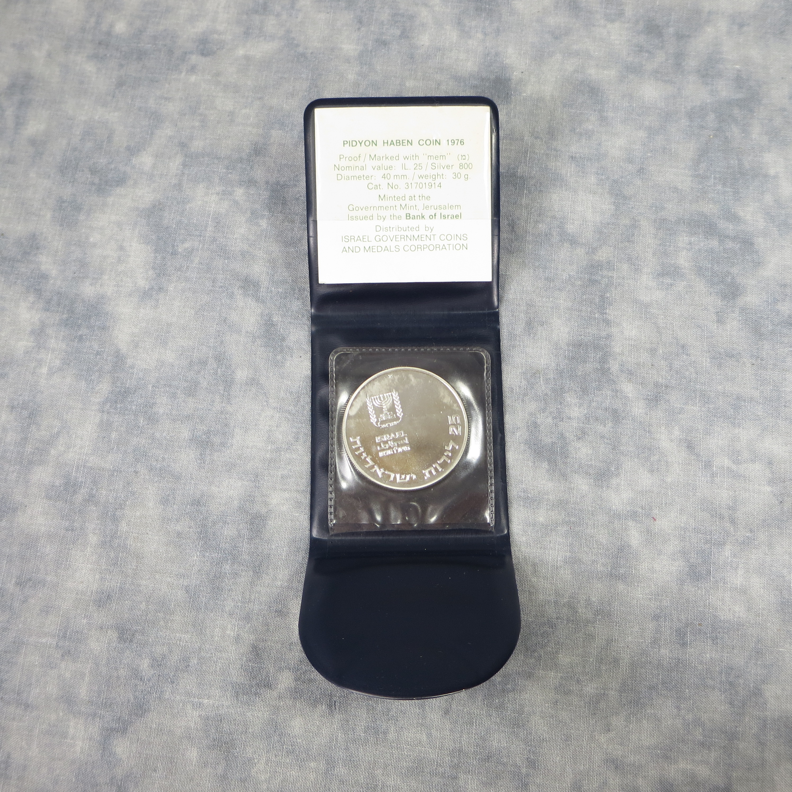 You have: ISRAEL 25 Lirot Pidyon Haben Proof Coin (Jerusalem Government Mint, 1976)