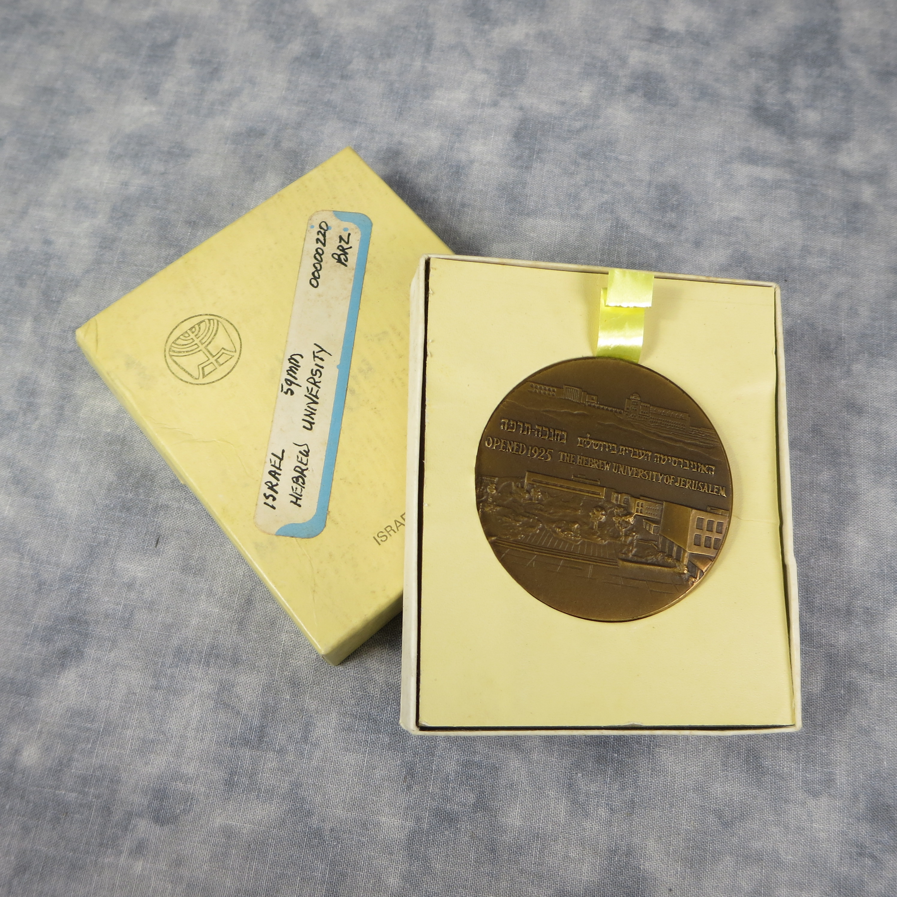 The Hebrew University in Jerusalem was the first to be established in Palestine. The inauguration ceremony took place on the 7th of Nissan 5685, April 1st, 1925 in the amphitheatre on Mount Scopus. On the University's 40th year, a special medal was minted to be awarded to the University staff and to guest dignitaries.