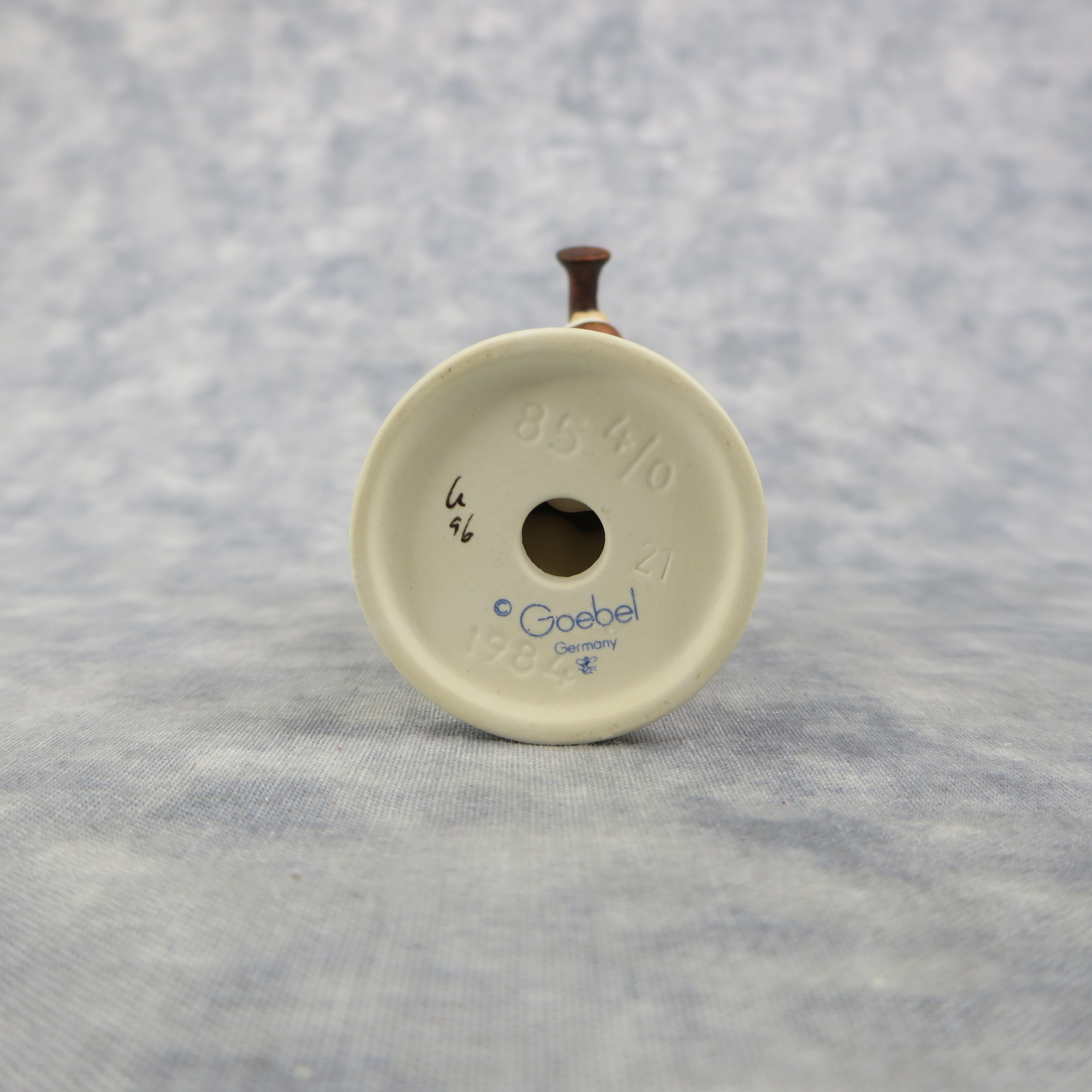 January 16, 2026 - 3 inches tall. Base is incised 85 4/0 and 1984. Goebel TMK 7 trademark imprinted in blue on bottom of base. Painter hand-initialed and dated in black ink on bottom of base.