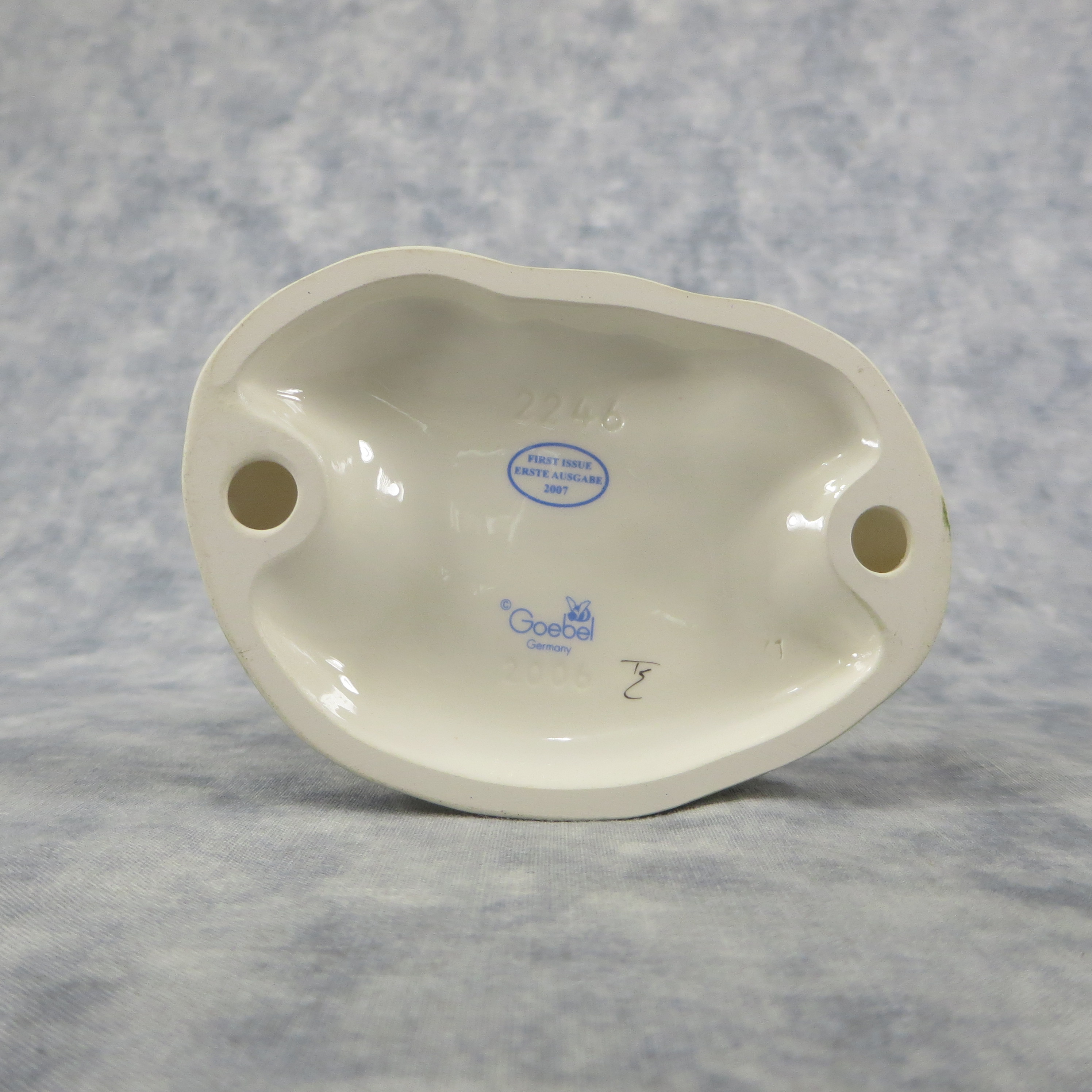 January 18, 2026 - 4 inches tall by 4-1/4 inches wide at base. Base is incised 2246 and 2006. Goebel TMK 8 trademark and 'First Issue 2007' imprinted in blue on bottom of base. Painter hand-initialed in black ink on bottom of base.