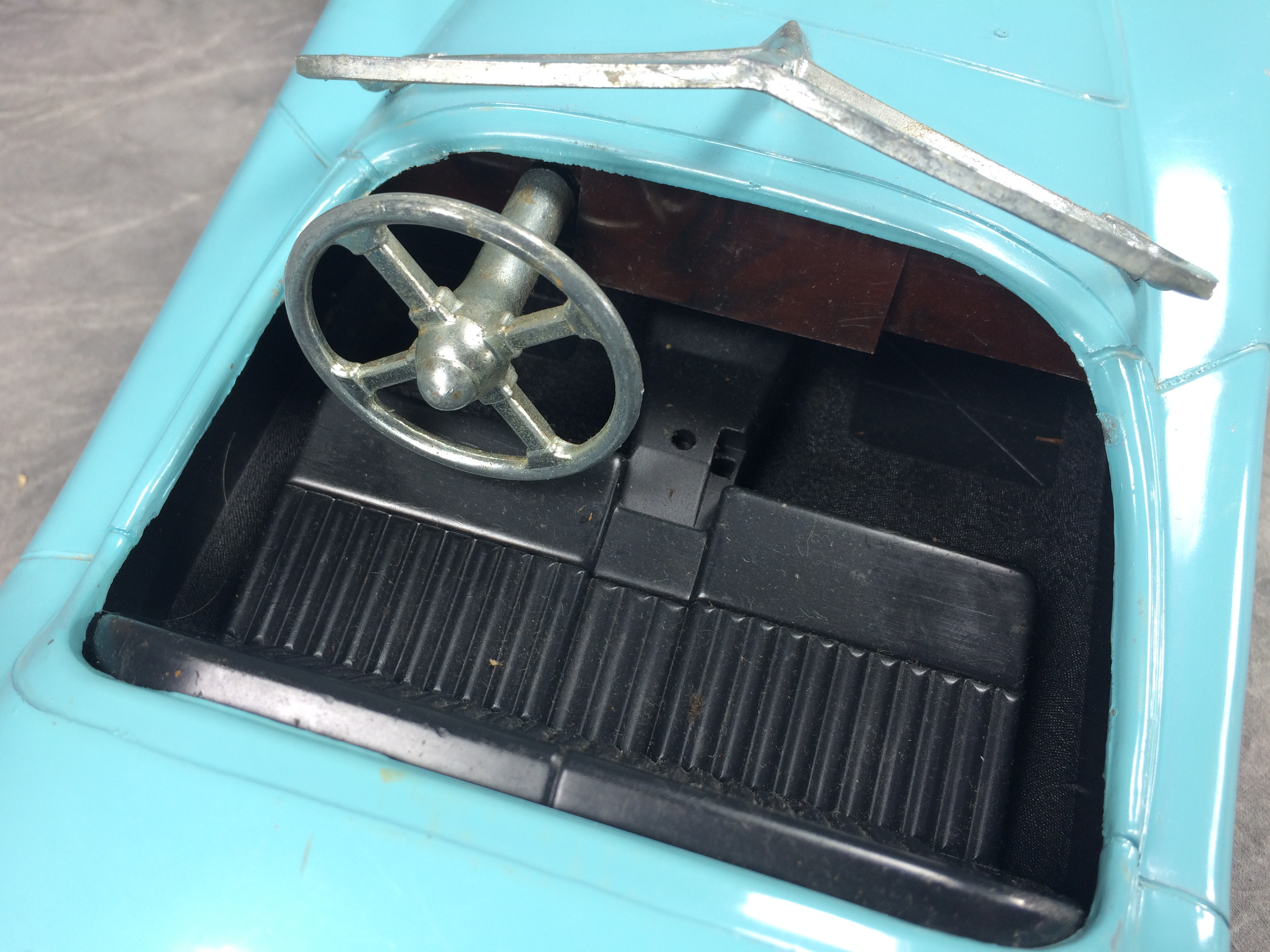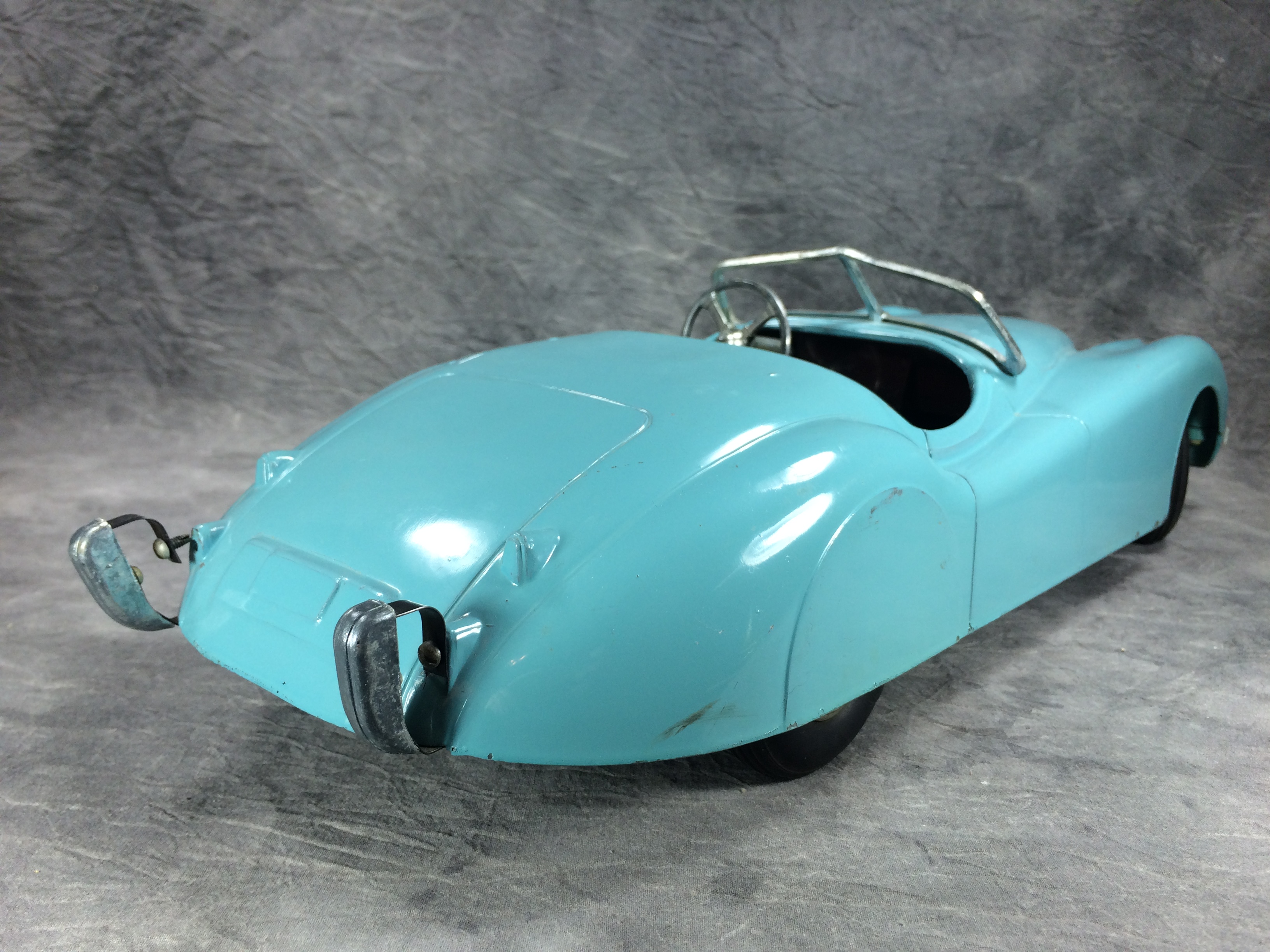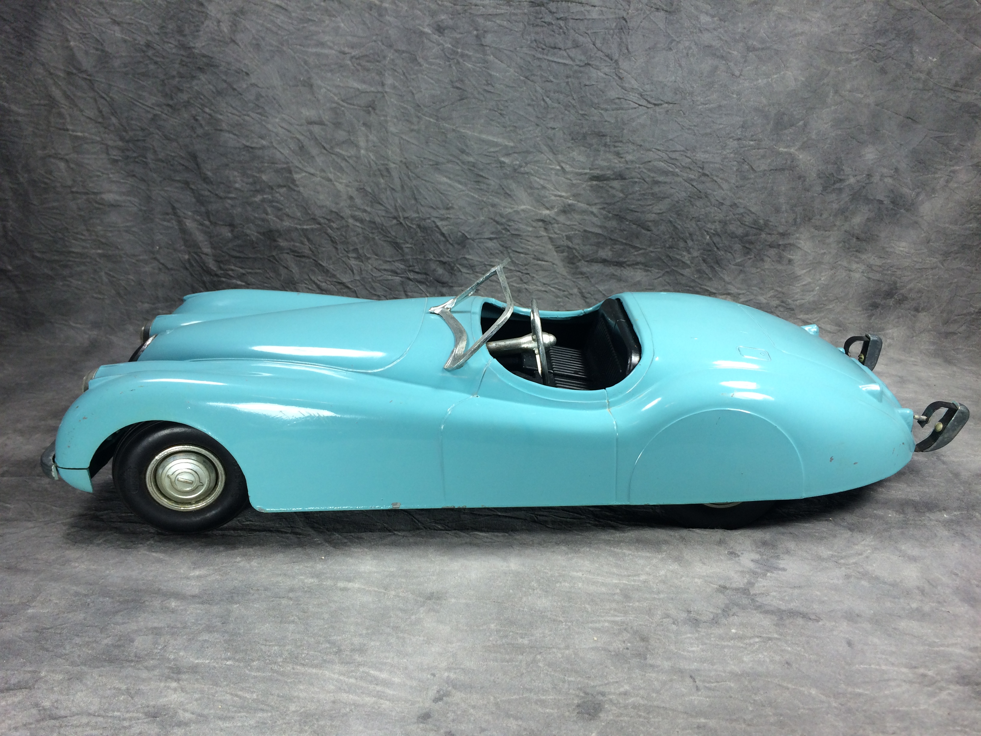 December 29, 2025 - 1950s DOEPKE Model Toys JAGUAR XK-120 Convertible Race Car, 18 inches in length.