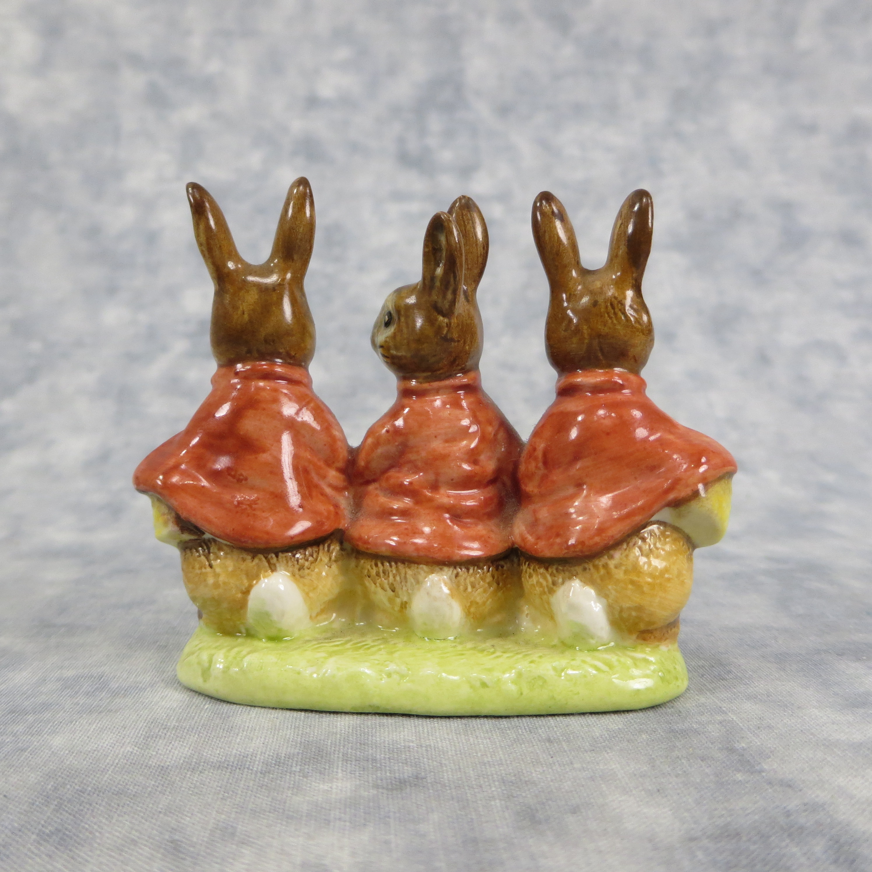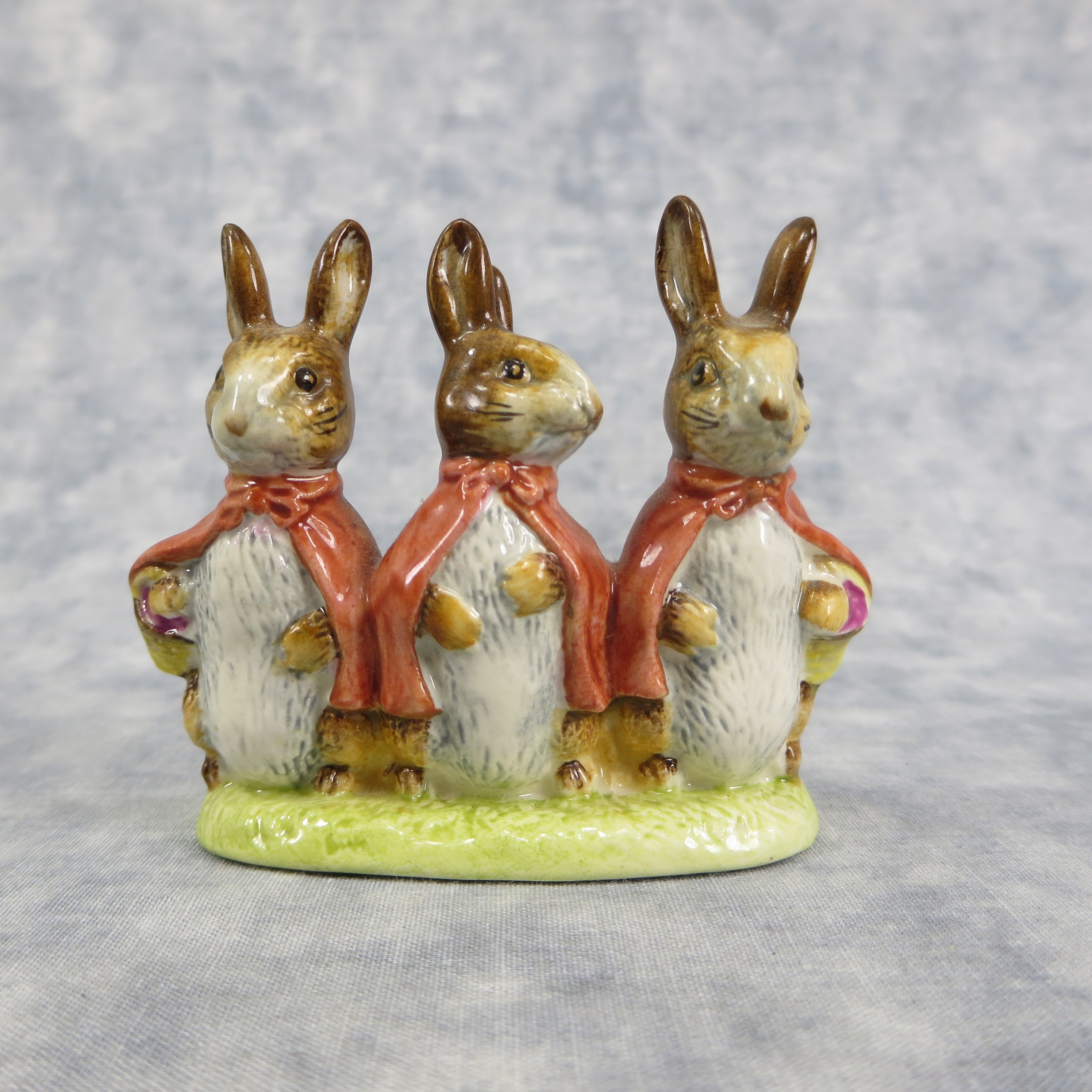 January 16, 2026 - 2-1/2 inches tall by 3-1/4 inches wide by 1-3/4 inches long. Shape Number: 74. Modelled by Arthur Gredington. 1st version with pink cloaks. Issued in 1953 and withdrawn in 1997. Manufactured by Frederick Warne & Co, Beswick, England with the BP-3b backstamp used from 1974-1985.