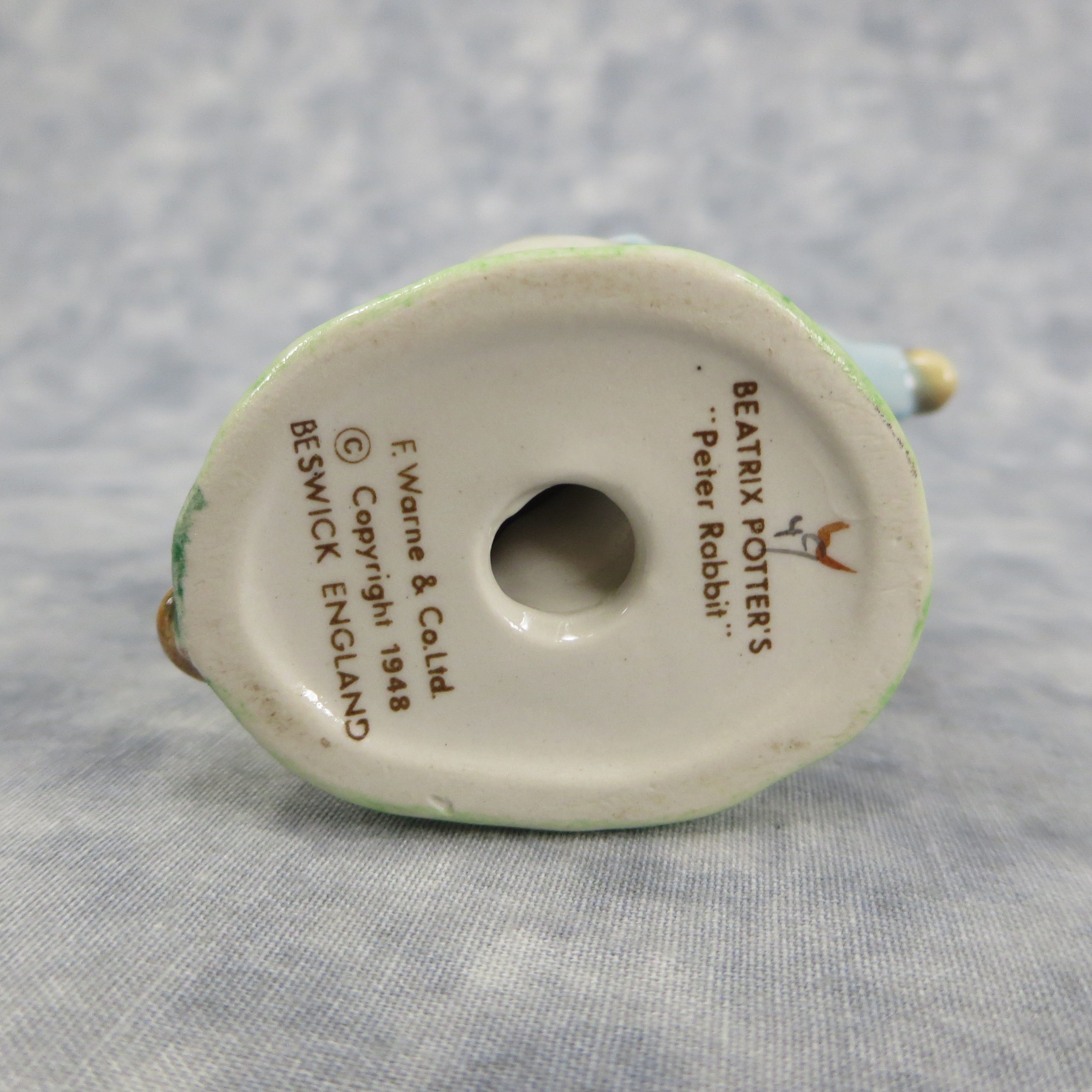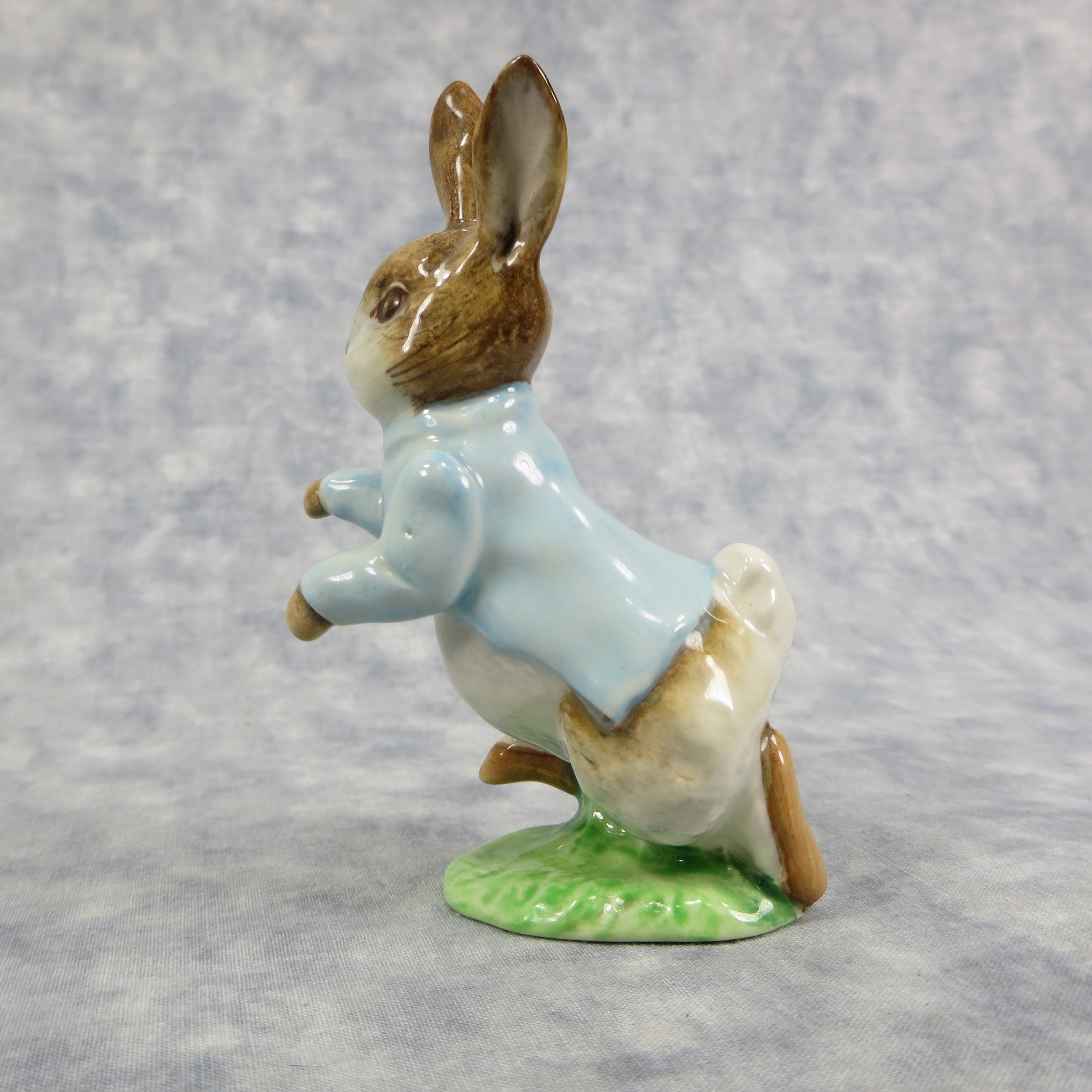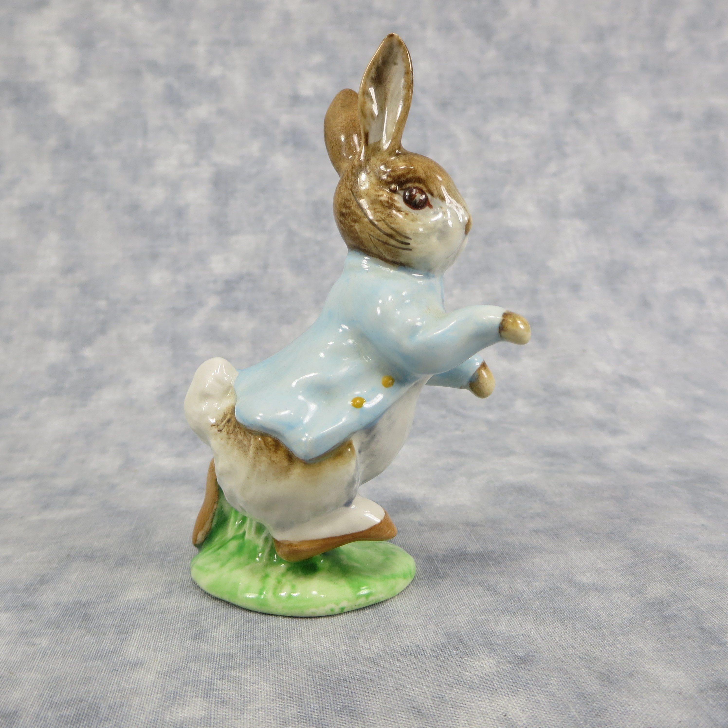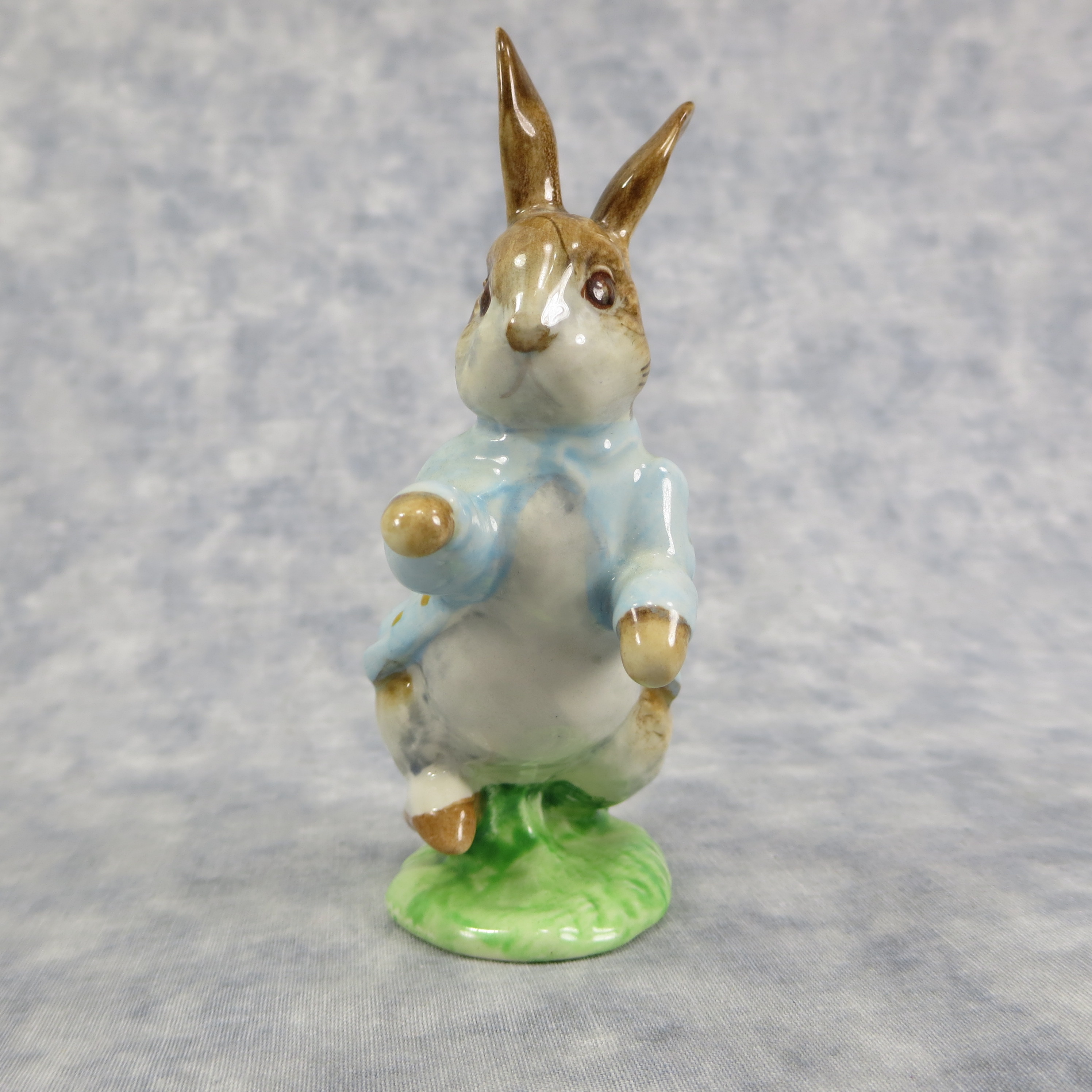 January 16, 2026 - 4-1/4 inches tall by 2 inches wide by 3 inches long. Shape Number: 1098. Modelled by Arthur Gredington. 2nd version with light blue coat. Issued in 1947 and never withdrawn from production. Manufactured by Frederick Warne & Co, Beswick, England with the BP-3b backstamp used from 1974-1985.