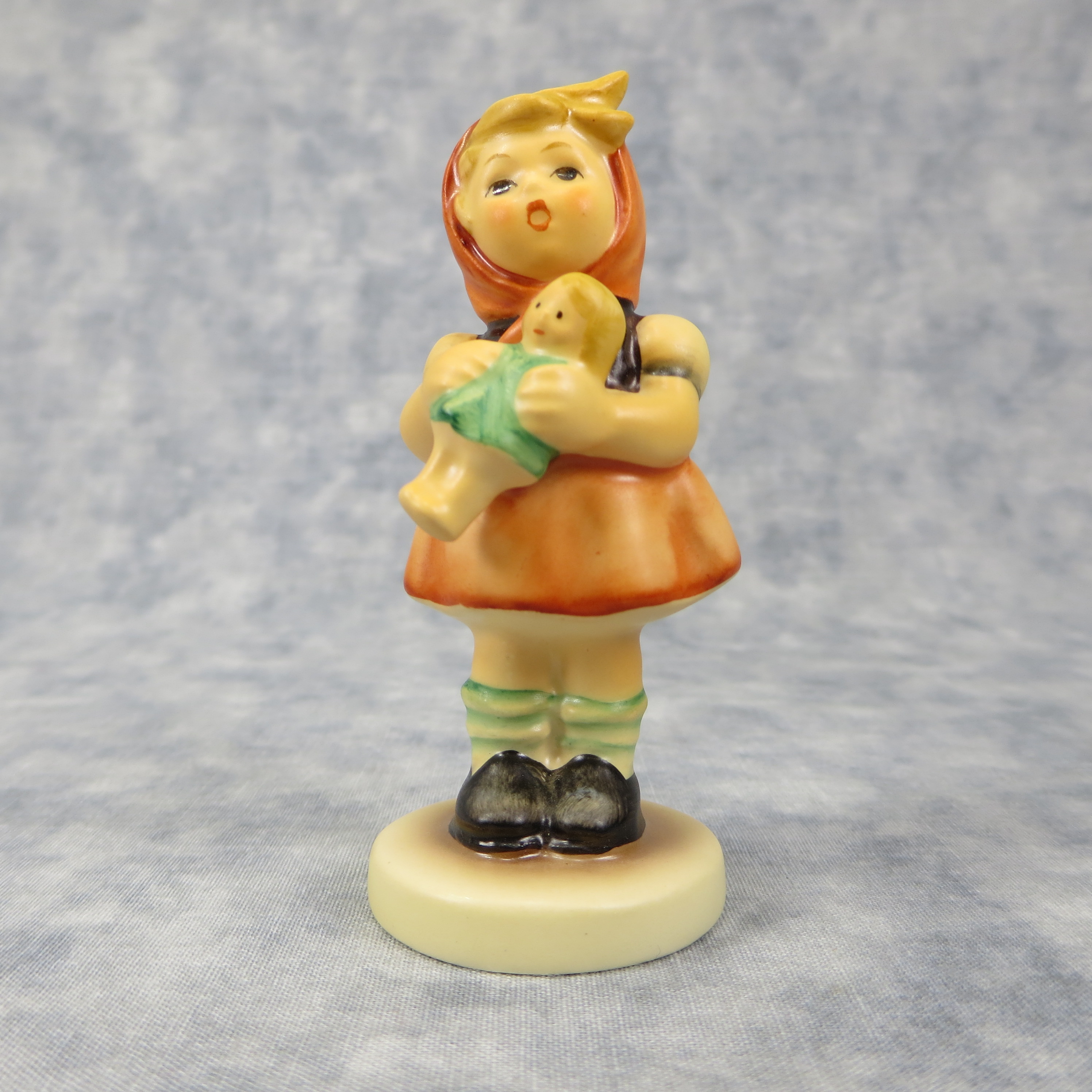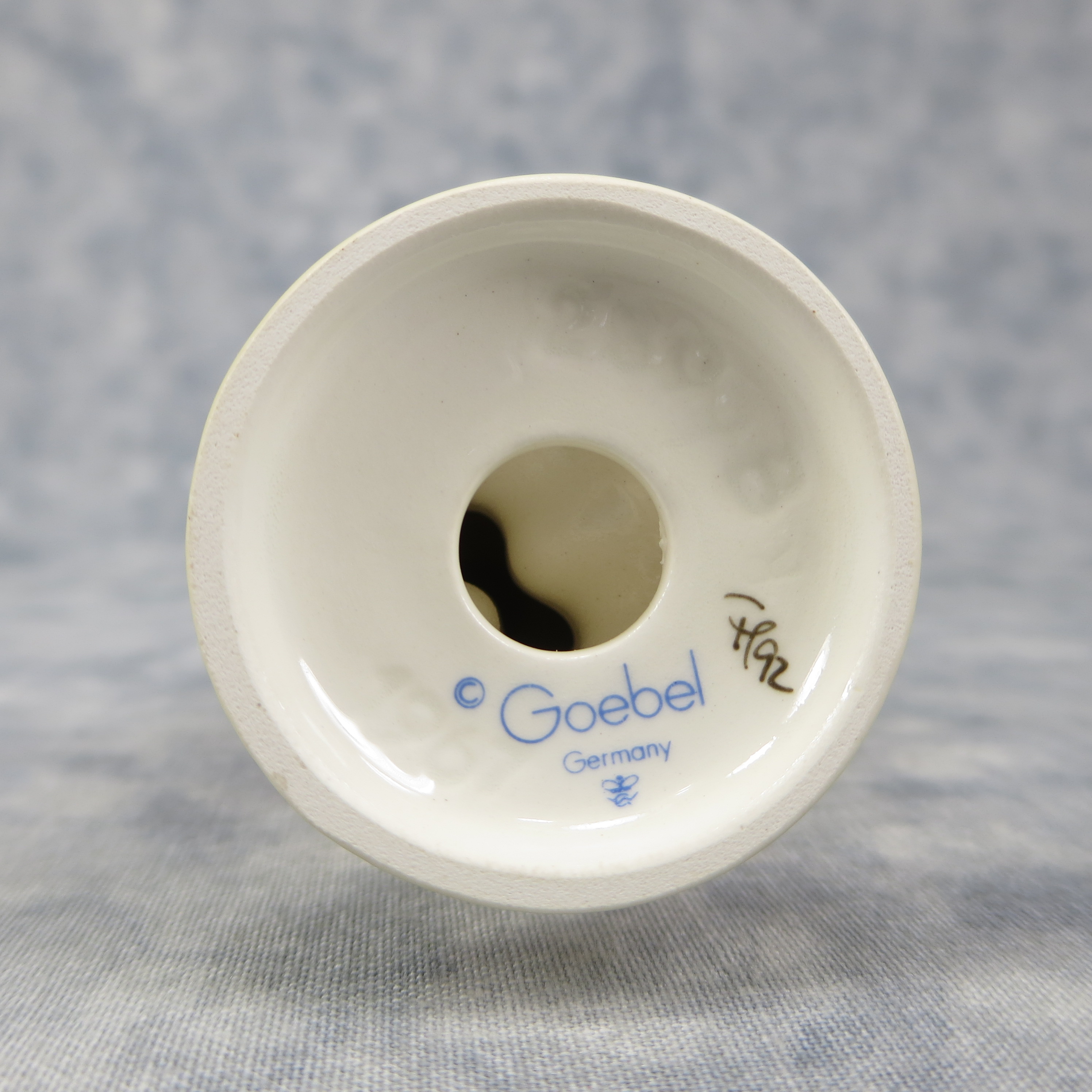 April 19, 2026 - 3-1/4 inches tall. Base is incised 239/B and 1967. Goebel TMK 7 trademark imprinted in blue on bottom of base. Painter hand-initialed in black ink on bottom of base.