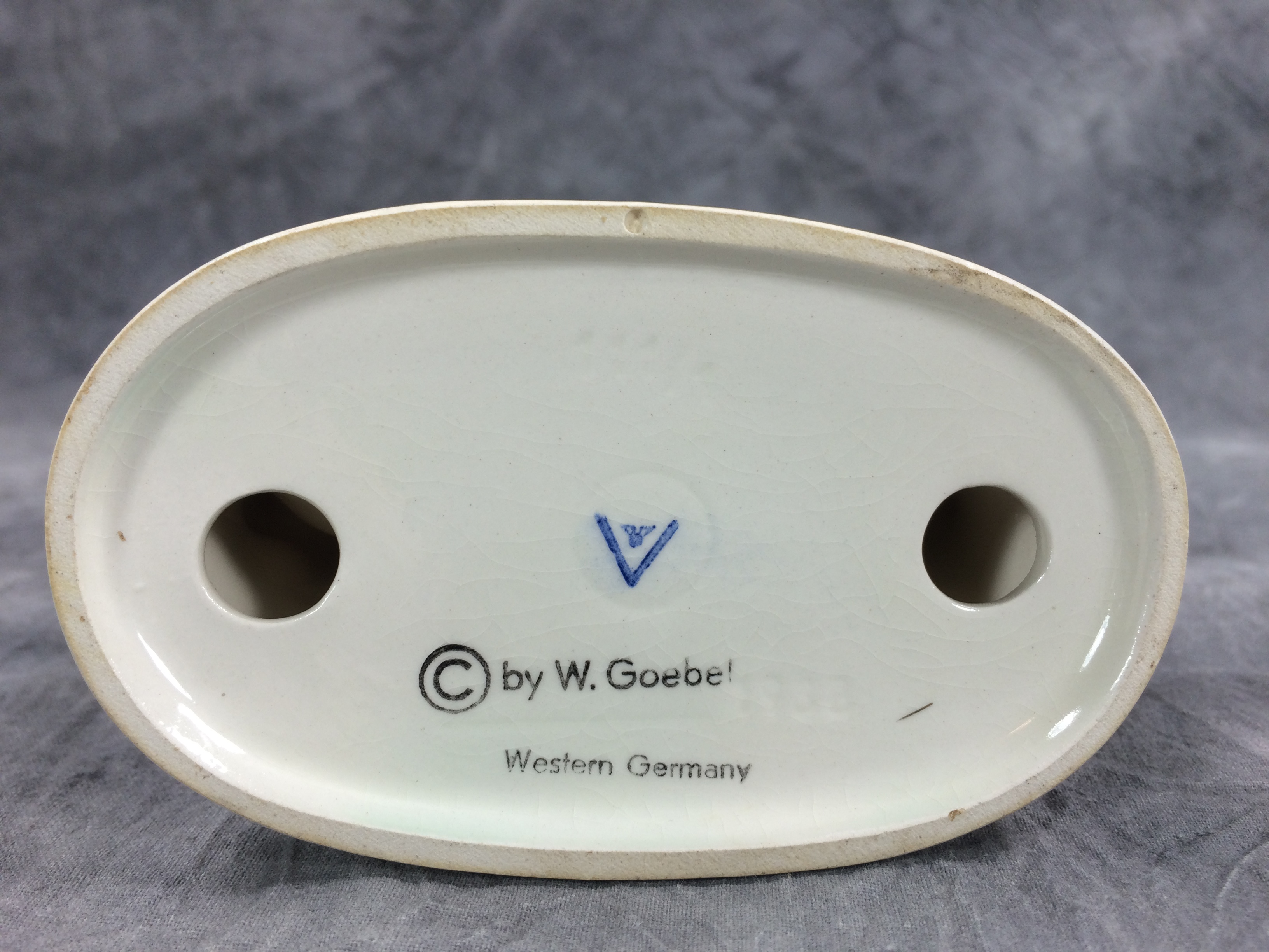 January 18, 2026 - 5 inches tall. Base is incised 111 /1 and 1938. Goebel TMK 3 trademark imprinted in blue on underside of base. "(C) by W. Goebel" and "Western Germany" stamped in black on underside of base.