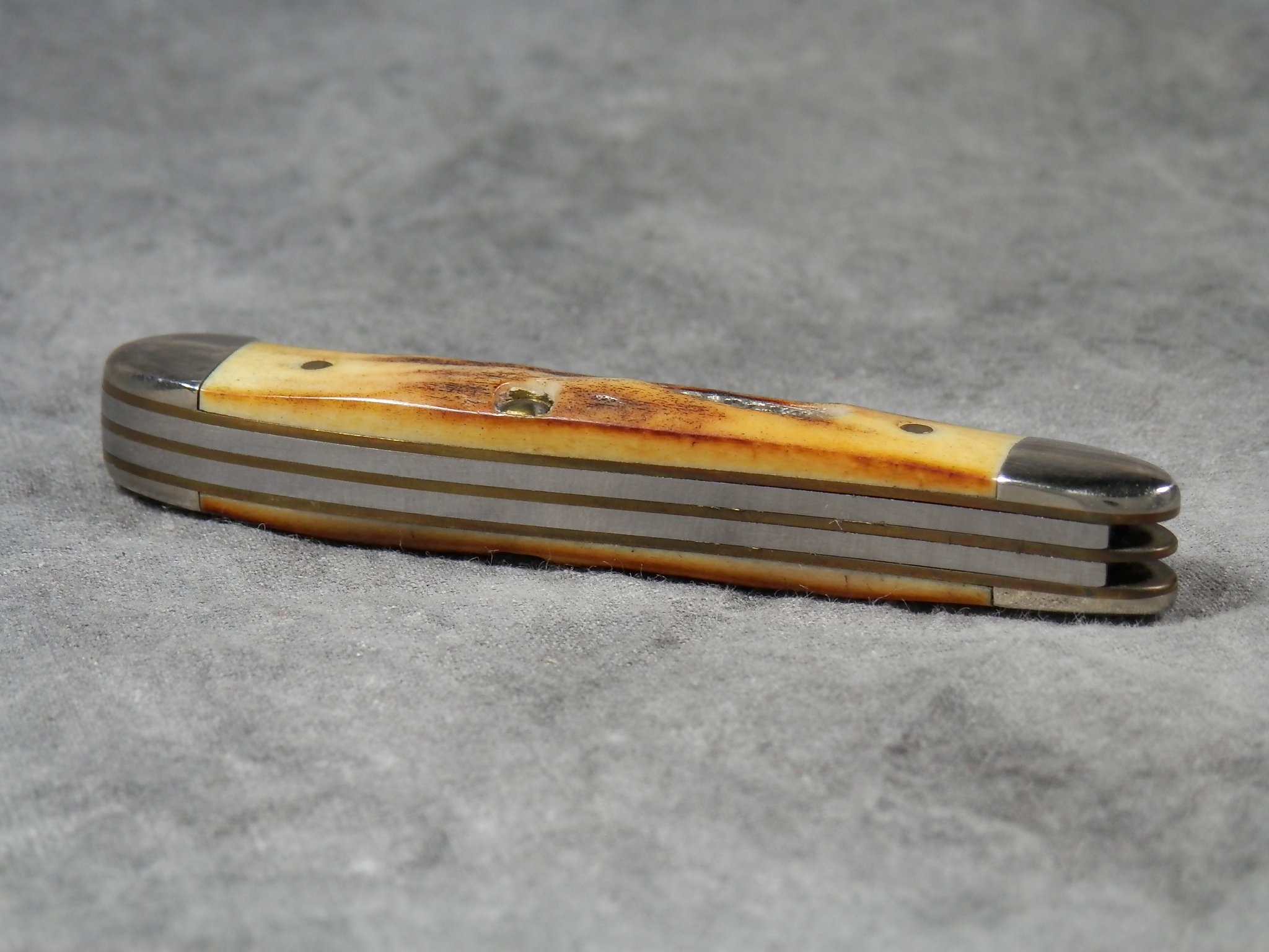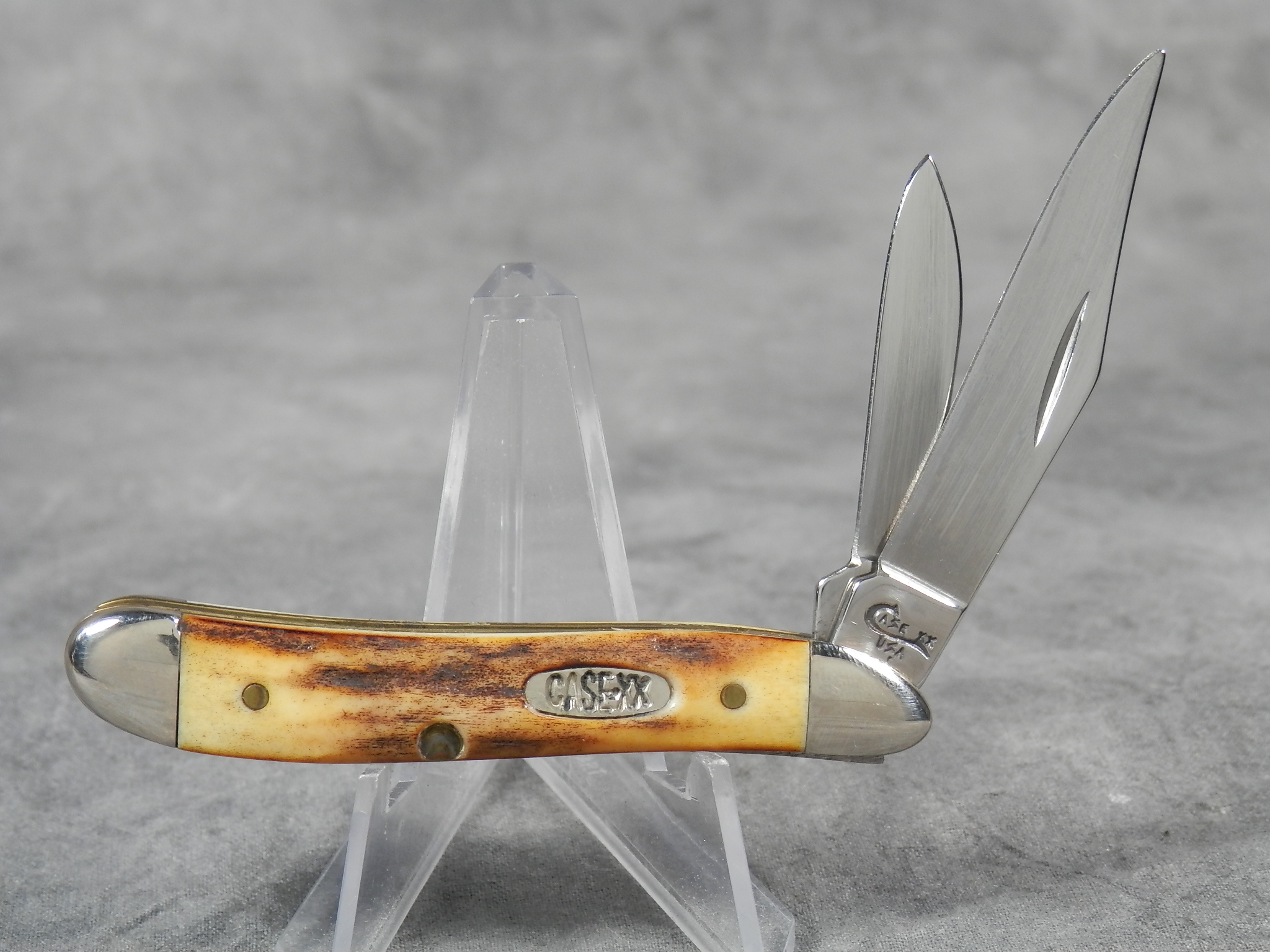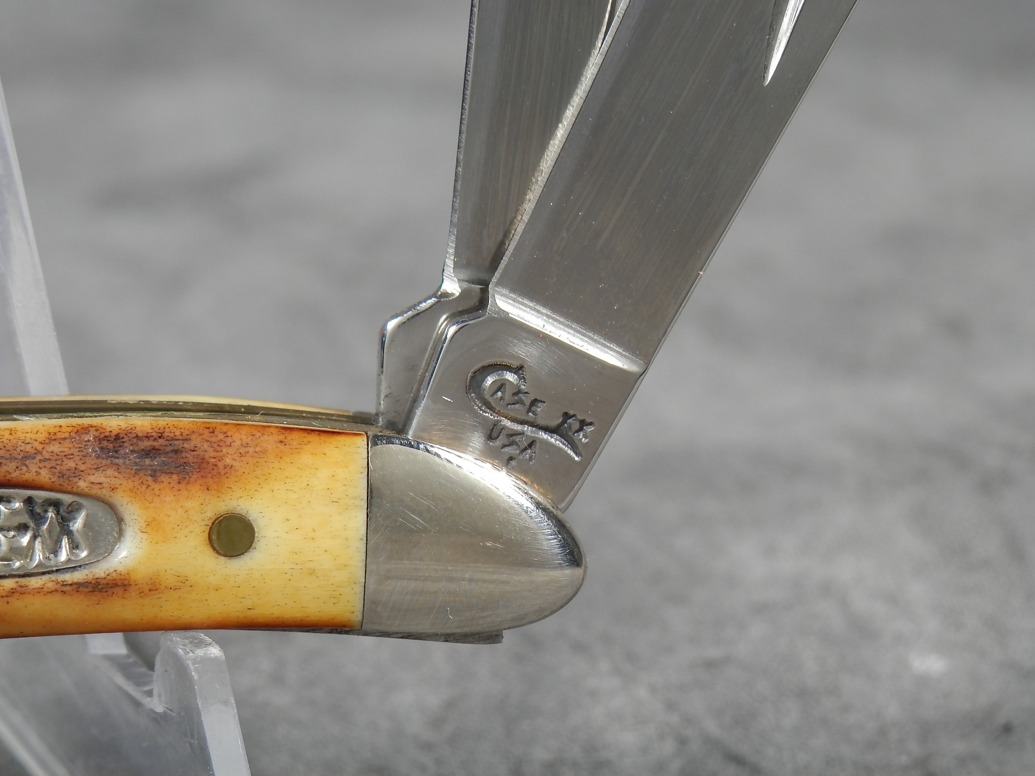 January 08, 2026 - 2-3/4 inches closed. 4-7/8 inches open. Made in USA. "Case XX USA * " (1 dot with lightning bolt S) and "5220 SS" tang stamps. Oval 'Closed C' CASE XX shield. Stainless Steel blades. Beautiful stag handle. Nickel Silver bolsters. Brass liner.