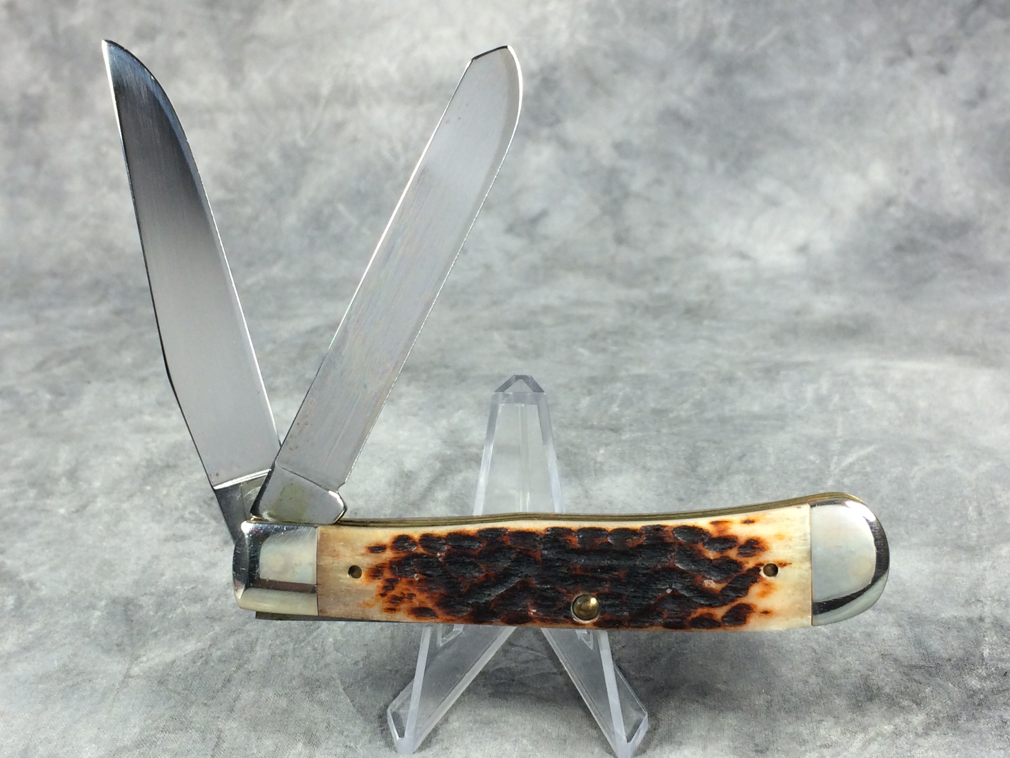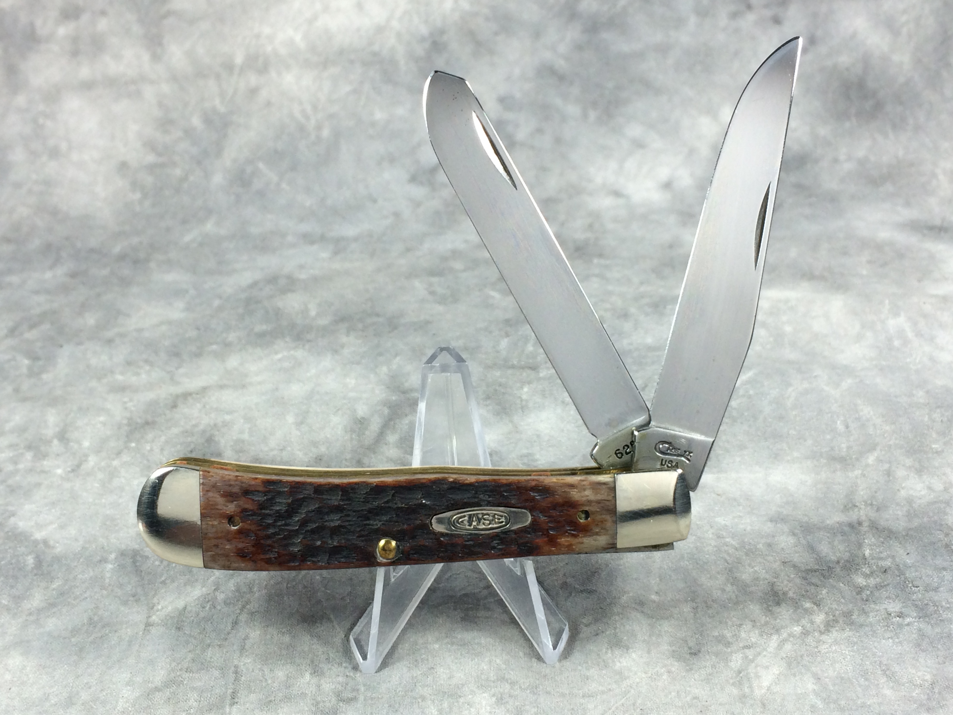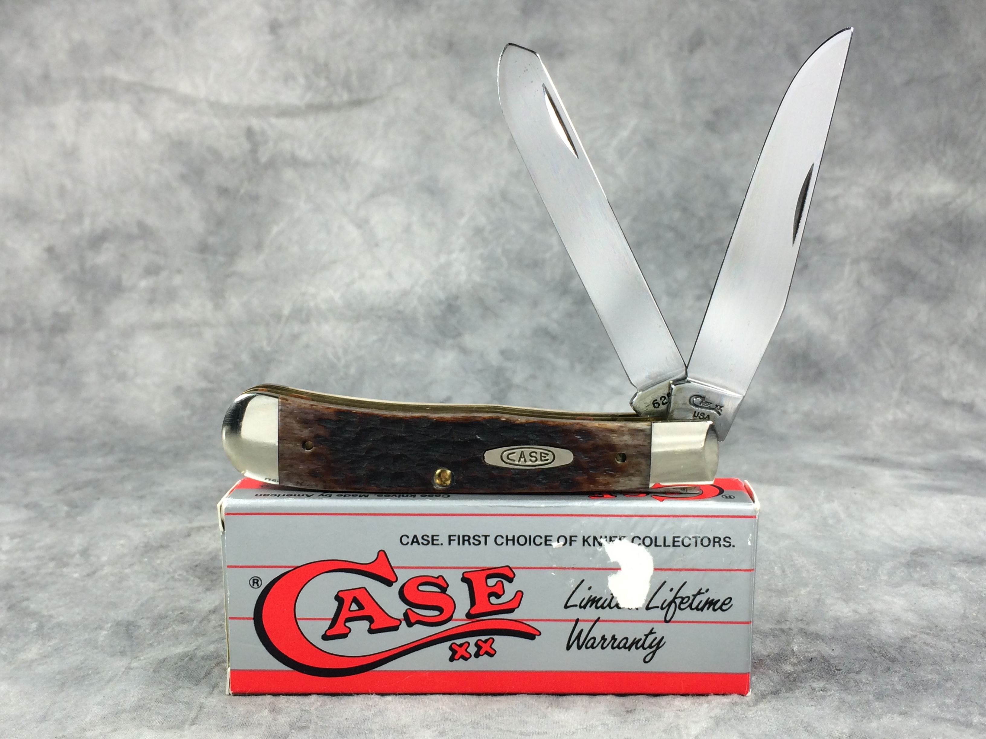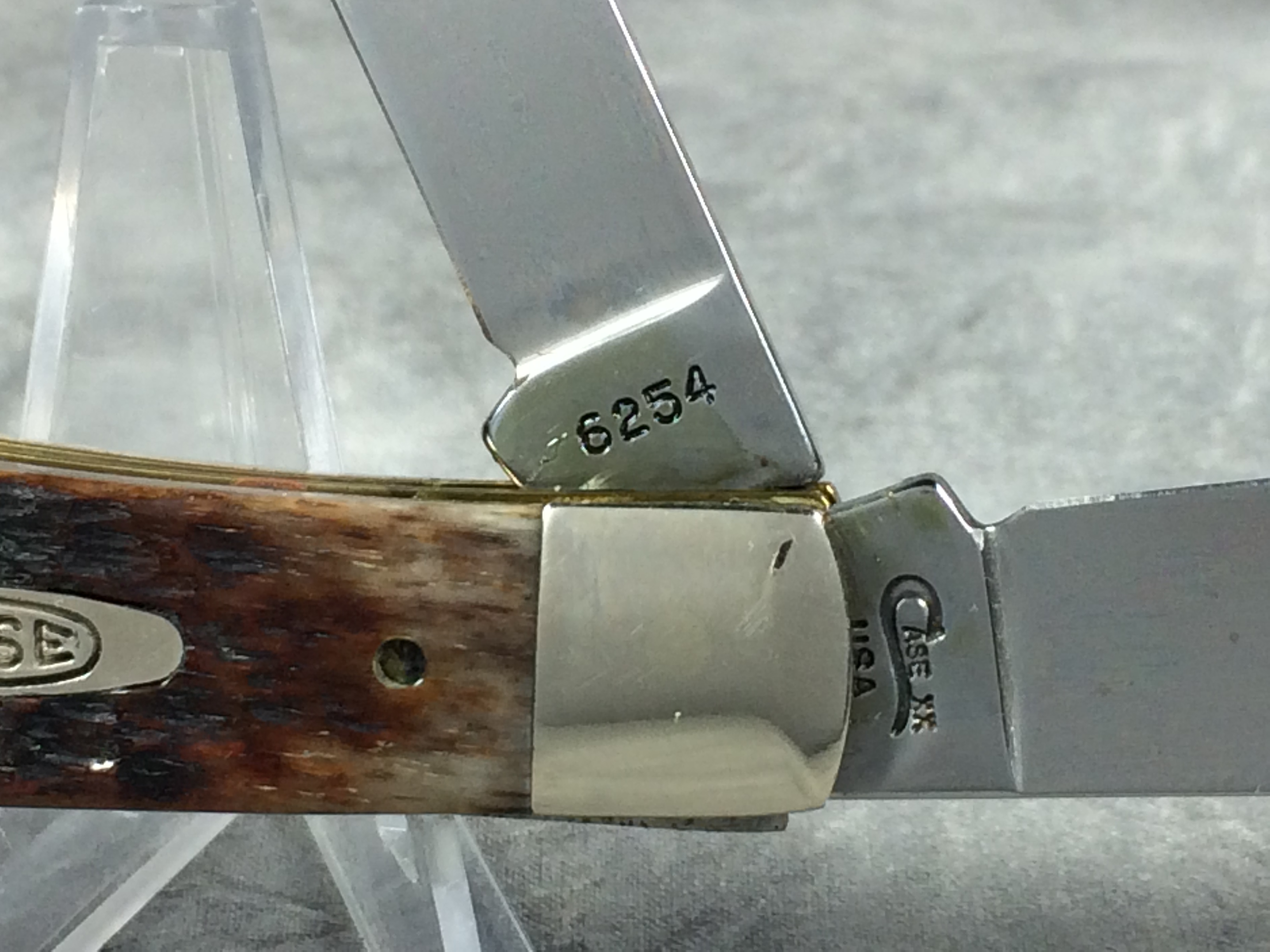 November 03, 2025 - 4-1/8 inches closed. 7-1/2 inches open. Made in USA. "Case XX USA ***** " (5 dot with lightning bolt S) and "6254" tang stamps. Double Oval 'Open C' CASE shield. Chrome Vanadium blades. Jigged Bone handle. Nickel Silver bolsters. Brass liner.