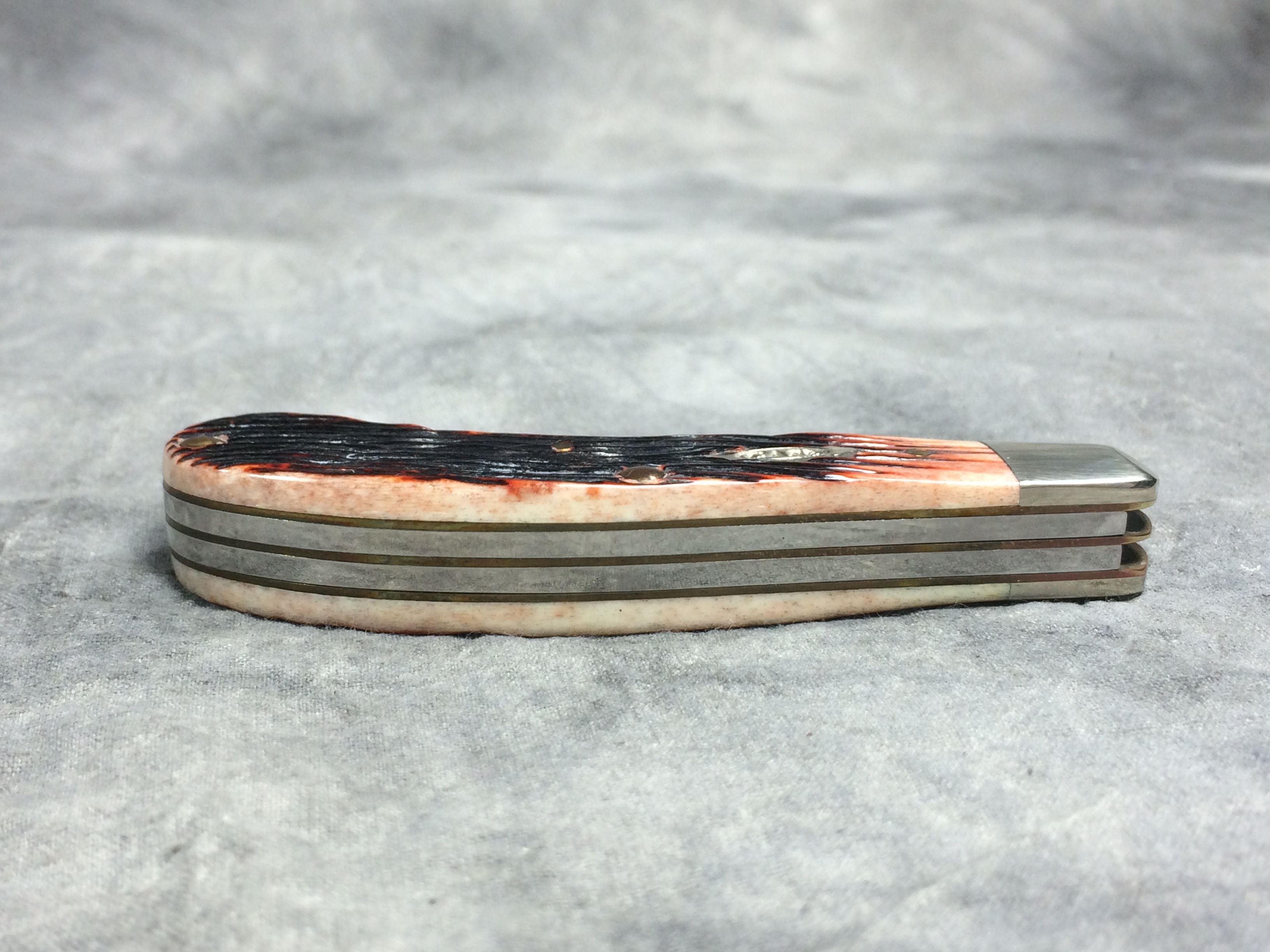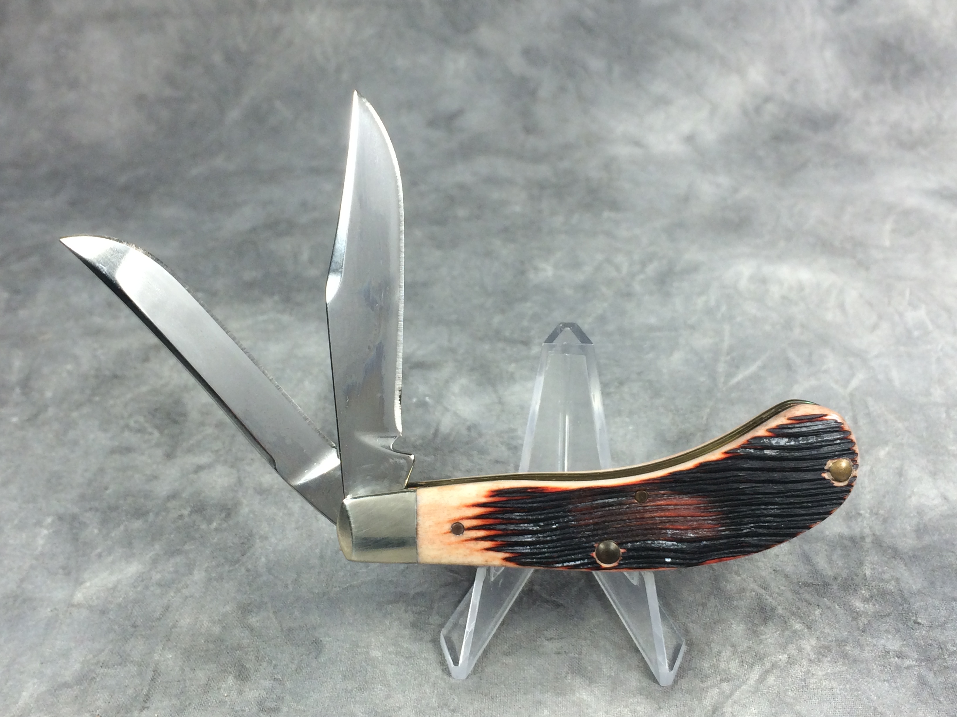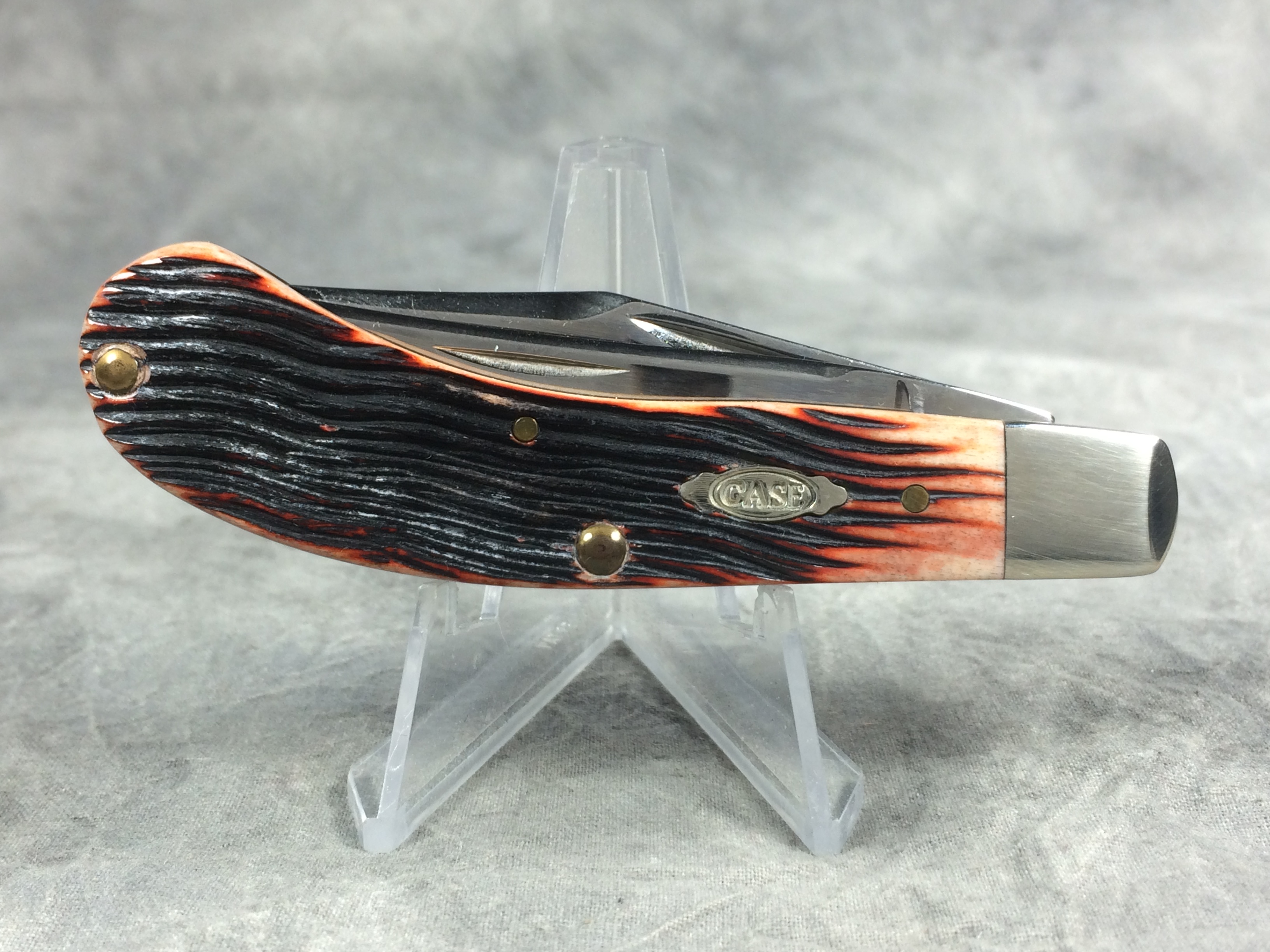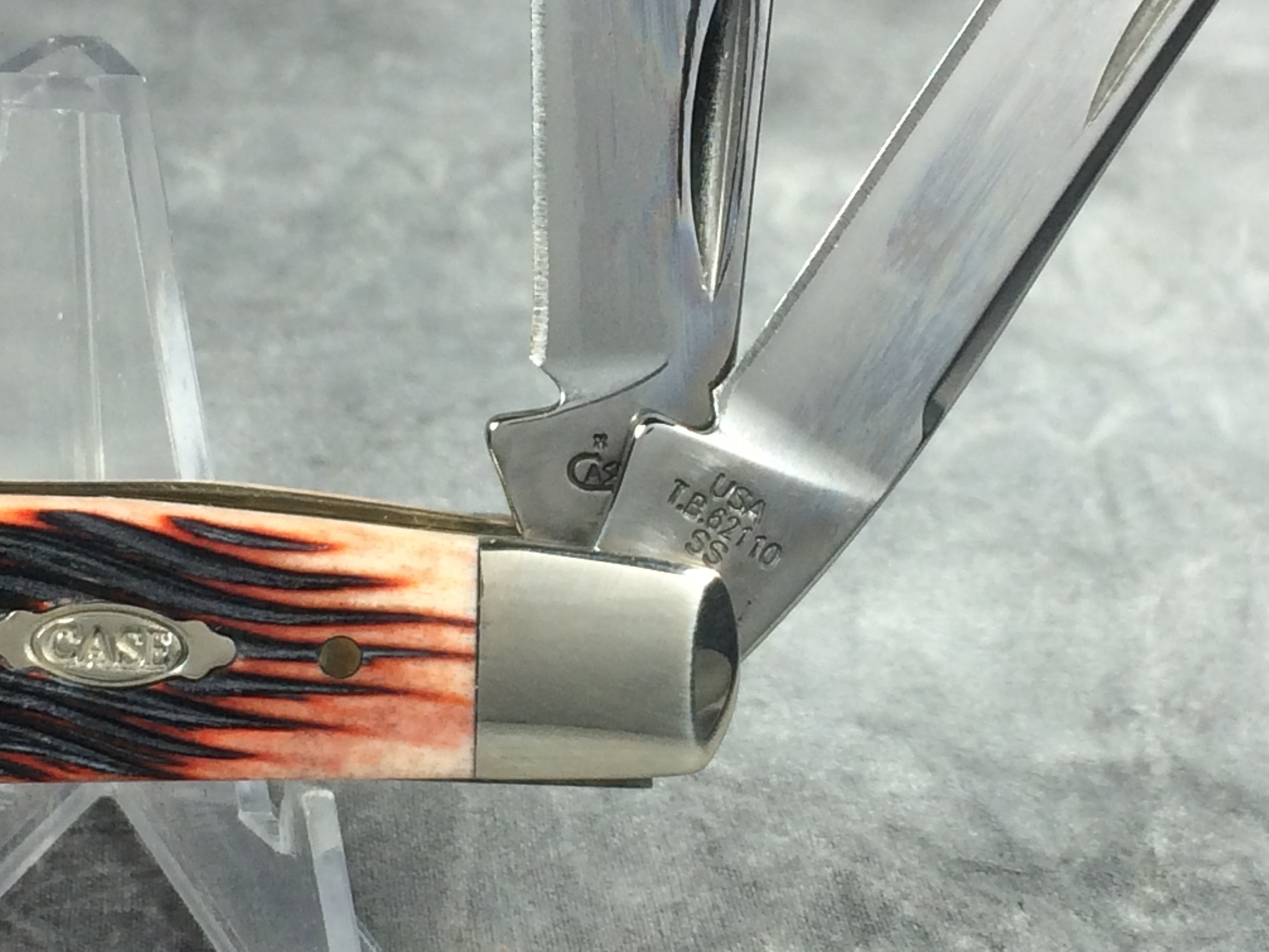 December 22, 2025 - Tony Bose design. 3-1/2 inches closed. 6-1/8 inches open. Made in USA. "  x x  Case XX    x x  " (with lightning bolt S) and "USA T.B.62110 SS" tang stamps. Bowtie shaped "CASE" recessed block letter shield. Stainless Steel blades. Caramel barnboard jigged bone handle. Nickel Silver bolsters. Brass liner.
