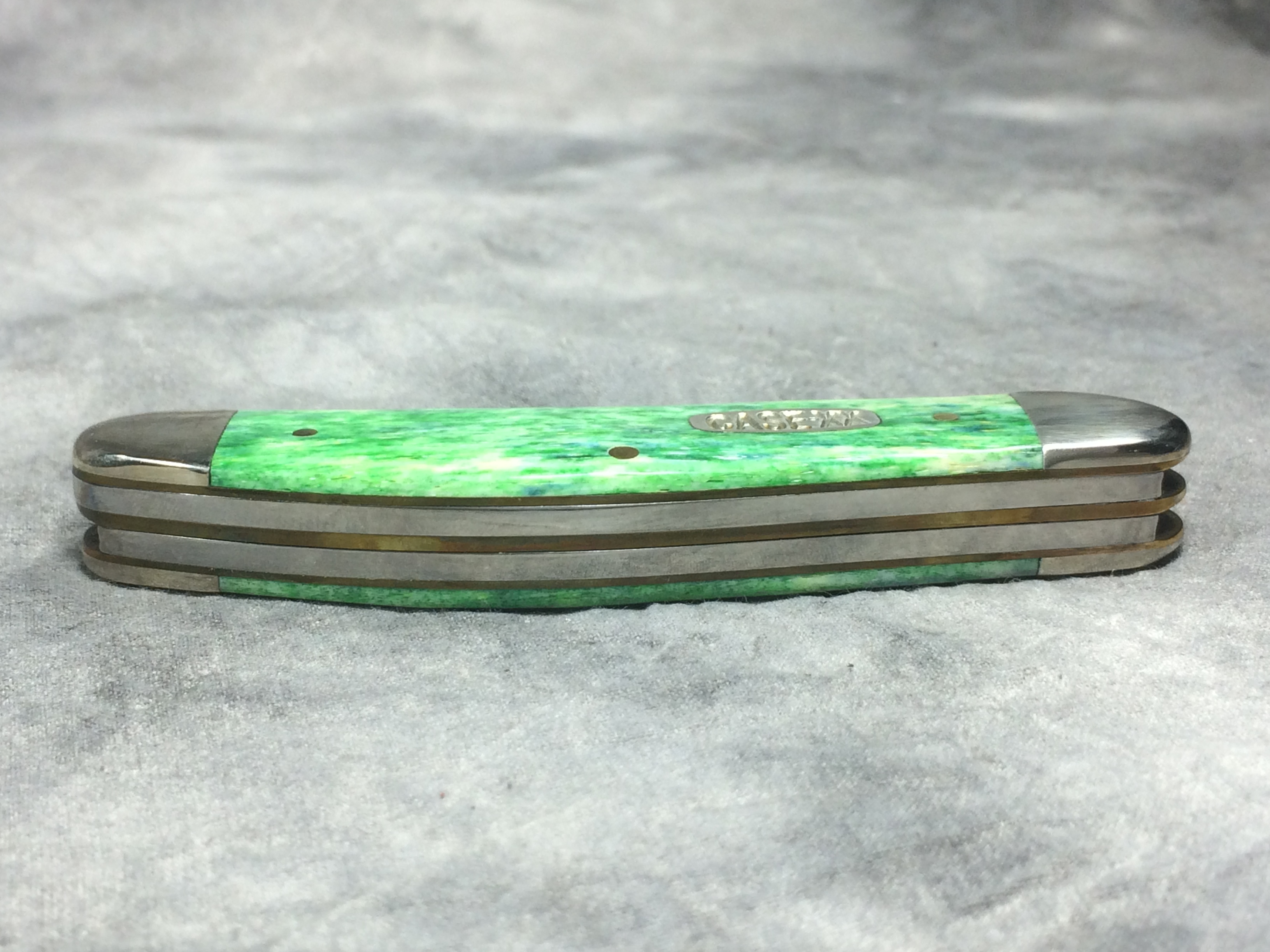 November 06, 2025 - Tony Bose design. 3-7/8 inches closed. 6-1/2 inches open. Made in USA. "  x x  Case XX   x x " (with lightning bolt S) and "USA T.B.6339 SS"" tang stamps. Oval 'Closed C' CASE XX shield. Stainless Steel blades. Smooth peacock appaloosa bone handle. Nickel Silver bolsters. Brass liner.