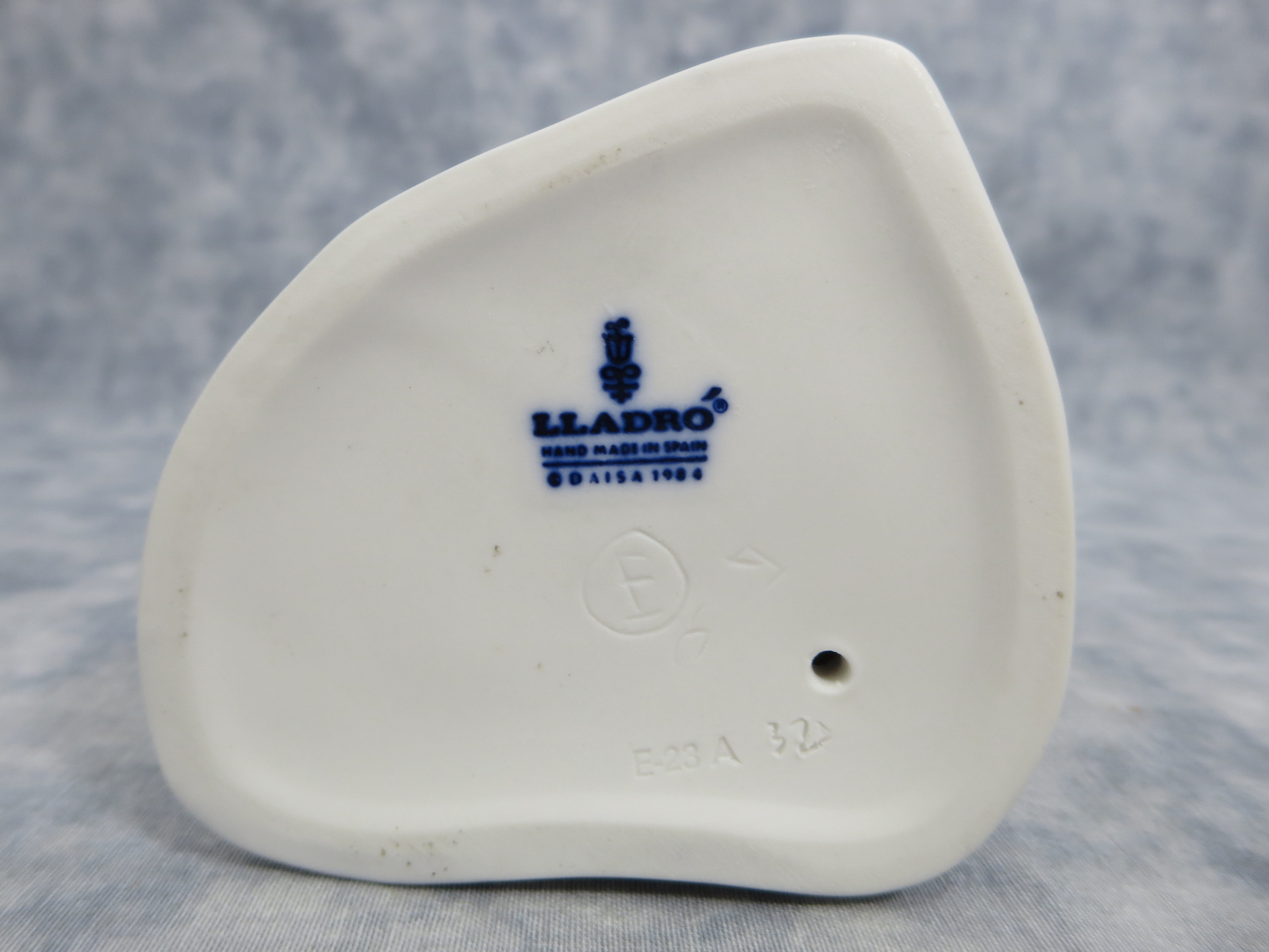 January 16, 2026 - Hand made in Spain. 6-3/4 inches tall. 3-1/2 inches wide. 3 inches deep. Base is fully marked with both the Lladro chemical symbol logo in blue on bottom of base. Designed by Fulgencio García. Issued: 1984. Retired: 1987.