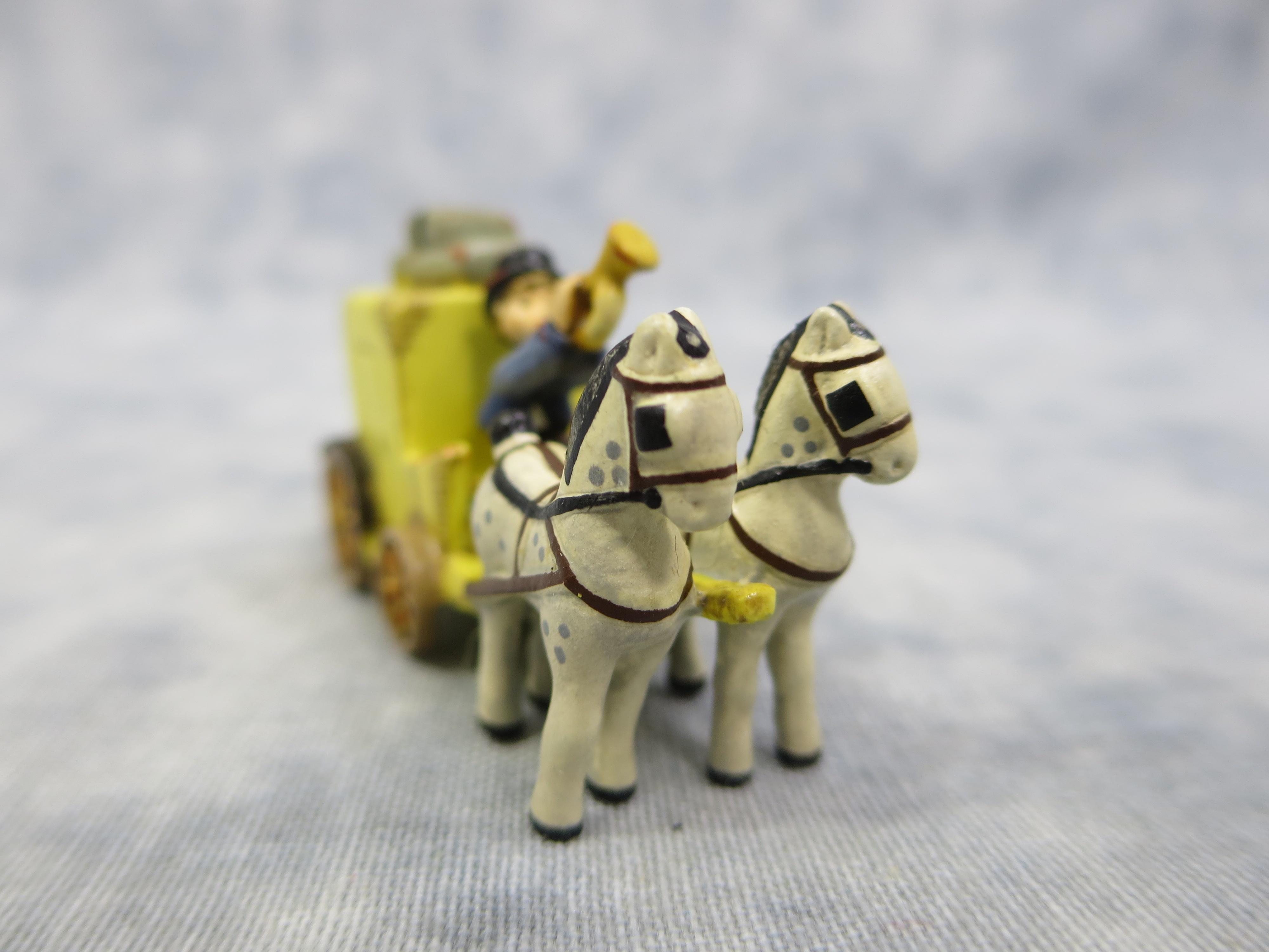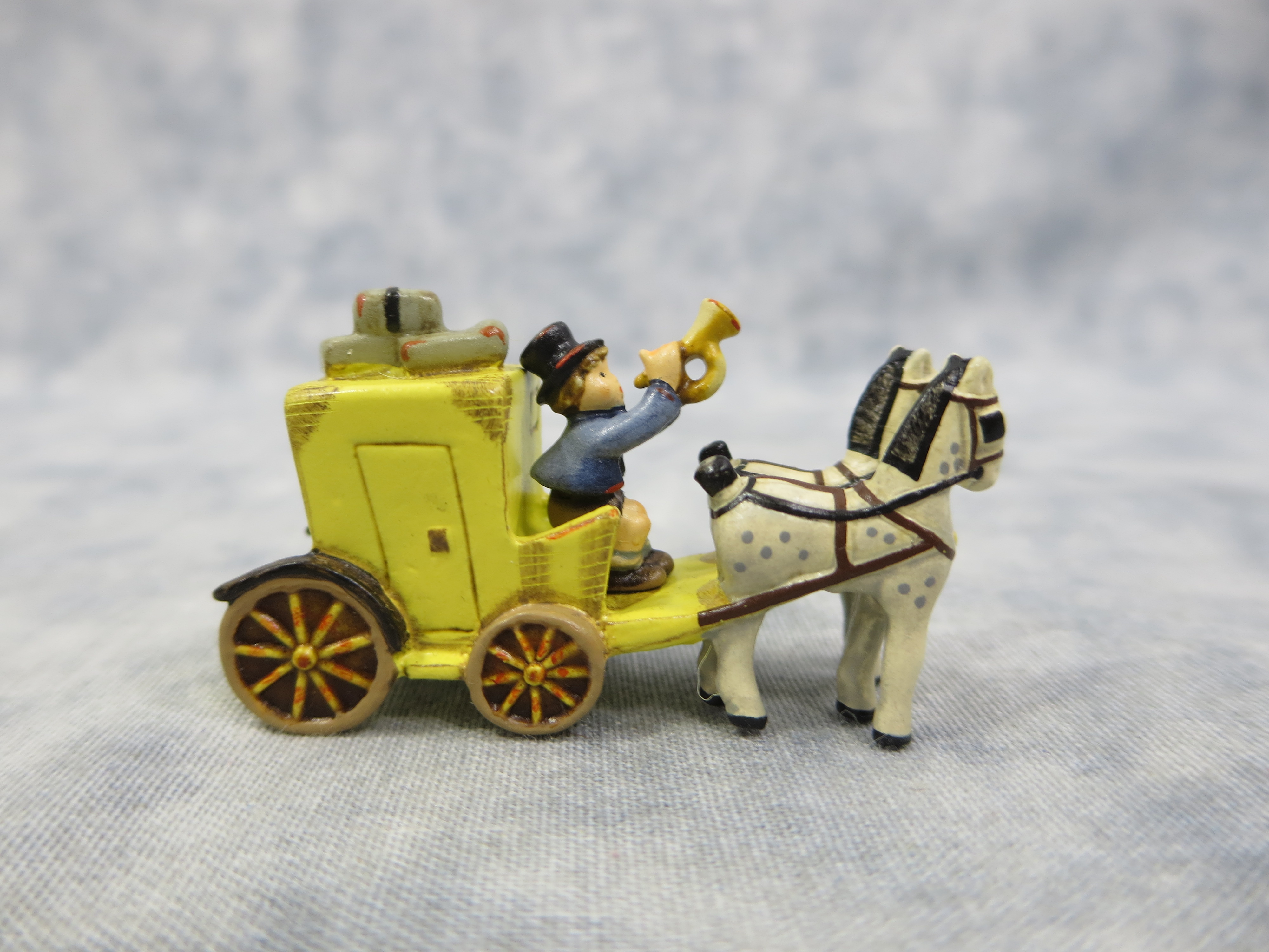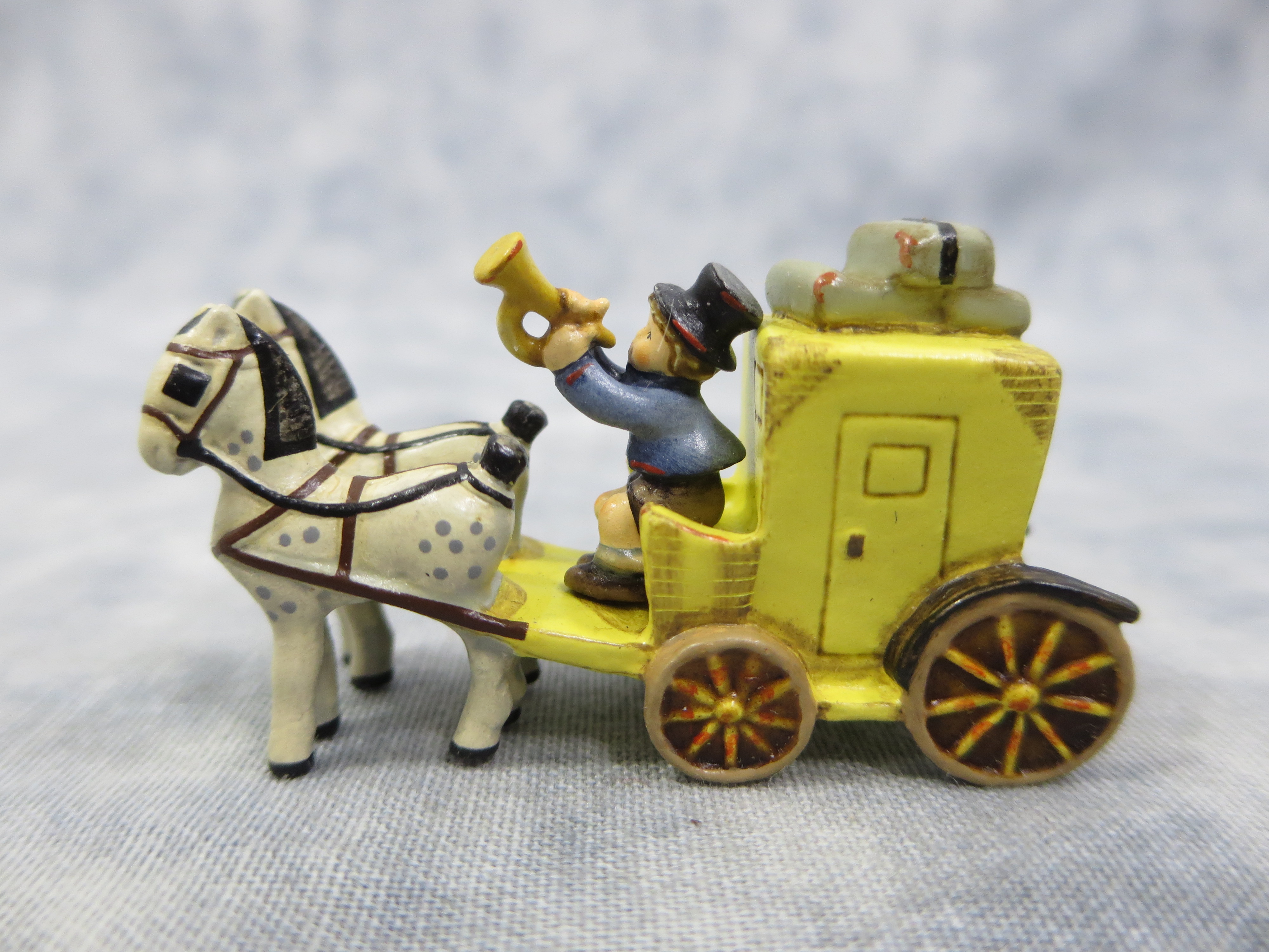 January 18, 2026 - THE MAIL IS HERE miniature figurine is 1 inch tall, 1-3/4 inches wide. Goebel TMK 7, 1993 trademark and 'Goebel Miniatures 1193 / 285-P / 1st Year of Issue' imprinted in black on bottom of base.