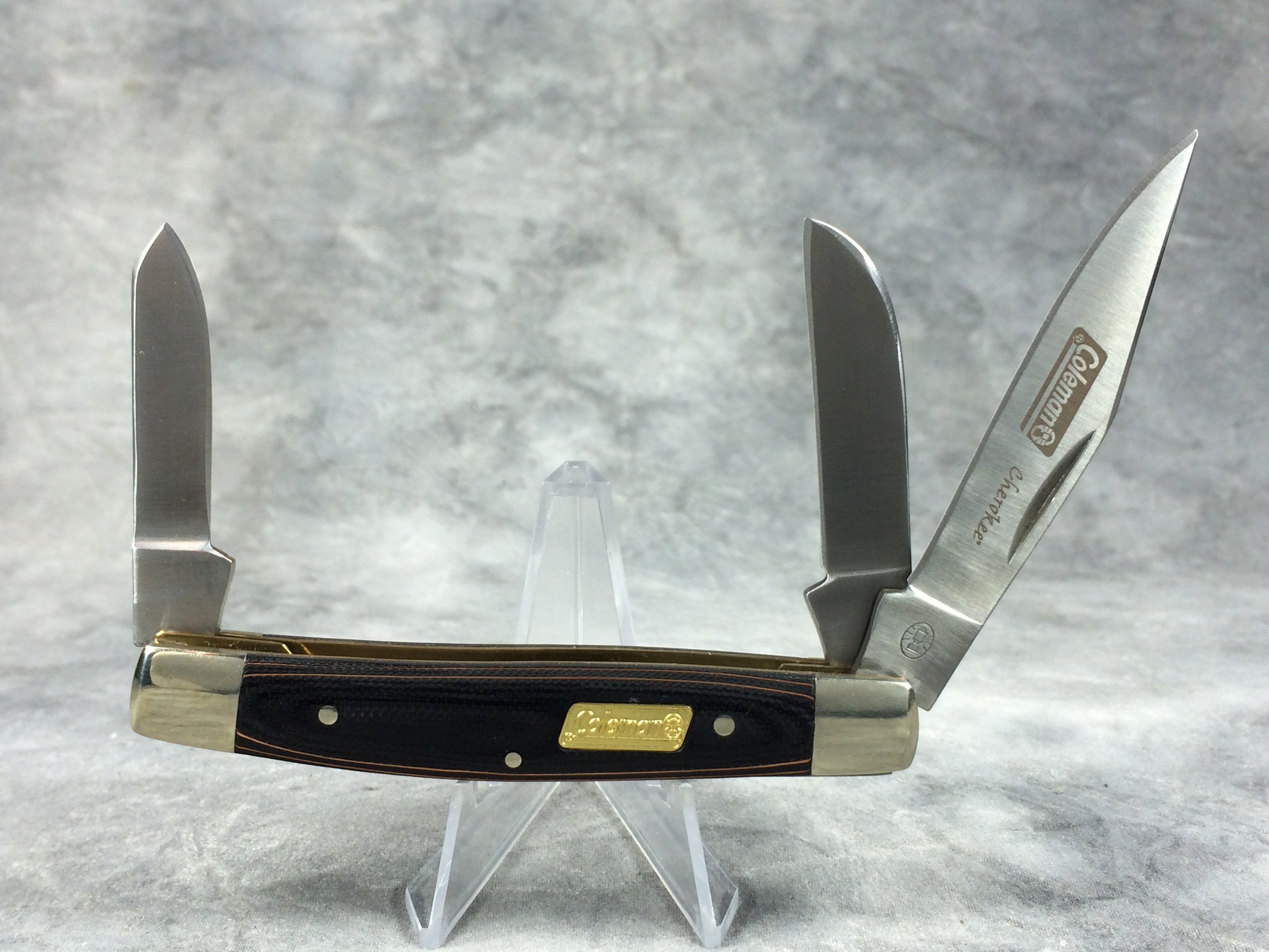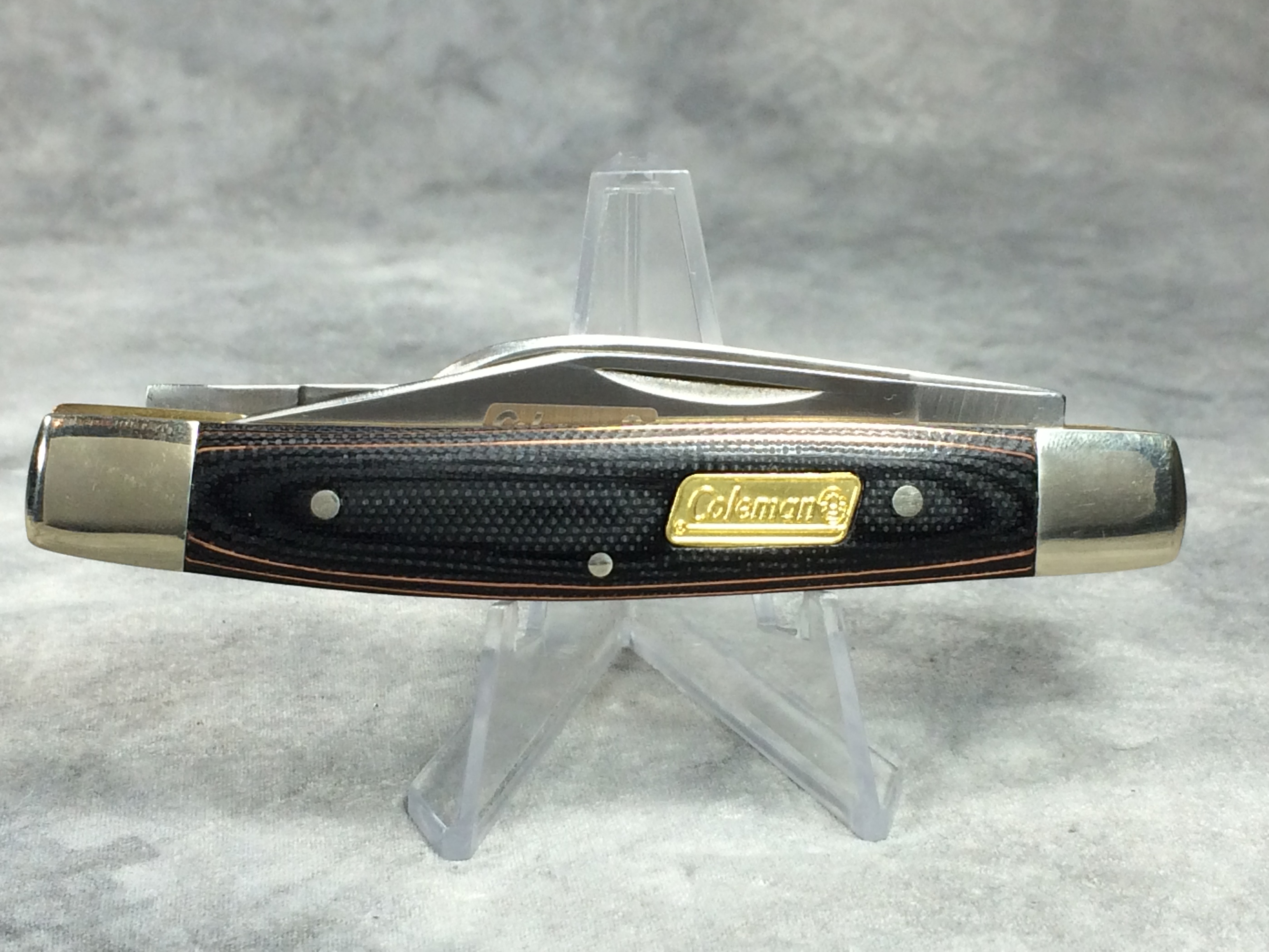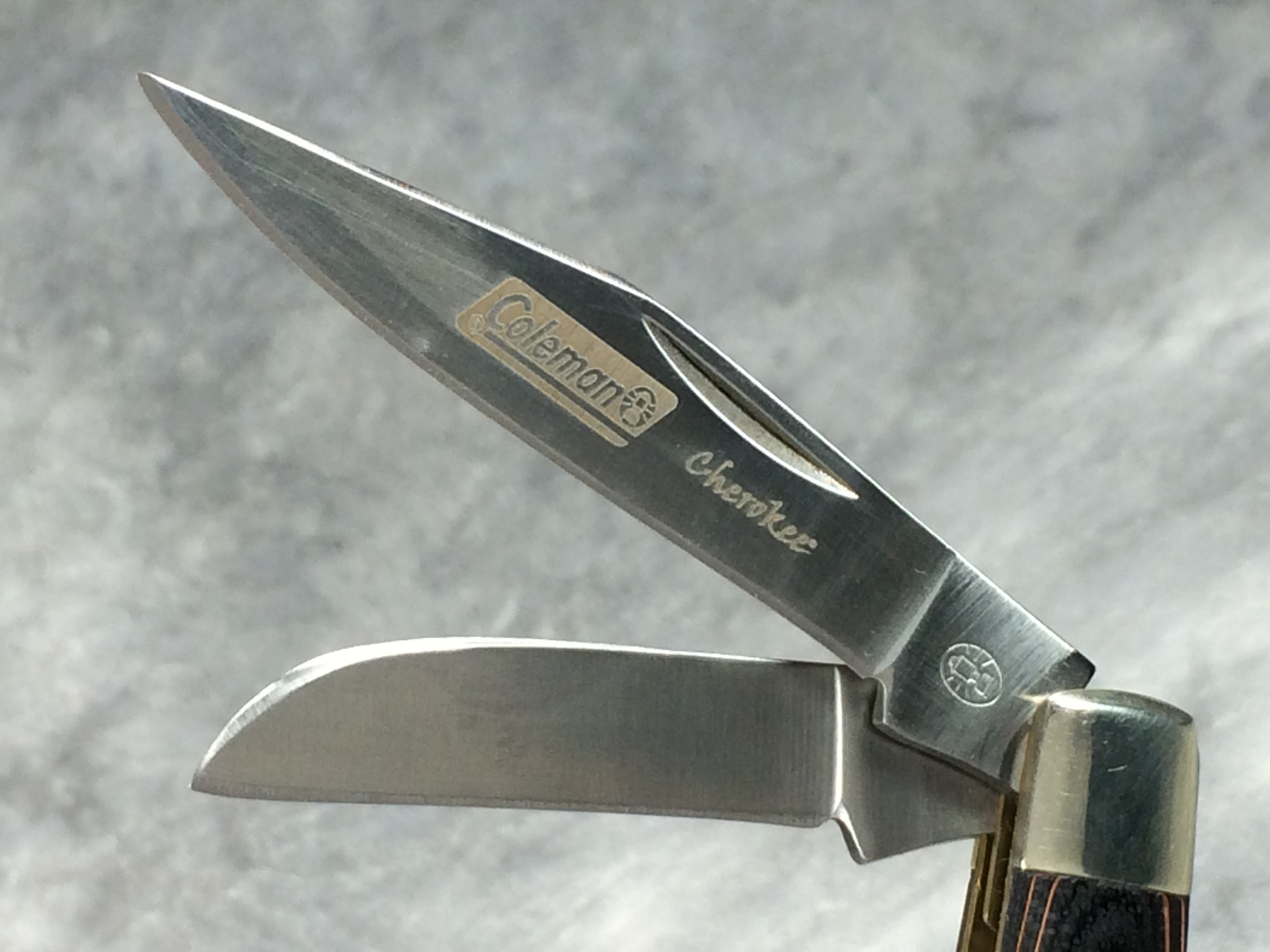 November 06, 2025 - 3-7/8 inches closed. 6-7/8 inches open. Tang stamped with Coleman logo. "Coleman" shield. Stainless steel blades. Main blade etched "Coleman" and "Cherokee". Micarta handle. Nickel Silver bolsters and brass liner.