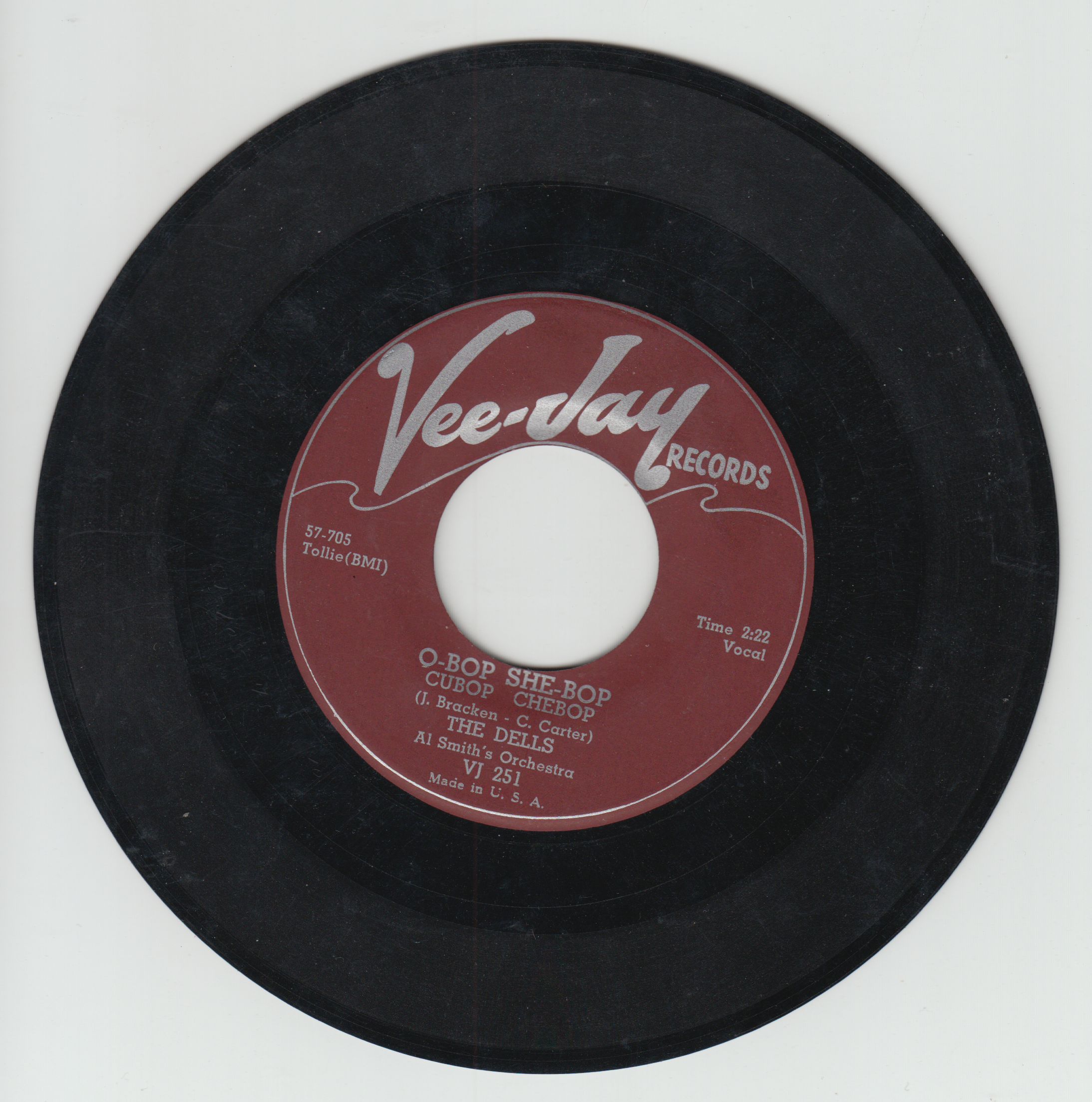 November 24, 2025 - The Dells. Vee-Jay VJ-251. Doo-Wop. Original 7 inch 45 RPM vinyl record circa 1957. A Distant Love coupled with O-Bop She-Bop.
