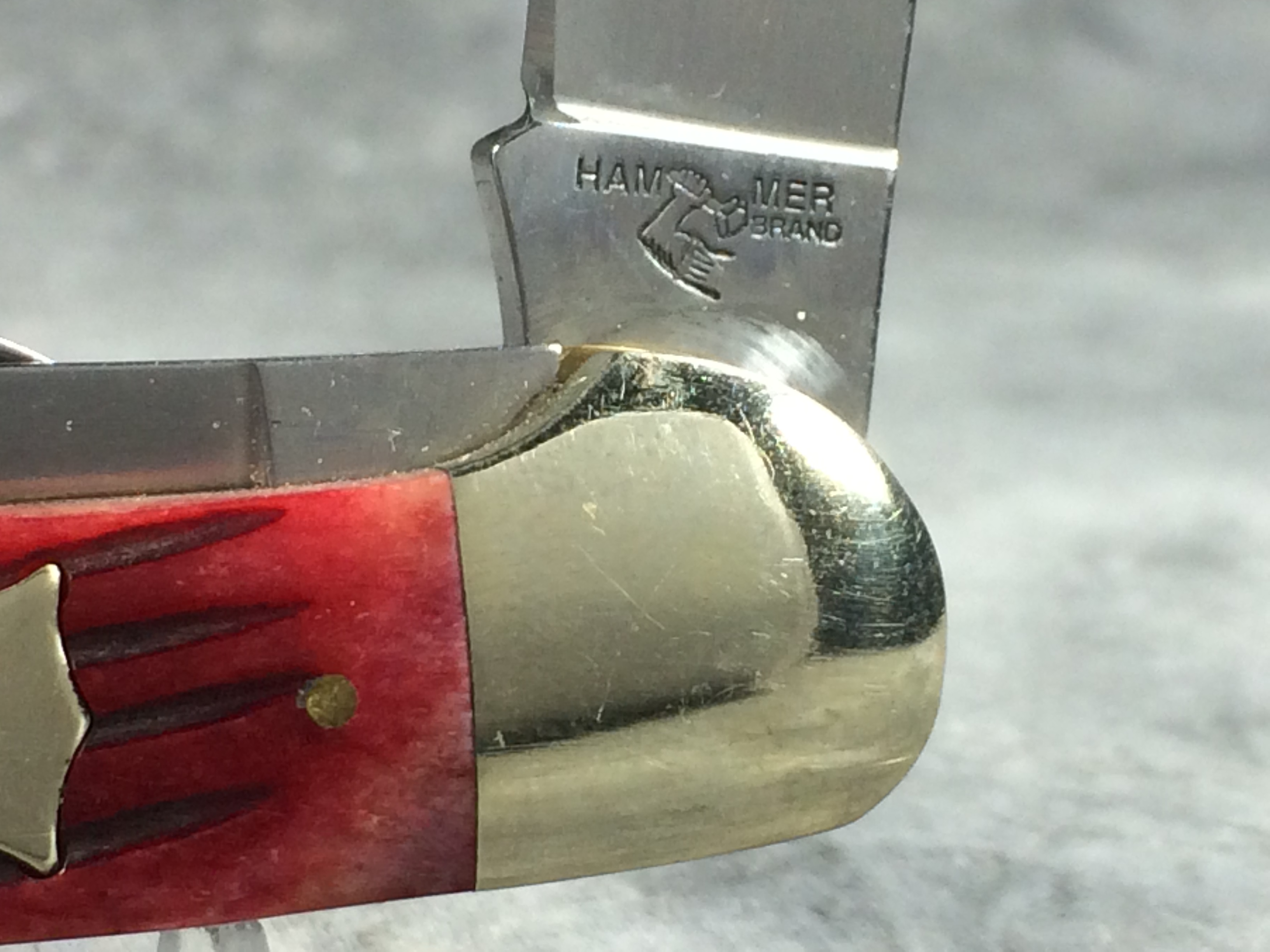 December 22, 2025 - 3-5/8 inches closed. 6-1/4 inches open. "HAMMER BRAND" with logo and "HB4RPB" tang stamp. Plain badge shield. Jigged red bone handle. Nickel Silver bolsters. Brass liner.