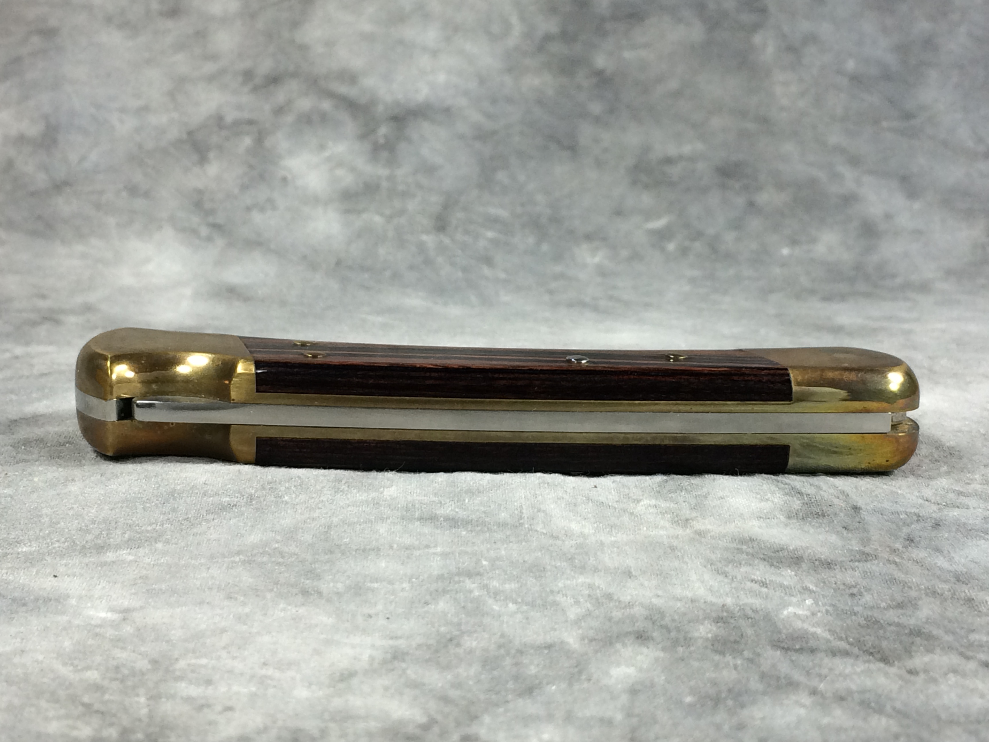 November 03, 2025 - 4-7/8 inches closed. 8-5/8 inches open. Made in USA. "BUCK 110 (upside down T) U.S.A." tang stamps. Stainless Steel blade. Wood handle. Brass bolsters and liner.