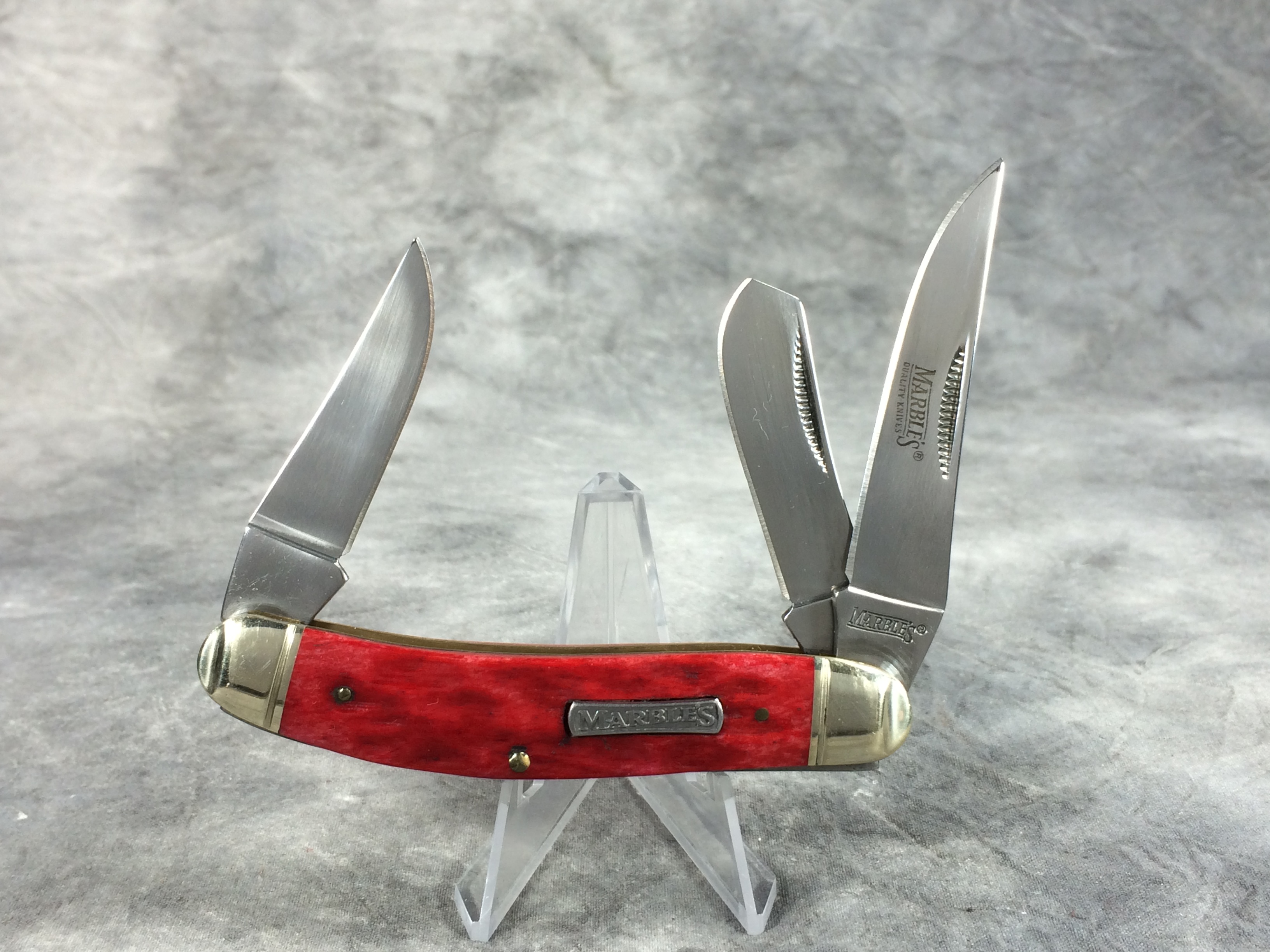 You have: MARBLE'S QUALITY KNIVES Red Jigged Stockman
